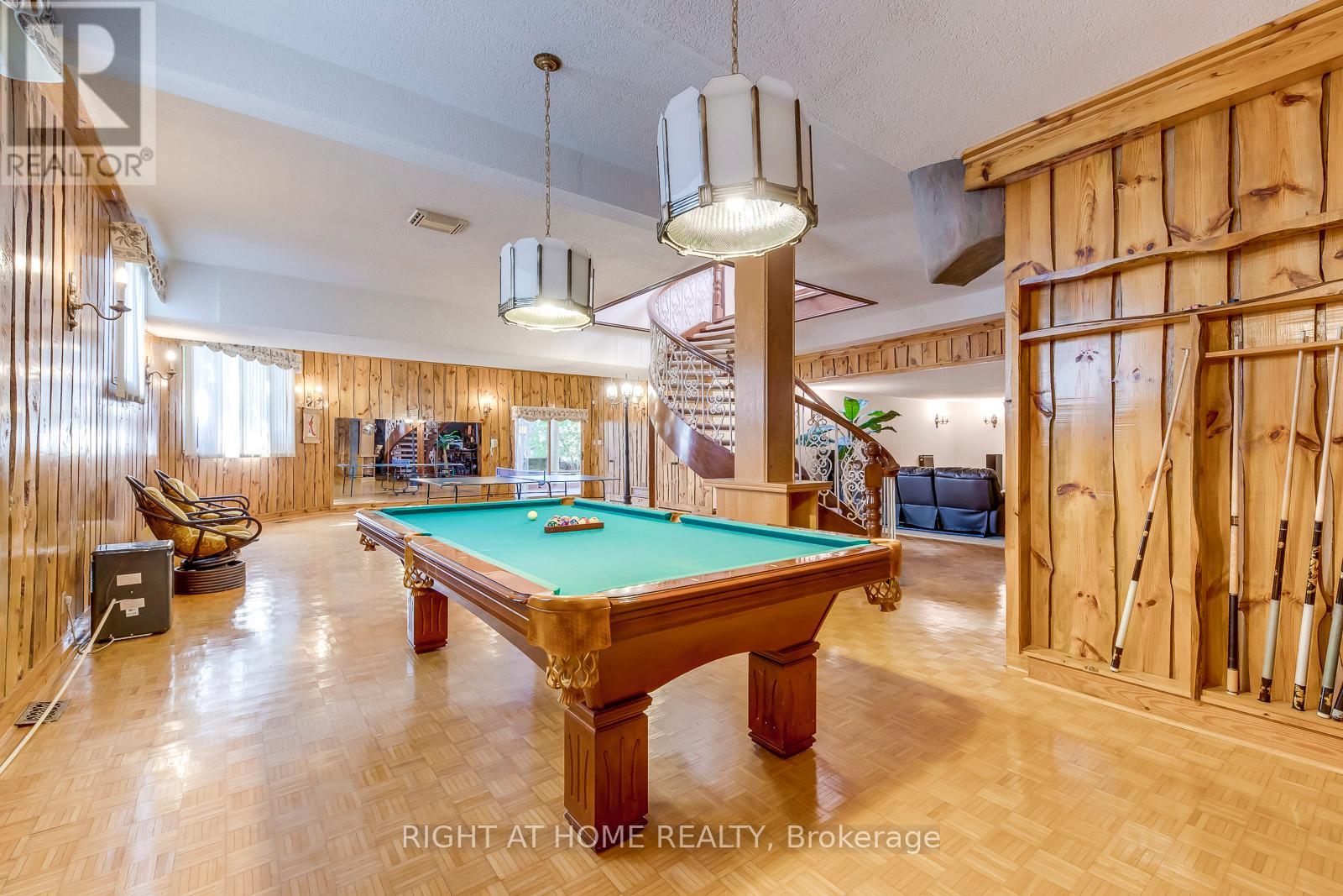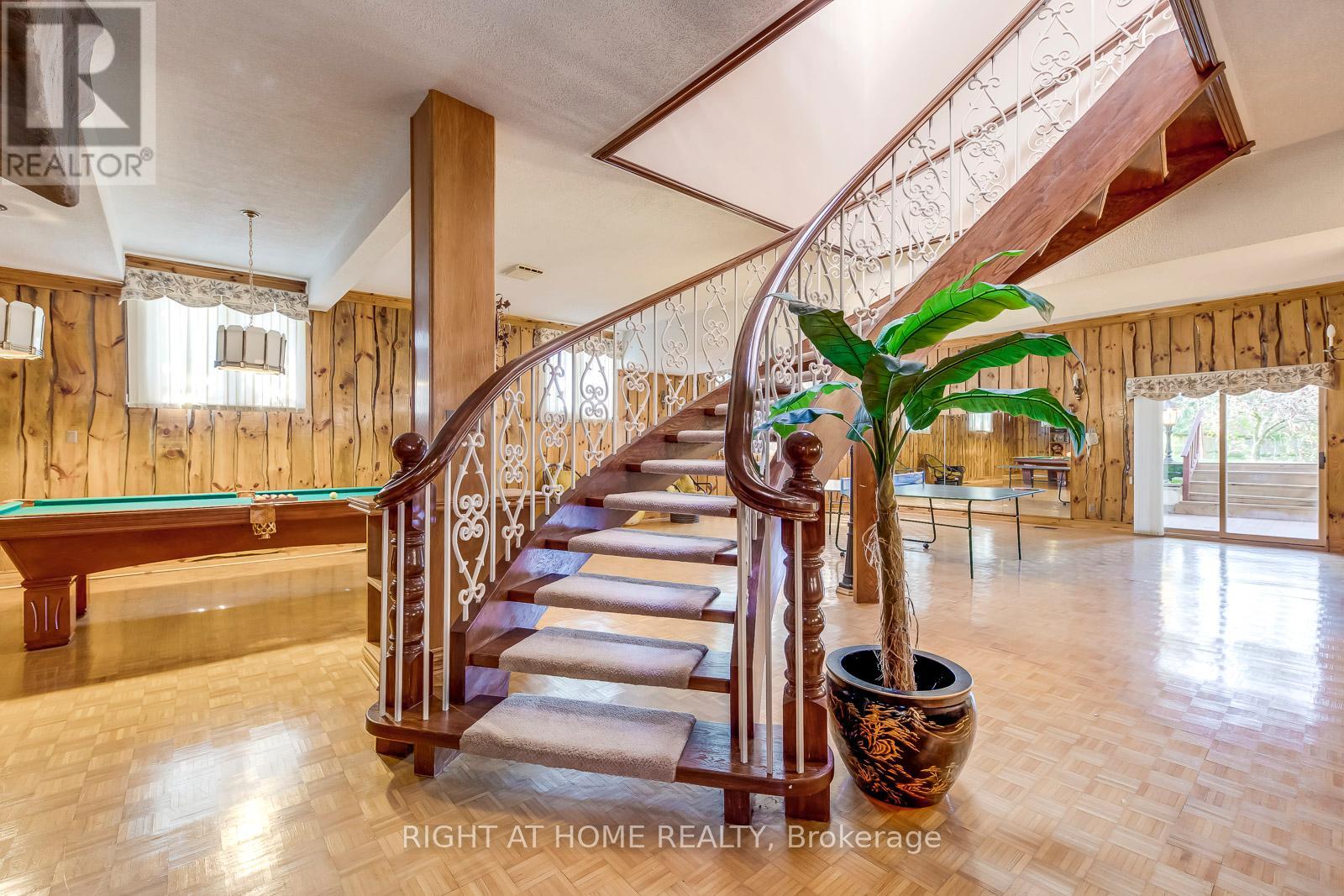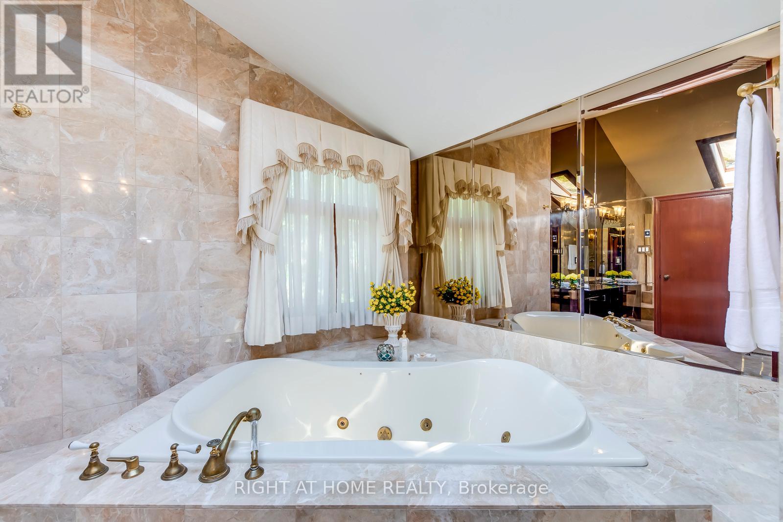 Experience refined living at its finest in this extraordinary custom-built estate, where timeless elegance meets superior craftsmanship. From the moment you step through the beautifully landscaped stone-walled courtyard and into the grand foyer, every detail speaks to exceptional quality and thoughtful design. Soaring cathedral ceilings with three skylights bathe the interior in natural light, while striking wrought iron and oak floating staircases add architectural drama and sophistication. This five-bedroom residence offers a seamless blend of luxury and comfort, featuring multiple stone and wood-burning fireplaces, rich crown moulding throughout, and spa-inspired marble bathrooms. The intelligently designed layout is both spacious and functional, ideal for everyday living and lavish entertaining. A rare 4-car garage, with total parking for up to 12 vehicles, provides ample space for guests and family alike. The fully finished lower walkout basement is a true retreat, complete with a private fitness studio, an elegant recreation lounge with custom made wet bar, a relaxing spa room, sauna, and a cozy fireplace, perfect for unwinding or hosting in style. A rare opportunity to own a home where elegance, warmth, and comfort come together in perfect harmony. (id:4555)