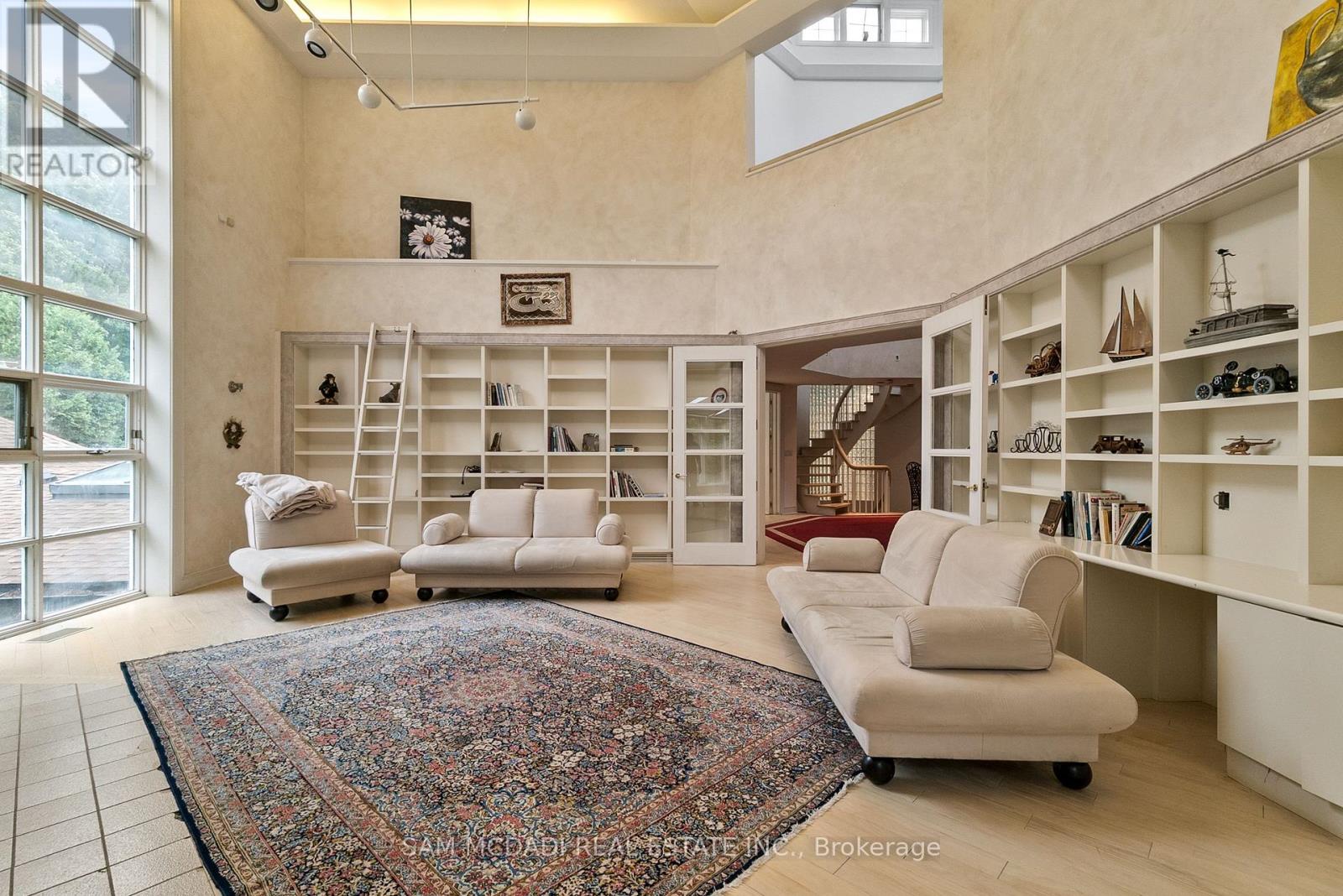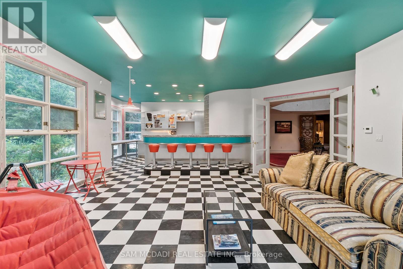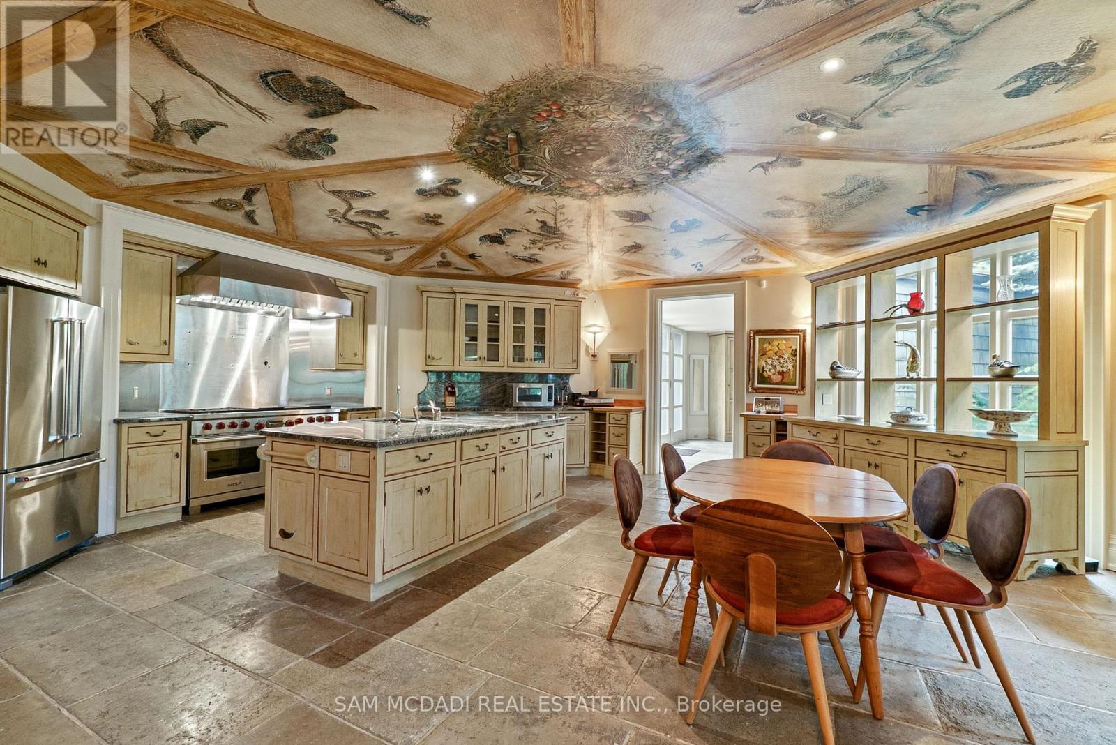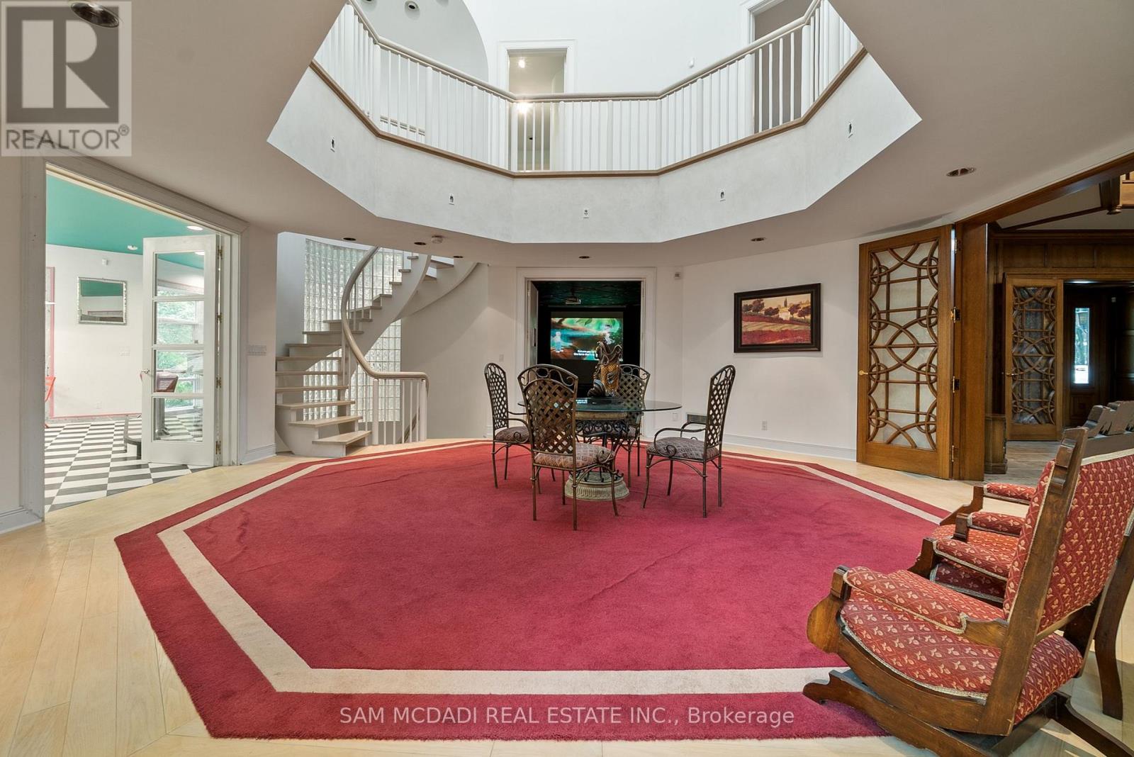 Welcome to 9 Flaherty Lane, a breathtaking custom estate available for lease in one of Caledon's most prestigious enclaves. Set on 10.6 acres and backing onto 50 acres of conservation land, this residence offers a rare opportunity to enjoy resort-style living in complete privacy. With over 13,500 square feet above grade and more than 20,000 square feet in total, the home provides expansive space, refined finishes, and a lifestyle of unmatched comfort. Inside are five spacious bedrooms, each with its own ensuite, including a luxurious Owners Suite with dual his-and-her ensuites. A private guest suite on the lower level ensures comfort and discretion. Soaring ceilings from 10 to 21 feet span all three levels, with dramatic open-to-above living areas that flood the home with natural light, enhanced by a bespoke solarium and sunroom. Signature features include a two-level mahogany library with spiral staircase, a home theatre, a retro 1950s-style diner, and a gourmet kitchen with a 60" Wolf gas cooktop and oven. The five-car garage, multiple fireplaces, and nine geothermal systems ensure both luxury and efficiency. Outdoors, enjoy a spring-fed one-acre pond, a gazebo, and a designer patio with custom railings overlooking the water. Additional highlights include a high-capacity well pumping 120 litres per minute, an oversized septic system, a new roof completed in 2024, and a 16-camera Telus security system. Built to the highest standards with custom materials. Whether relocating or simply looking for a private retreat, this estate offers an exceptional experience. (id:4555)
