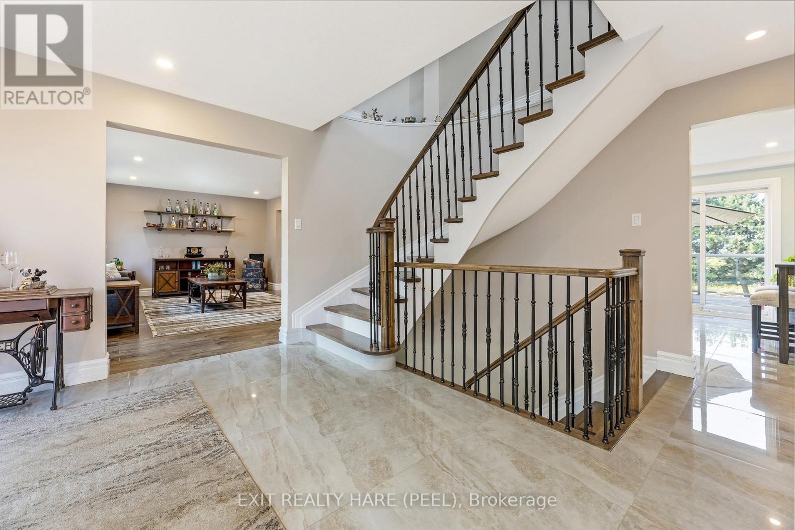 Welcome to 50 Kevinwood Drive in Caledon Village, a rare chance to own a beautifully upgraded family home on nearly half an acre with no homes behind and stunning sunset views. With approximately 2,600 sq ft above grade and approx 4,000 sq ft of finished living space, this property combines comfort, style, and functionality with over 4,700 sq ft total useable space. The main floor boasts a gourmet kitchen, completely redone in 2022 with quartz counters and backsplash, farmhouse sink, moveable island, under-counter lighting, gas stove, and motorized garbage cupboard. From the Breakfast area, walk out to a massive deck (stained 2025) overlooking a private, landscaped backyard. Separate living & dining area plus a cozy family room with gas fireplace (2017). Elegant touches include 7-inch baseboards on the main floor, 6-inch on the second, and a new circular staircase with railings (2022).Upstairs find 4 generous bedrooms and 2 updated bathrooms (2015). The primary suite features a 4-piece ensuite, 2 closets with built-ins, and space for a sitting area. The finished walkout basement adds versatility with an exercise room, separate entrance, 2 bedrooms, a kitchen, and a 3-pc bath perfect for extended family, guests, or rental potential. Meticulously maintained! Roof shingles (2022), furnace and AC (2015), 200-amp service (ESA inspected 2009), and a heated, insulated garage (2022) with 220V outlet ready for adding EV charging. Garage doors replaced in 2015, driveway repaved in 2019 and resealed in 2025.Outdoor spaces are equally impressive, with landscaping completed in 2010 and 2020, creating a private oasis with plenty of room for entertaining. Smart touches like Alexa voice command for main floor lighting complete the package. Blending modern updates with timeless charm, this exceptional property offers space, privacy, and tranquility, just minutes from amenities and commuter routes. Don't miss your chance to make 50 Kevinwood Drive your forever home! (id:4555)