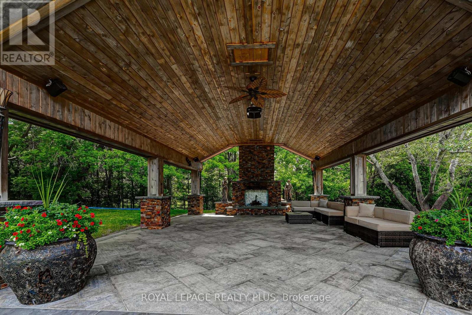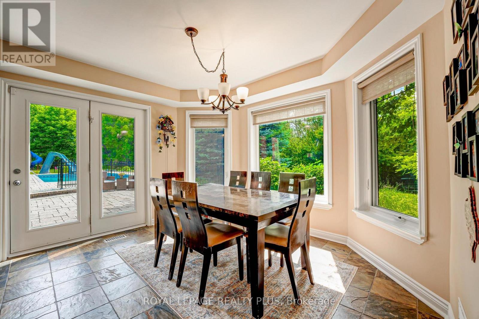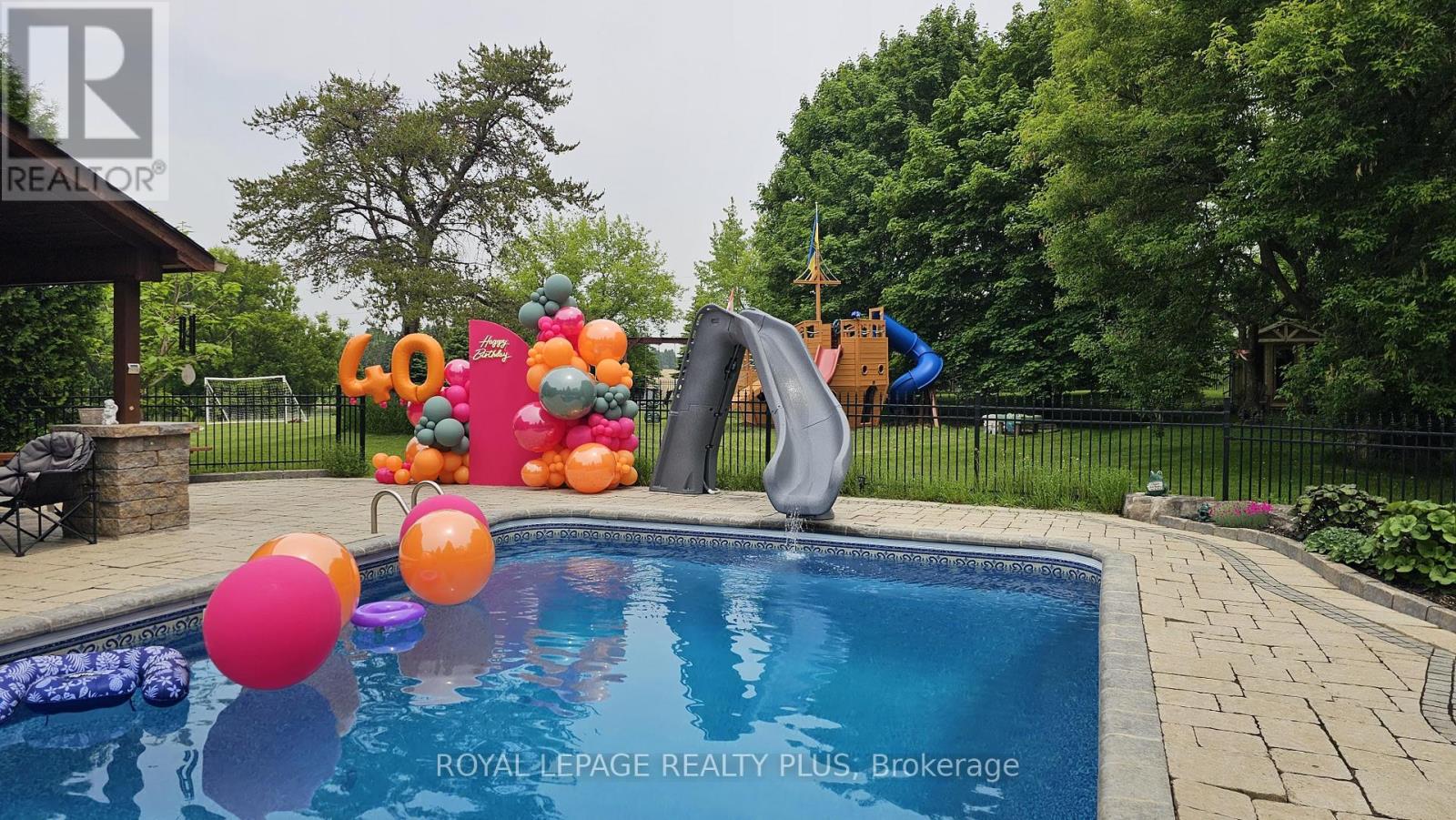 A rare opportunity to own a private estate with beautiful views of the Toronto skyline. Set on a fully landscaped and fenced lot, this property offers exceptional privacy, space, and comfort just minutes from the city. The outdoor setting is designed for memorable gatherings and entertaining, featuring a saltwater pool with pool house, a spacious covered pavilion with cathedral ceilings, fireplace, and theatre, plus a wood sauna and large workshop. The pavilion comfortably accommodates large family events and celebrations, while the expansive lawn and mature trees create a scenic backdrop. Trails offer added enjoyment for walking and outdoor recreation. Inside, the home offers generous principal rooms, an open-concept layout, and large windows that bring in natural light and showcase the surrounding grounds. The upper level features four spacious bedrooms, including a primary suite with walk-in closet and spa-inspired ensuite. The finished lower level provides additional entertaining space and a home office, ideal for both family living and working from home. A unique property offering privacy, versatility, and exceptional outdoor living just beyond the city. A three-car garage provides ample parking and storage, with a separate workshop located at the rear - ideal for hobbyists, car enthusiasts, creative projects, or additional workspace. (id:4555)