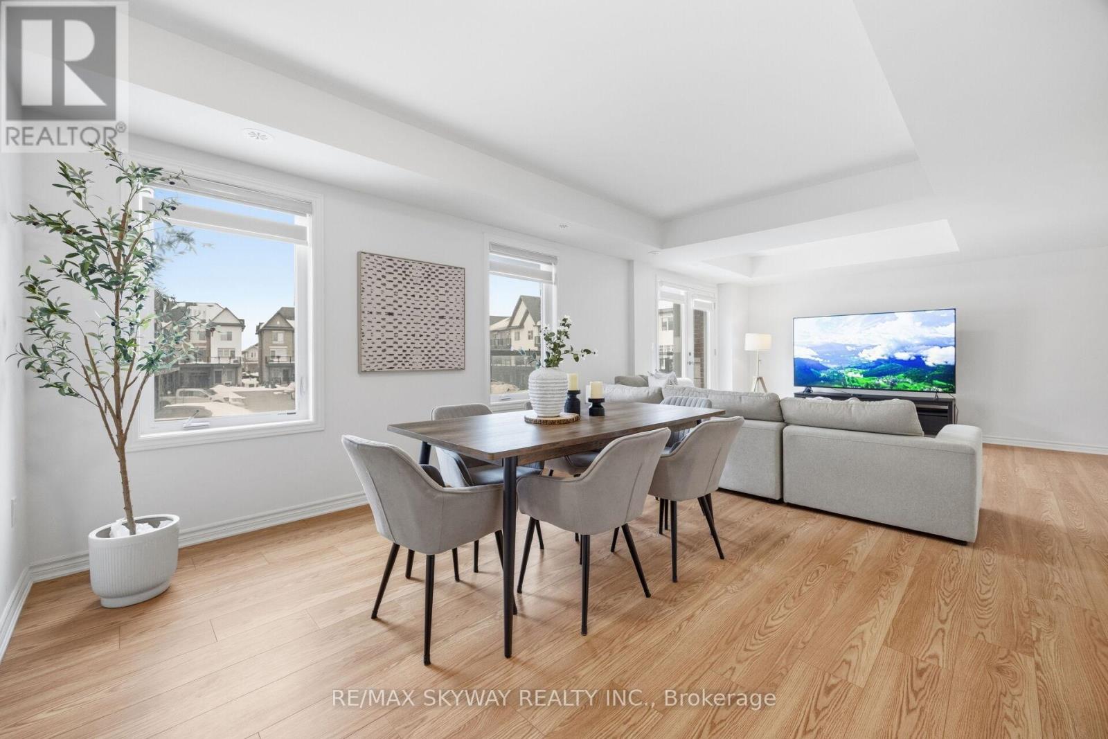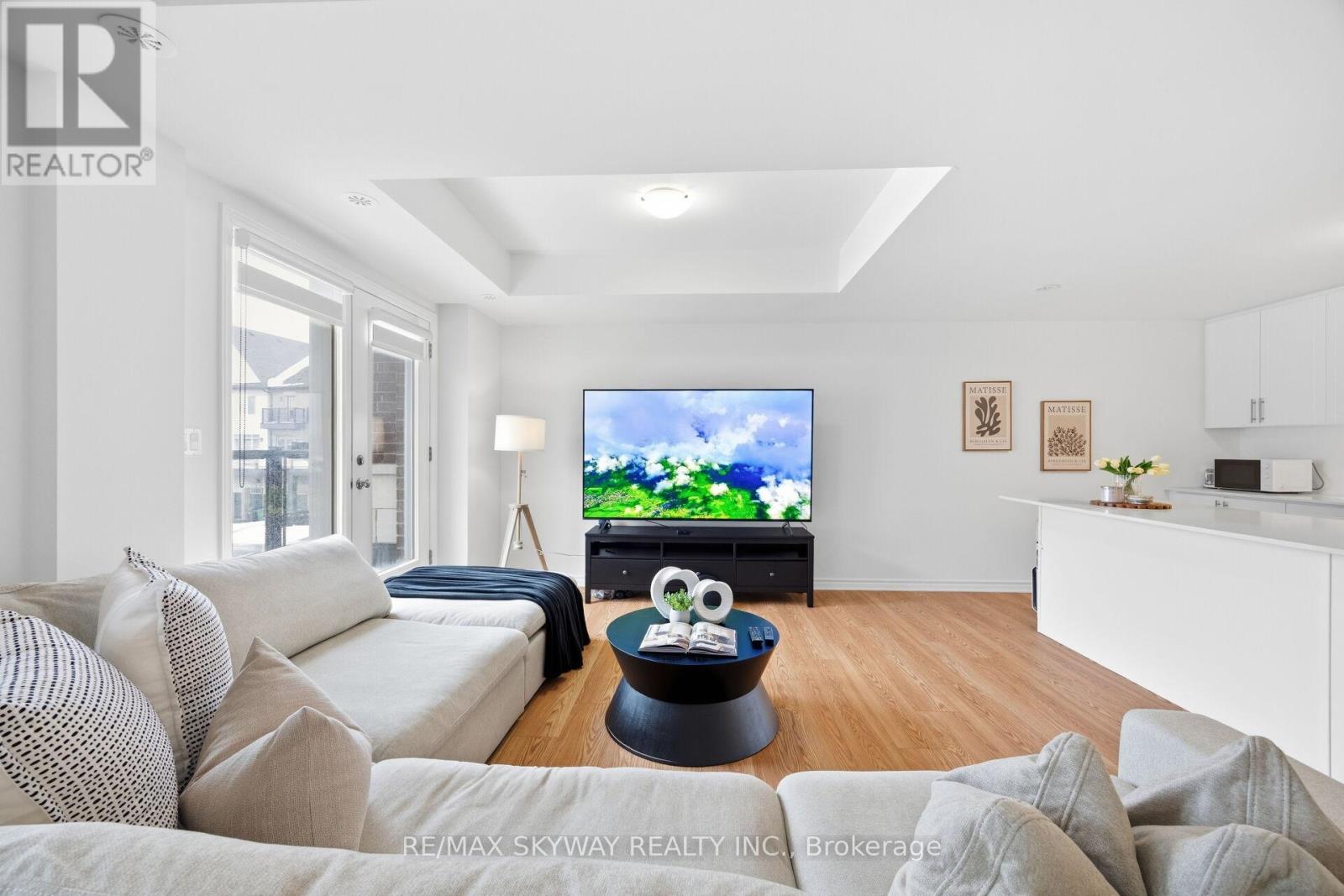 Welcome to this stunning 6-month-new executive 3-storey townhouse in the highly sought-after Southfields Village, Caledon. Offering approx. 1,690 sq ft as per builder's floor plan, this modern home features an elegant stone, brick & stucco elevation and an unbeatable location directly across from the Southfields Community Centre and skate park, and steps to all daily amenities. A spacious foyer with ceramic tiles leads to the bright open-concept great room combined with dining area, perfect for entertaining and everyday living. Walk out to an oversized balcony ideal for summer enjoyment. The modern kitchen boasts stainless steel appliances, ample cabinetry, a large centre island with breakfast bar, and generous counter space. A convenient powder room completes this level. Upstairs features a spacious primary bedroom with large window and 5-piece ensuite. Two additional well-sized bedrooms share an upgraded bathroom with frameless glass shower, and the second bedroom offers access to its own private balcony. A rare highlight is the fully private terrace for summers bbqs and gatherings, perfect for BBQs and outdoor gatherings. Includes 1-car garage plus 1 on driveway (2 total). Location is exceptional: directly across from Southfields Community Centre and skate park, steps to plaza with grocery stores, pharmacy, restaurants, and convenience stores. Walking distance to highly rated Southfields Village Public School, Bonnieglen Farm Park, access to Etobicoke Creek Trails, parks and pond. Close to the newly opened Mega Gym and conveniently located on a bus route, making commuting simple and accessible. (id:4555)