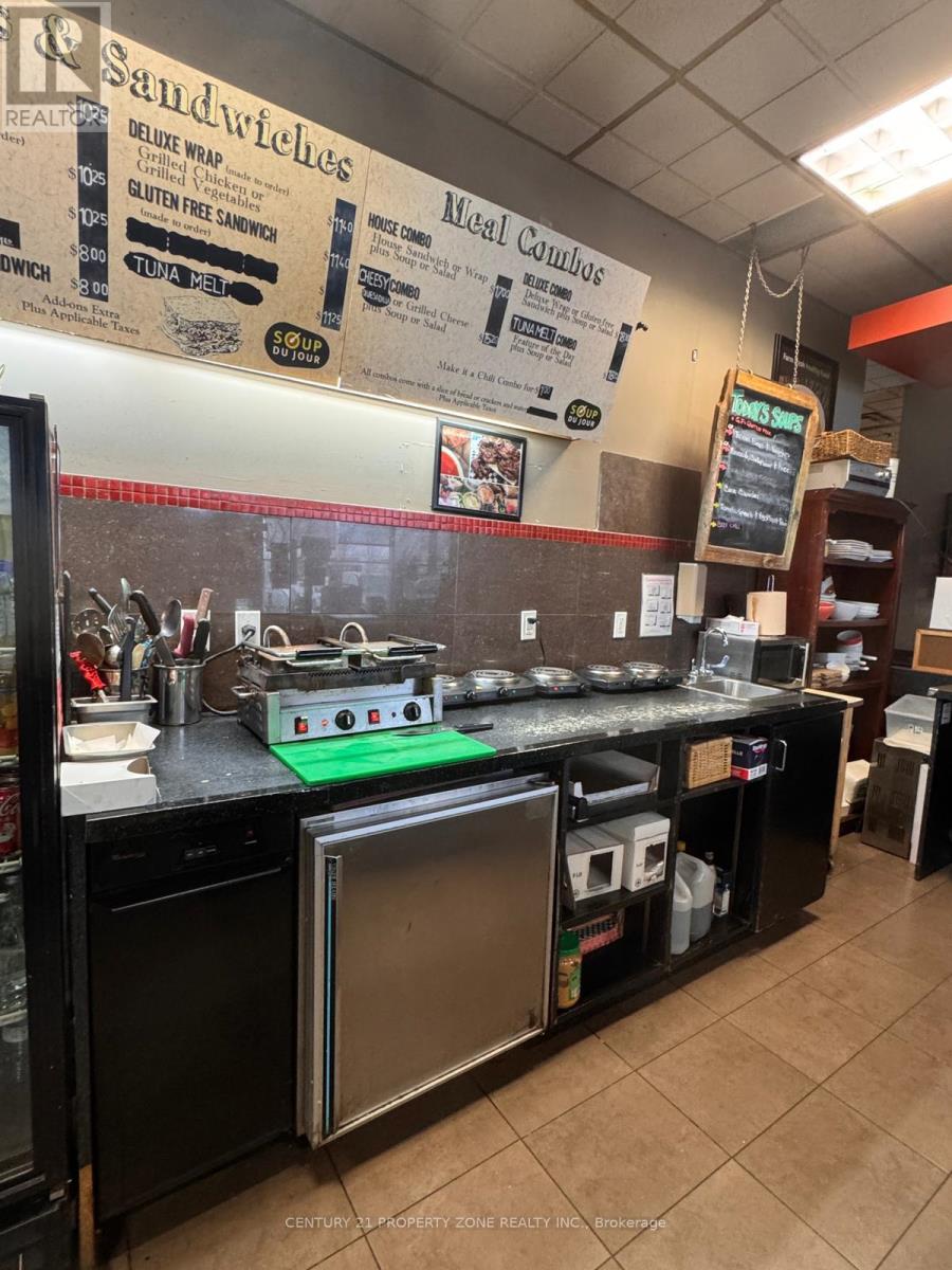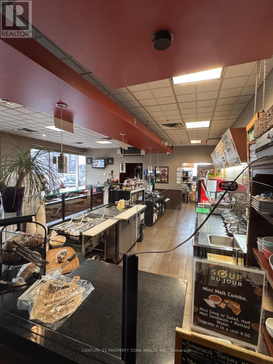 Turn-key café business for sale - Soup Du Jour, a well-established brand with approximately 20 years ofsuccessful operation. Located in a busy commercial area near a major plaza and Landmark Cinemas,benefiting from strong foot traffic and repeat clientele. The café offers seating for approximately 26-30guests within a 1,009 sq. ft. space. Affordable rent of $3,900/month including TMI and property taxes, withwater and hydro included. Lease in place until May 31, 2026.Landlord may be flexible with other permitted uses subject to landlord approval and obtaining any requiredcity permits. Excellent opportunity for an owner-operator or entrepreneur to take over a long-standingneighborhood café with growth potential. Business only - property not included. (id:4555)