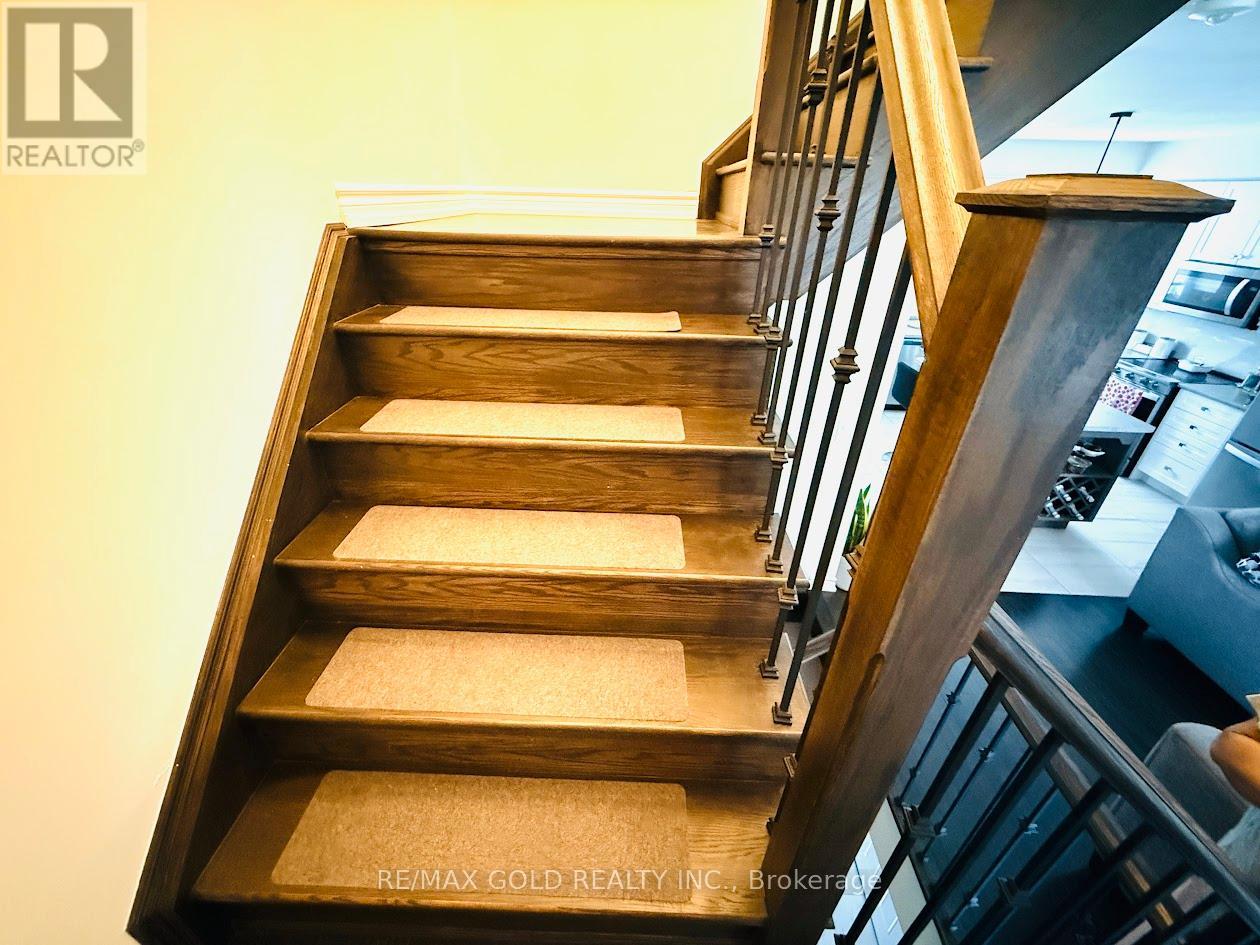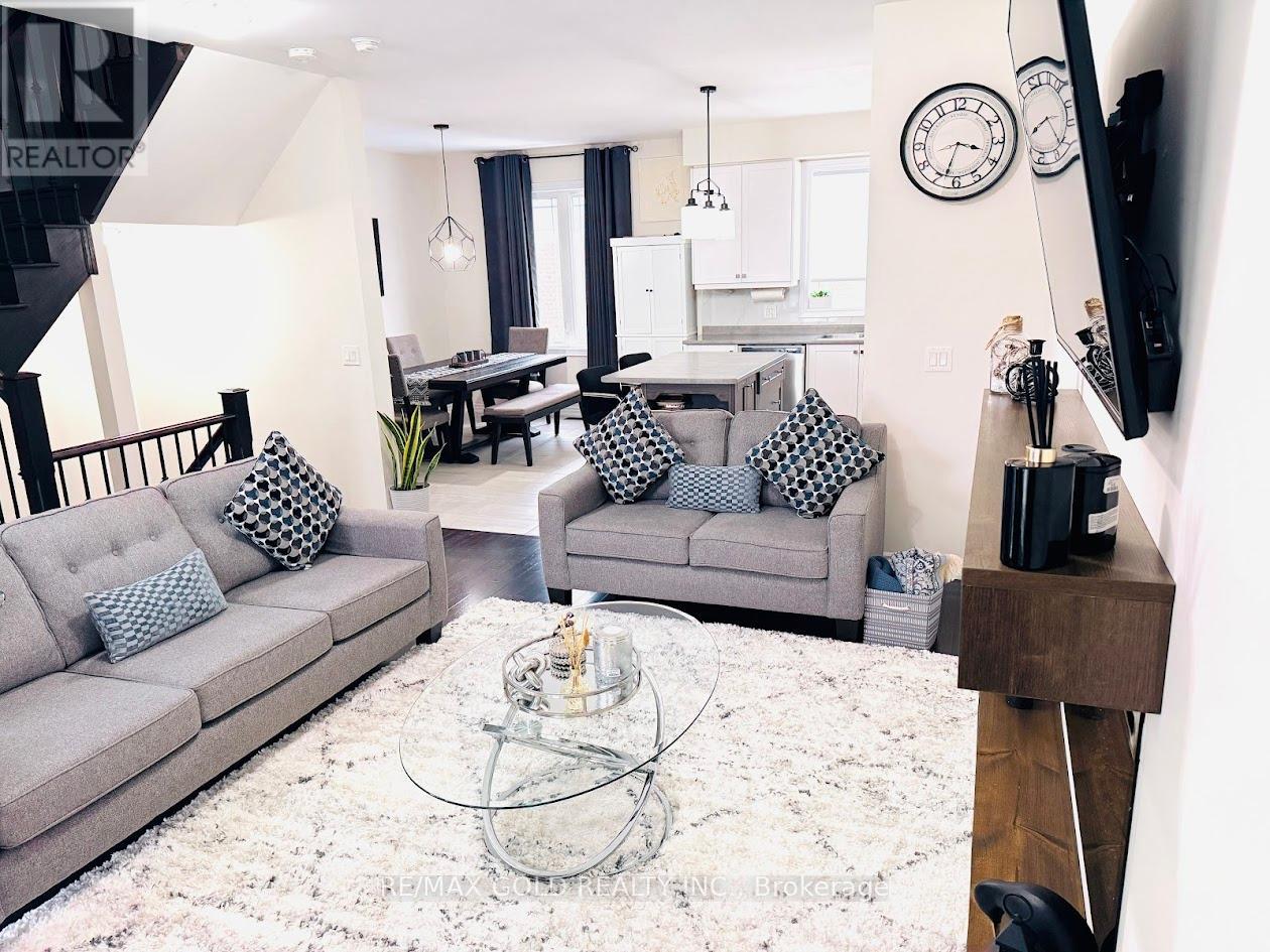 Beautiful three-storey freehold townhouse in the desirable Southfields Village community of Caledon! This five-year-old Coscorp "Chelsea" model offers approximately 1,683 sq. ft. of well-designed, move-in ready living space on a quiet street. The ground floor features a spacious entry, a versatile bedroom with walk-out to a private deck and fenced backyard, a bright laundry room, and convenient access to the attached one-car garage. The second level boasts 9-foot ceilings and an open-concept layout with a modern kitchen featuring a centre island with breakfast bar, stainless steel appliances, and views over the dining area. The spacious living room showcases hardwood floors and a walk-out to a private balcony, perfect for relaxing or entertaining. The third level offers three generously sized bedrooms and two full bathrooms. The primary bedroom includes closet organizers and a convenient upgraded three-piece ensuite. Ideally located just steps to parks, schools, shopping, and everyday amenities-this home offers comfort, style, and convenience for modern family living. (id:4555)
