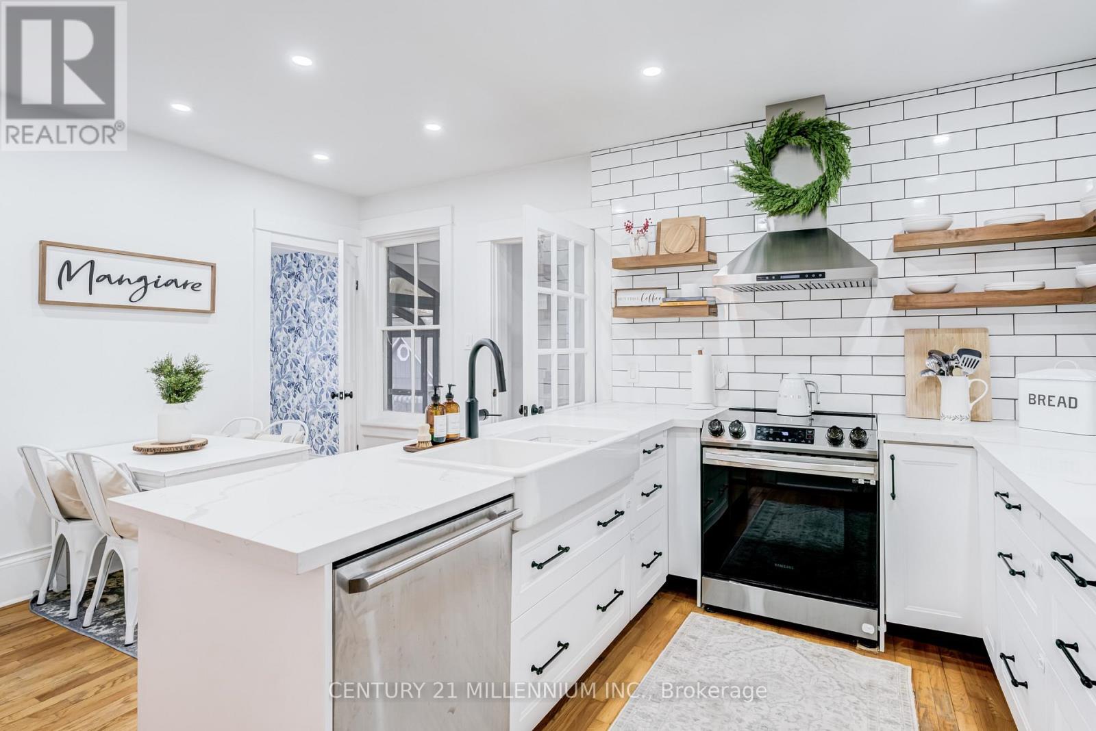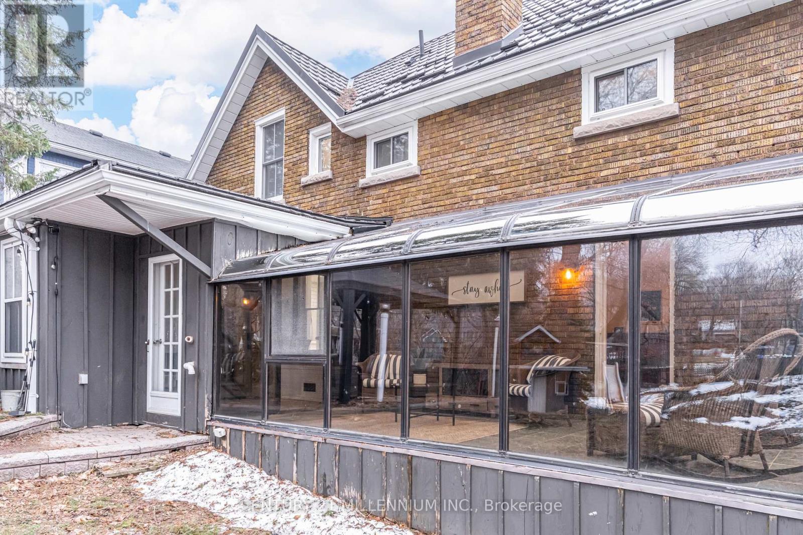 Step into timeless charm with the comfort of modern living in this beautifully updated early-1900s home nestled in the heart of the picturesque village of Inglewood. Full of character yet thoughtfully renovated throughout, this home offers the perfect balance of historic warmth and modern upgrades that allow buyers to move in and enjoy without the hassle of major updates. The main level welcomes you with a spacious living room featuring a cozy gas fireplace and large windows that fill the space with natural light. From here, step into the bright three-season sunroom, surrounded by windows and overlooking the expansive backyard-an ideal space to relax and take in the peaceful setting. At the heart of the home is the fully renovated eat-in kitchen, complete with stainless steel appliances, granite countertops, a double sink, a convenient walk-in pantry, and beautiful wood shelving that enhances the charm and character of the home. The formal dining room provides an inviting space for gatherings, featuring three large windows, crown molding, and built-in shelving. Just off the kitchen, an additional family room offers even more living space and direct access to the sunroom, creating an easy flow for everyday living and entertaining. A newly renovated two-piece bathroom completes the main floor. Upstairs you will find four well-sized bedrooms and a four-piece bathroom, offering plenty of room for family, guests, or a home office. Outside, the large backyard is designed for both relaxation and fun, featuring a pergola, a charming playhouse, and a shed with power-perfect for hobbies, storage, or a workshop. Extensive updates provide peace of mind, including a new furnace and air conditioner, all new electrical, new interior doors throughout, new windows and blinds, a durable metal roof with new eavestroughs, and a new septic pump. Located in the highly desirable village of Inglewood, this home offers a lifestyle that blends natural beauty with community charm. (id:4555)