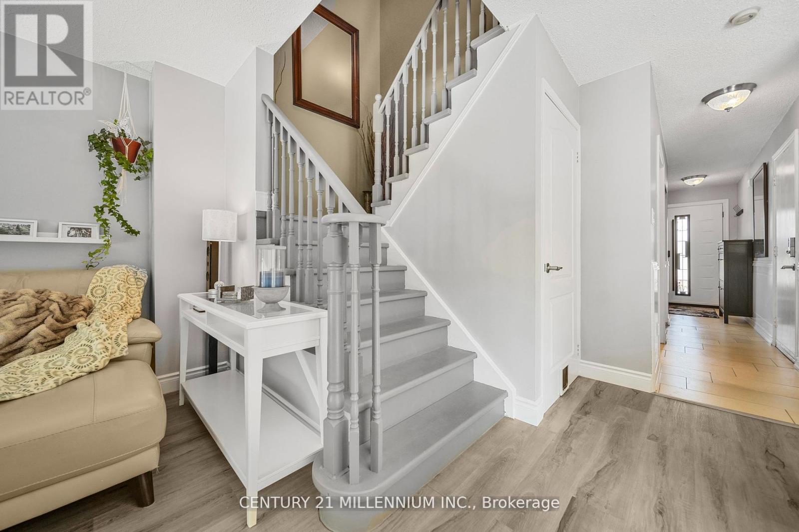 Beautiful 3 Bedroom Freehold Townhouse In Popular Valleywood! Main Floor Has A New Upgraded Front Door, A Sunny Breakfast Nook And A Renovated Kitchen With Large Pantry and SS Appliances (Stove, Fridge and Dishwasher) And A Built In Microwave. You Will Find Plenty Of Natural Light In The Dining And Living Rooms As Well As Brand new Floors And Baseboards. On The Second Floor, You Will Find 3 Bedrooms, A Main Bathroom With Double Sinks And A Primary Bedroom Which Boasts A Large Walk-In Closet And Renovated 4Pc Ensuite. Walk Out To Your Backyard Oasis And You Will Find A Beautiful Saltwater On Ground Pool, A Hot Tub And A 10'X 12' Deck For Entertaining. Backyard Backs Onto Park So No Neighbours Behind! Newer Windows And Garage Door With 3 Total Parking Spaces. (id:4555)