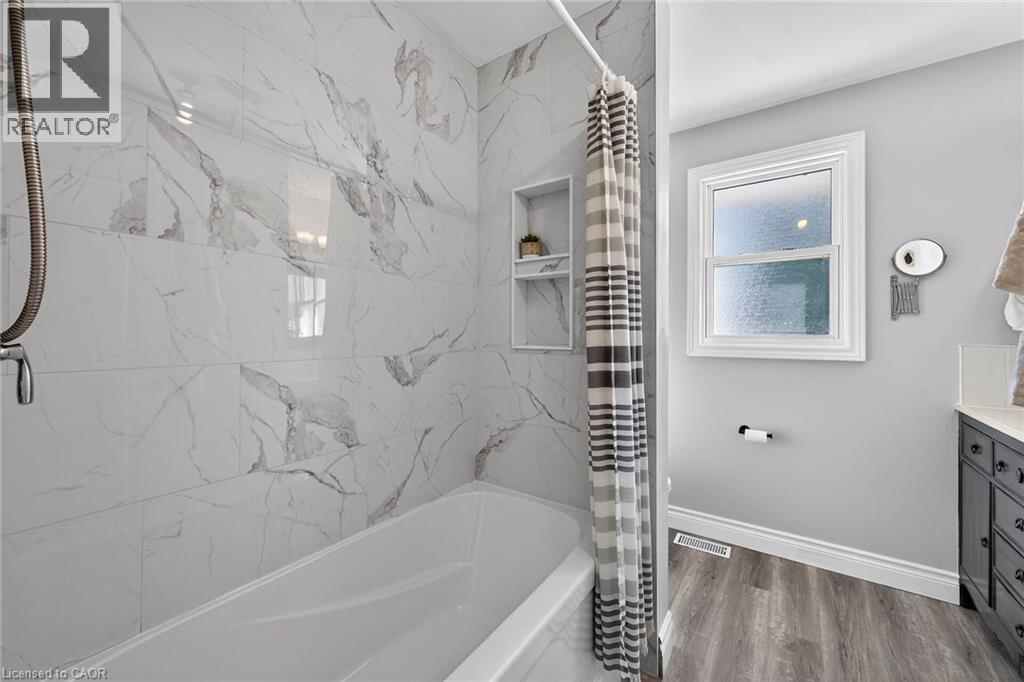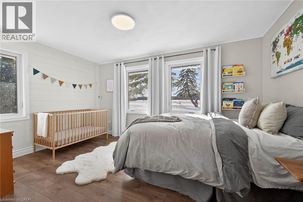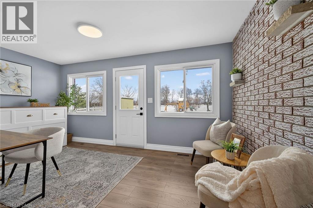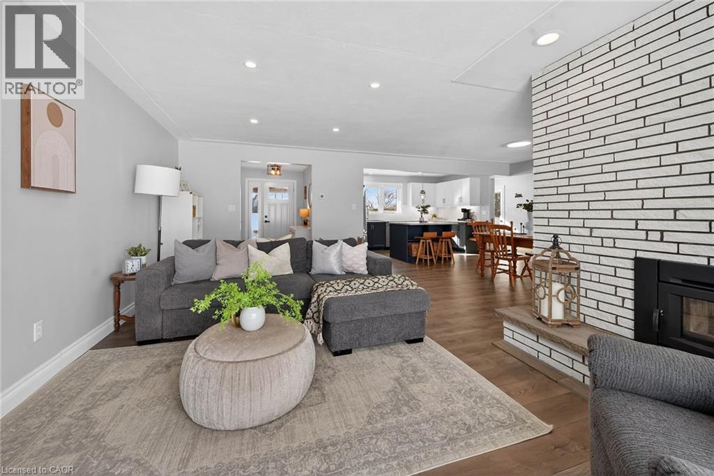 Experience the joy & benefits of rural living - while enjoying Caledonia's popular amenities mins down scenic River Road. Located in sought after Oneida Township - an agricultural area renowned for rolling farm fields & one of Ontario’s best public school systems - 20/25 min commute to Hamilton. Incs extensively renovated (btw 2020-22) brick bungalow situated on 105x190.50 lot overlooking fields & forests savoring the beautiful Spring fragrances of neighboring wild flower farm. Introduces 1559sf of stylish living space, 1027sf basement, 500sf 4ft hi crawl space + 400sf heated garage ftrs insulated/plywood clad interior-2022 & insulated garage door-2024. Paved driveway complimented w/recent armor stone landscaping-2025 - extends to versatile 10x20 rear yard shed & freshly poured 30x14 concrete private entertainment patio. Open concept main floor showcases bright living room embracing the warmth of wood burning fireplace augmented w/4 panel bay window plus 2-sided brick accent wall separating dining room - design flows to multi-purpose room - suitable for den, office or 3rd bedroom enjoying rear yard WO - continues to gorgeous new kitchen-2021 sporting brilliant white uppers, contrast blue lower cabinetry + island, tile back-splash & quality SS appliances. South-wing boasts modern 4pc main bath flanking spacious primary bedroom & sizeable 2nd bedroom. Convenient 2nd outside front door accesses mud room offering entry to garage & fully renovated 2pc bath-2025 incorporating laundry station. X-wide staircase descends from garage to unspoiled basement - waiting to create personal finish w/elevated door opening to spray foam insulated crawl space incs concrete floor providing dry storage space. Extras - p/g furnace/AC-2020, added attic insulation-2025, premium laminate flooring-2019, interior doors/hardware/baseboard/trim-2021, 100 amp hydro-2020, new vinyl windows s'2020, eaves/downspouts-2025, 4000g cistern, UV purification & septic. Attractive & Affordable Country Gem (id:4555)