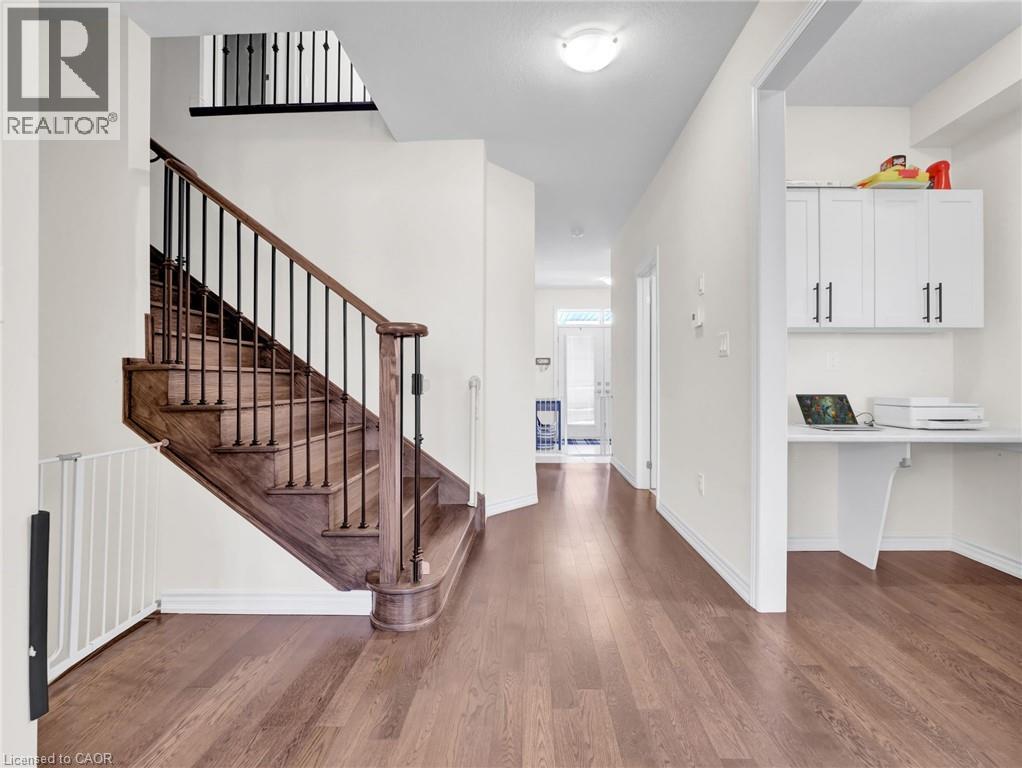 Welcome to this bright and spacious less-than-5-year-old contemporary home offering over 2700 sq. ft. of beautifully finished living space, with 2200 sq.ft. above ground and a finished basement! As you enter through the elegant double door entry, you’re greeted by a welcoming foyer with a large walk-in closet, setting the tone for the functional layout and upscale finishes throughout. The main floor boasts a stylish open-concept kitchen, a dedicated office space, and a sun-filled great room flowing seamlessly into the dining area, which opens through sliding glass doors to a fully fenced backyard—perfect for family gatherings and outdoor entertaining. Upstairs, you’ll find four generously sized bedrooms, including a luxurious primary suite with a 5-piece ensuite bathroom and a massive walk-in closet. The mostly finished basement offers even more flexibility, with ample space ideal for an in-law suite, recreation room, or home gym. This home features ample parking with a double-car garage and a double-wide driveway. Located in a vibrant new community, you’ll enjoy close proximity to the Grand River, scenic trails, and parks, making it ideal for nature lovers. Plus, a brand-new school just steps away adds incredible value for growing families. *Premium appliances and Gas stove* (id:4555)