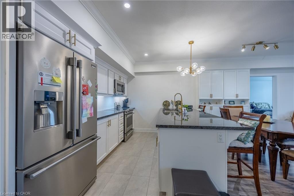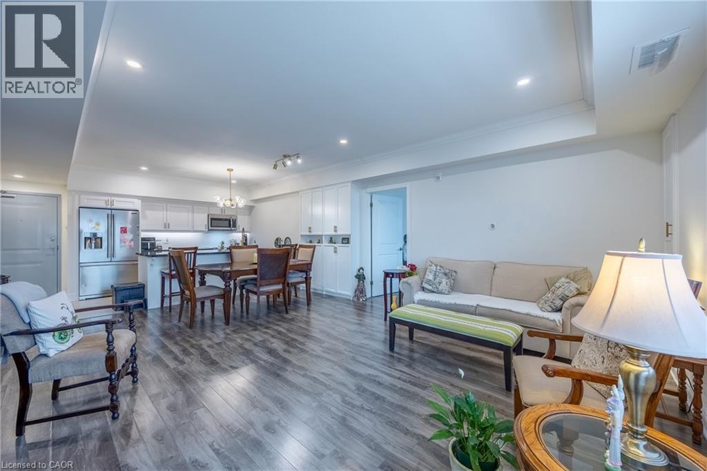 Welcome to Unit #203 at 65 Haddington Street — offering comfort, style, and everyday convenience in the heart of Caledonia. This bright and spacious 2-bedroom, 2-bathroom suite showcases a functional open-concept layout designed for modern living. With 9-foot ceilings, crown moulding, pot lights, and elegant California shutters throughout, the unit offers a refined and airy atmosphere from the moment you walk in. The open kitchen is perfect for entertaining, featuring an oversized peninsula, sleek subway tile backsplash, premium appliances, and beautiful cabinetry that blends style with functionality. Both bathrooms and the kitchen have been tastefully upgraded with stylish hardware, while custom light fixtures and fresh paint enhance the home’s bright, contemporary feel. Added value comes with two owned parking spaces and plenty of additional storage upgrades. Location is another standout feature. Situated within walking distance to local grocery stores, restaurants, parks, and everyday amenities, the condo also sits directly across from the library, community centre and arena, making it convenient for a wide range of lifestyles. Residents enjoy easy access to major routes connecting to nearby communities such as Hamilton, Hagersville, and Brantford, making commuting simple while still enjoying the charm and relaxed pace of small-town living. Whether you're a first-time buyer, downsizer, or professional looking for a stylish and convenient place to call home, Unit #203 offers an exceptional opportunity to enjoy modern condo living in one of Caledonia’s most desirable locations. Book your showing today! (id:4555)