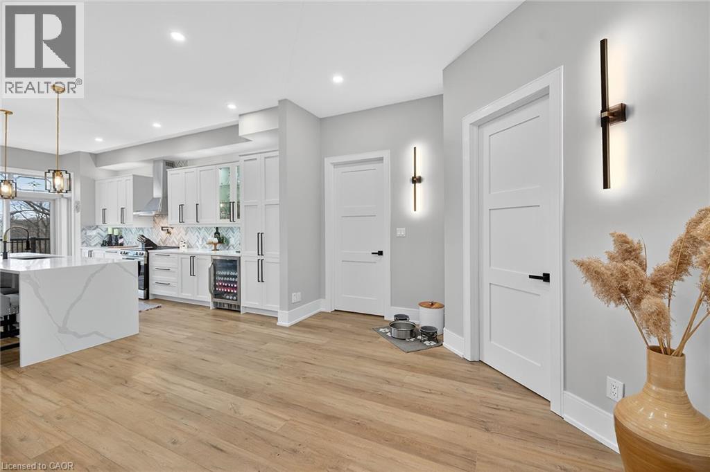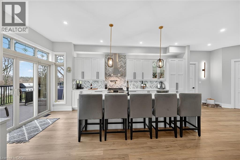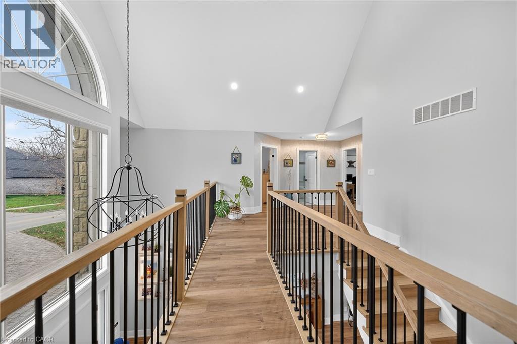 This stunning home backing onto the Grand River has been completely renovated from top to bottom! This beautiful home sits on a double lot with over 5000 sq ft of living space. Amazing curb appeal with a circular driveway big enough for 10 cars and an oversized double garage. A grand foyer welcomes you to the spacious main level with 10' ceilings. You will notice the amazing nature light from the front foyer window and a wall of windows along the back of the home. A cozy living room awaits you with a gas fireplace leading to a lovely dining room perfect for meals with family and friends and an amazingly large functional kitchen with cabinets galore and a 10' island. Patio doors from the kitchen open to an upper deck with stunning views of the Grand River, an expansive backyard with a firepit and a 30' dock, you'll will feel like you're on vacation everyday. The main level also includes an office/bedroom off the front foyer, a 2 piece bathroom, laundry room and automatic blinds on the front foyer window, living room and dining room windows. Moving up to the 2nd floor, you will find a gorgeous primary bedroom with a walk in closet, a spa like ensuite with a walk in shower and soaker tub, also 3 generous sized bedrooms and a 4 piece bathroom. All bedroom closets have closet organizers. The expansive lower level includes a large family room with pool table, 3 more bedrooms and a bright 3 piece bathroom. The lower level family room leads you to a covered patio with an 8 person Beachcomber hot tub, enjoy peaceful evenings star gazing and river views. In addition to the oversized double garage, there is a utility garage at the back of the house which is perfect for your riding lawnmower and anything other landscaping equipment. Country feels with all the amenities near by! Don't miss out on this wonderful family home! (id:4555)