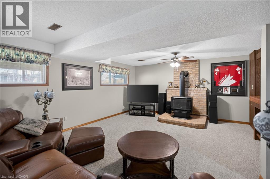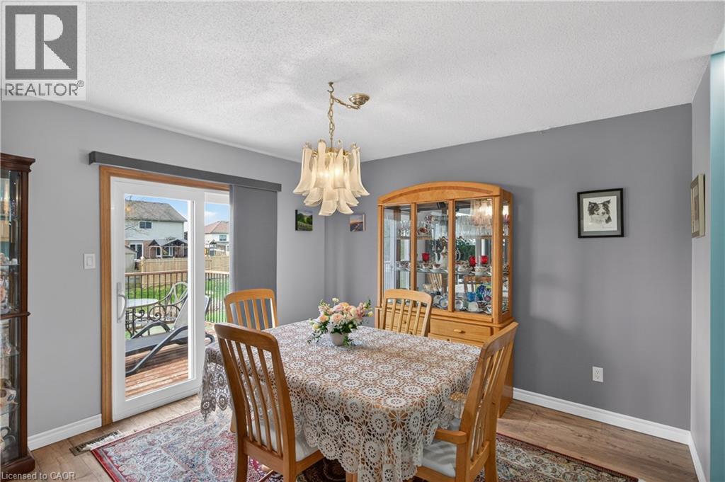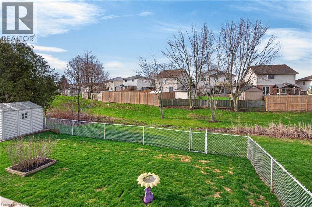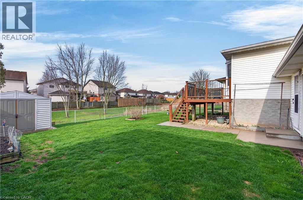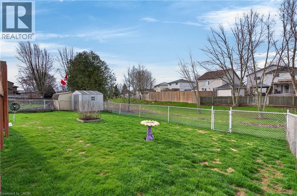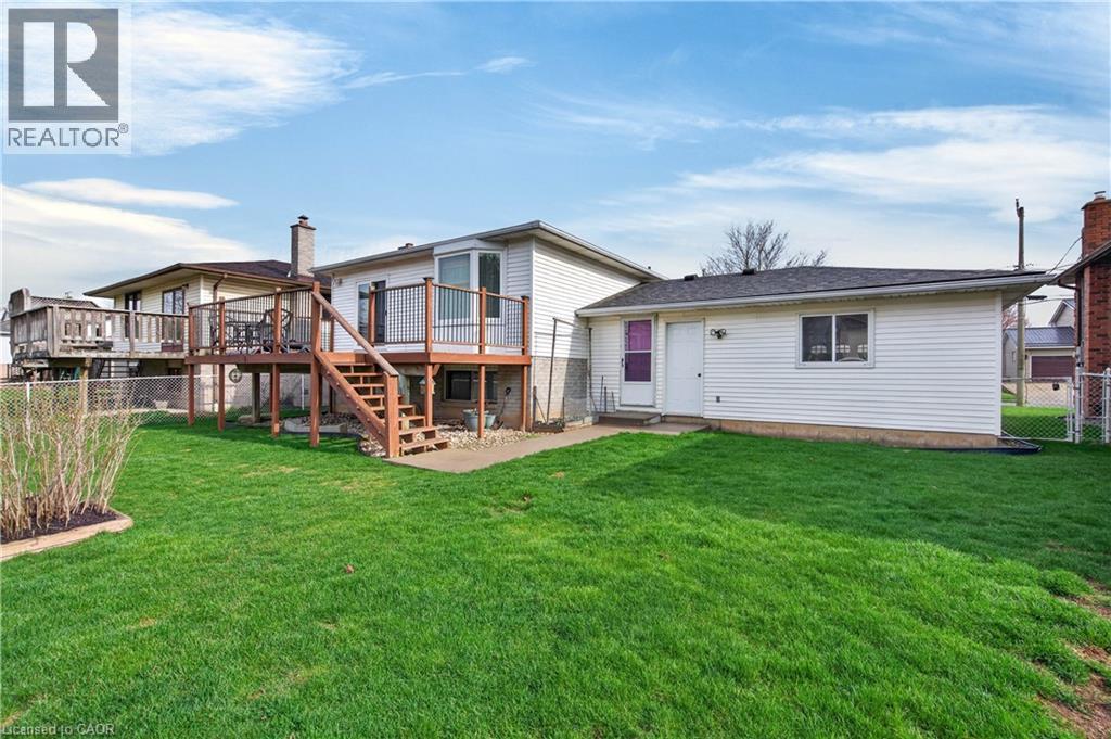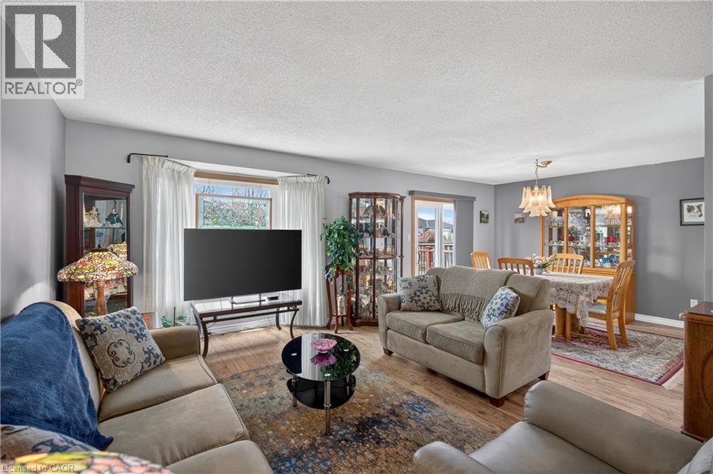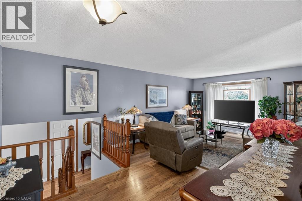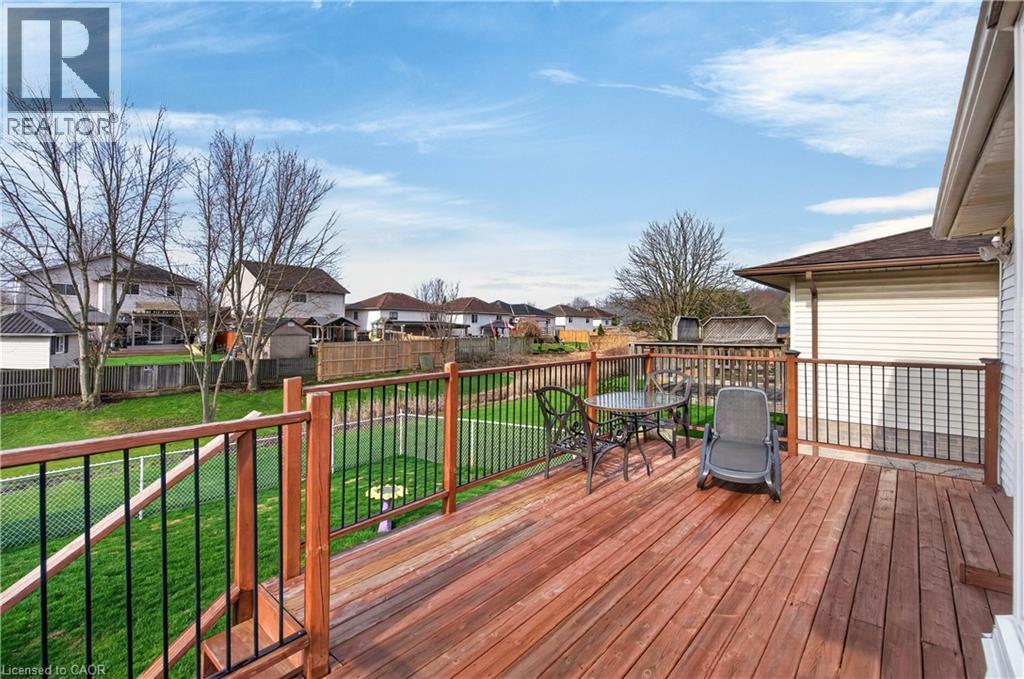 Welcome to this well-maintained 2+1 bedroom, 2 bathroom raised ranch, ideally situated on a quiet street in the charming town of Caledonia. Set on a mature 60.04’ x 104.99’ lot backing onto green space, this property offers a rare blend of privacy, functionality, and lifestyle appeal. The home features surfaced parking for 4+ vehicles along with a bonus double car garage with convenient inside entry. A large covered front porch leads into a breezeway and welcoming front door with a sidelight window, filling the spacious foyer with natural light. Just a few steps up, the main level opens into a bright, open-concept layout designed for everyday living and entertaining. Enjoy a spacious living room with a beautiful bay window, a dedicated dining area with sliding doors to an oversized rear deck, and an eat-in kitchen complete with updated countertops, stainless steel appliances, and pot lighting. The primary bedroom offers an oversized closet, complemented by an additional generously sized bedroom and a 4-piece bathroom with a skylight. The fully finished lower level adds exceptional versatility, featuring a large recreation room with gas fireplace, retro bar area, a spacious third bedroom with ample storage, and a 3-piece bathroom with a walk-in glass shower. Laundry facilities and additional storage complete the space. Step outside to a large, private backyard with a storage shed - perfect for relaxing or entertaining. Noteworthy updates include kitchen appliances (2016), many windows and the rear sliding door (2018), roof shingles (2019), and laminate flooring (2020). Located on sought-after MacCrae Drive, residents enjoy a peaceful, family-friendly setting with easy access to parks, schools, and the Grand River. Caledonia offers a strong sense of community while remaining just a short drive to Hamilton, providing convenient access to urban amenities, major routes, and commuter options. (id:4555)