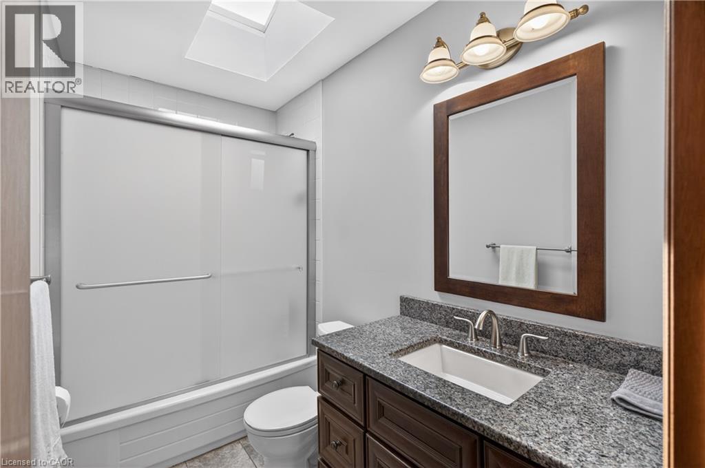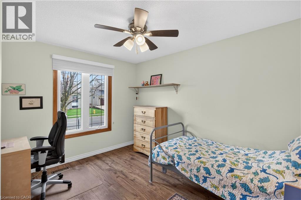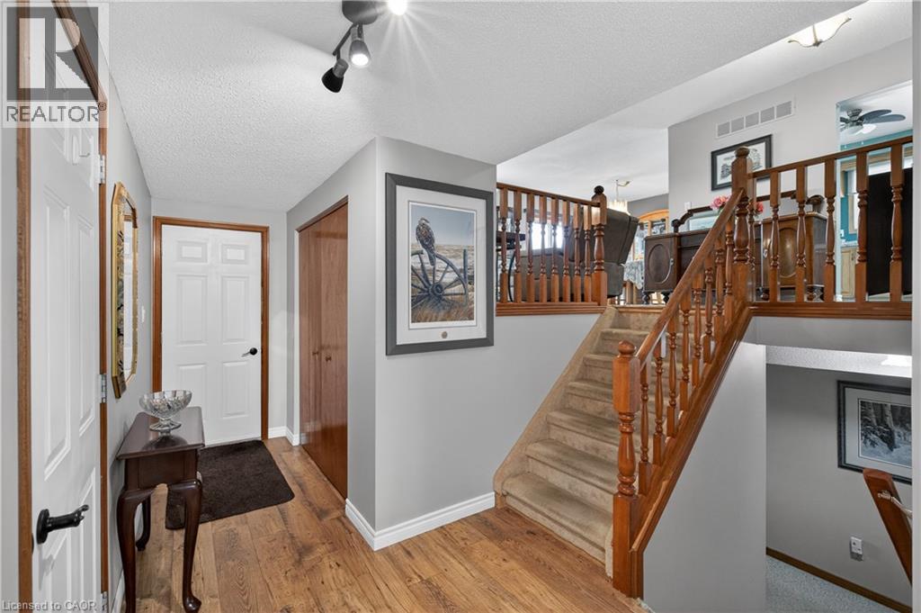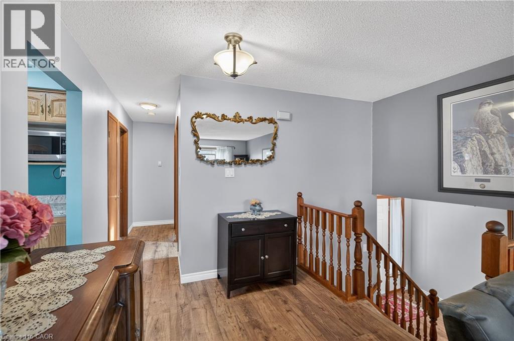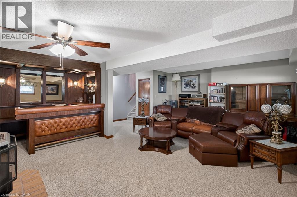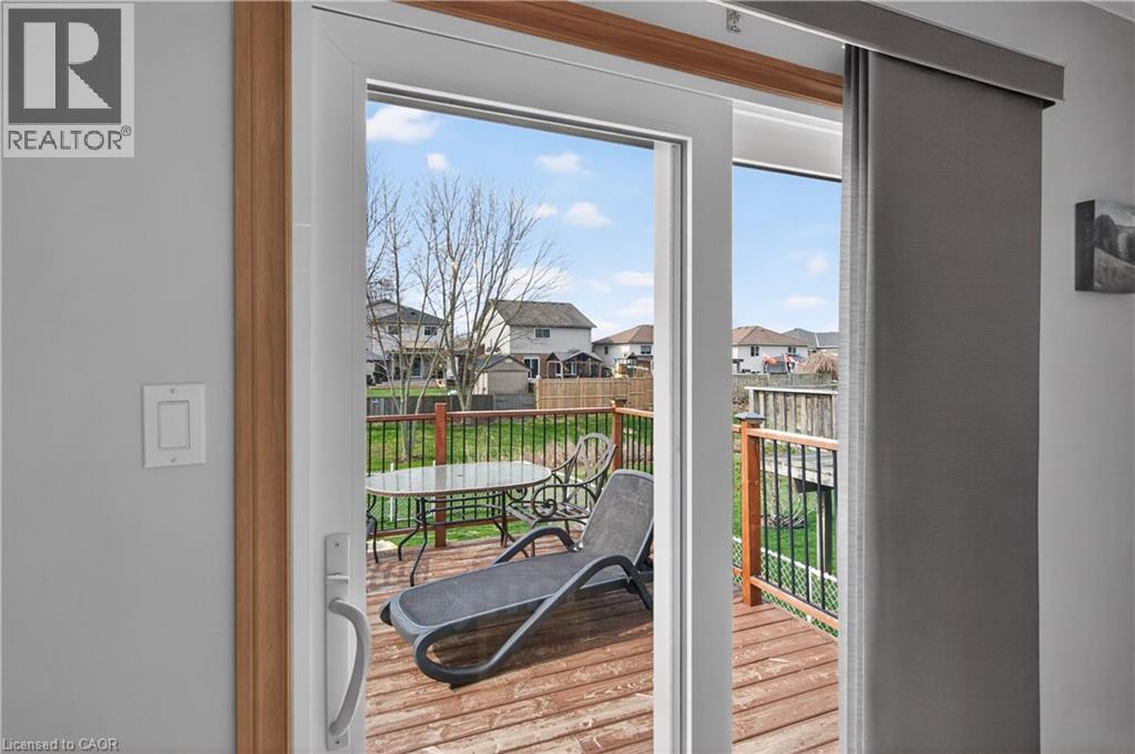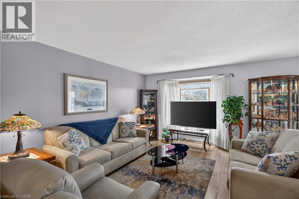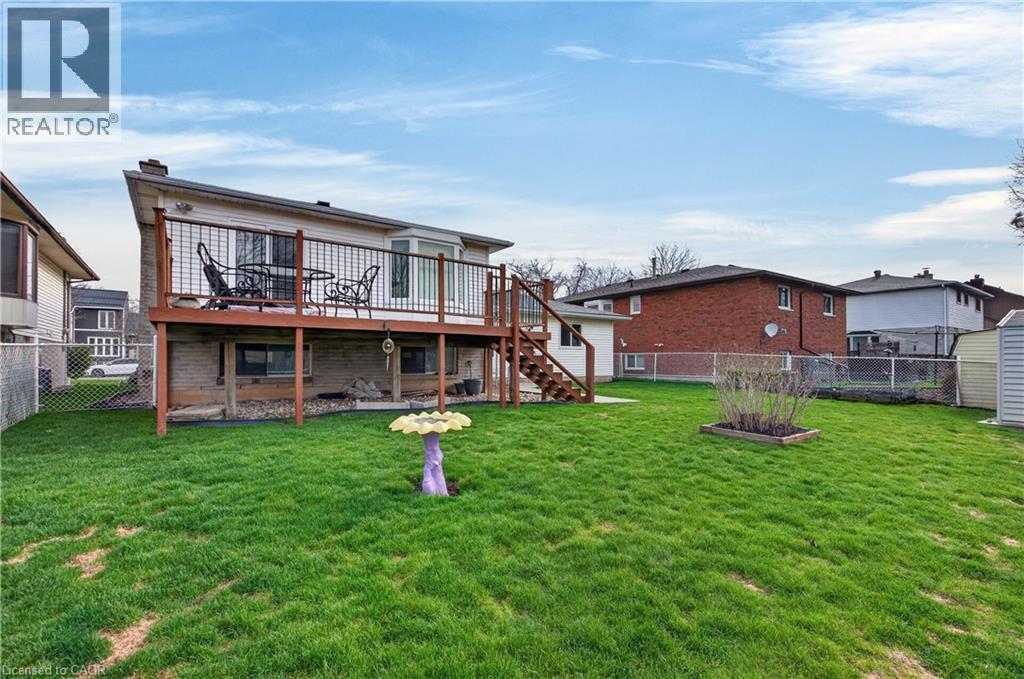 Welcome to this well-maintained 2+1 bedroom, 2 bathroom raised ranch, ideally situated on a quiet street in the charming town of Caledonia. Set on a mature 60.04’ x 104.99’ lot backing onto green space, this property offers a rare blend of privacy, functionality, and lifestyle appeal. The home features surfaced parking for 4+ vehicles along with a bonus double car garage with convenient inside entry. A large covered front porch leads into a breezeway and welcoming front door with a sidelight window, filling the spacious foyer with natural light. Just a few steps up, the main level opens into a bright, open-concept layout designed for everyday living and entertaining. Enjoy a spacious living room with a beautiful bay window, a dedicated dining area with sliding doors to an oversized rear deck, and an eat-in kitchen complete with updated countertops, stainless steel appliances, and pot lighting. The primary bedroom offers an oversized closet, complemented by an additional generously sized bedroom and a 4-piece bathroom with a skylight. The fully finished lower level adds exceptional versatility, featuring a large recreation room with gas fireplace, retro bar area, a spacious third bedroom with ample storage, and a 3-piece bathroom with a walk-in glass shower. Laundry facilities and additional storage complete the space. Step outside to a large, private backyard with a storage shed - perfect for relaxing or entertaining. Noteworthy updates include kitchen appliances (2016), many windows and the rear sliding door (2018), roof shingles (2019), and laminate flooring (2020). Located on sought-after MacCrae Drive, residents enjoy a peaceful, family-friendly setting with easy access to parks, schools, and the Grand River. Caledonia offers a strong sense of community while remaining just a short drive to Hamilton, providing convenient access to urban amenities, major routes, and commuter options. (id:4555)
