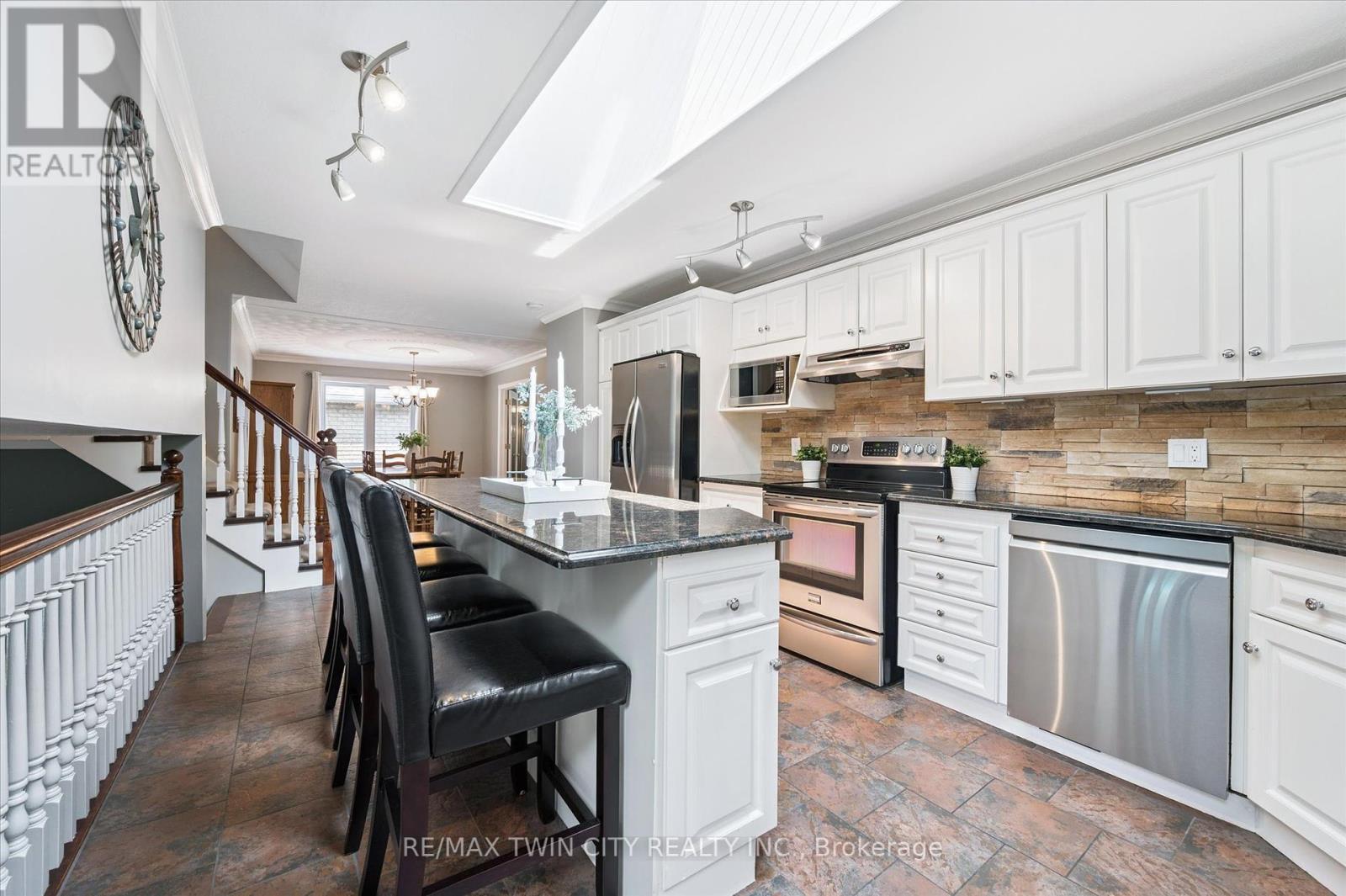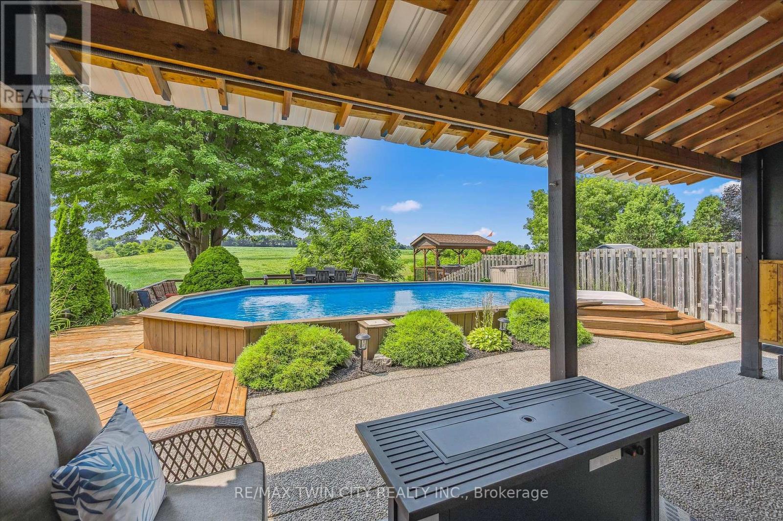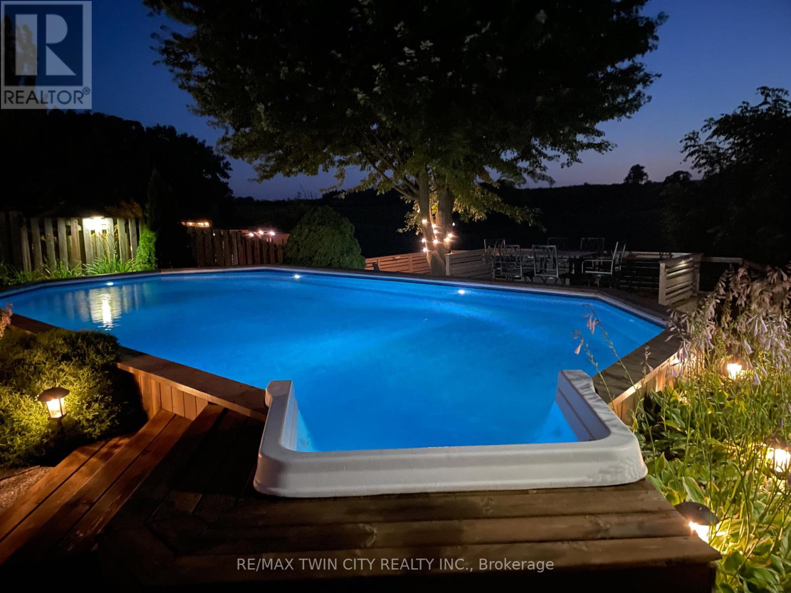 A Picturesque, stunning property with no rear neighbors and 2995 sq feet of finished living space. Welcome to 114 Delavan Dr in the West Galt portion of Cambridge. You are welcomed by an interlocking driveway, double garage and a lovely covered front porch. Inside the home presents a good sized living and dining room with hardwood flooring, a bright white kitchen with stainless steel appliances, large island and access to side deck, perfect for a BBQ. The upper portion of the home features three bedrooms and a 4 piece bathroom with updated countertop. The primary offers a walk in closet and 4 piece ensuite bath, again with new countertops. The lowest level is complete with an addition 4th bedroom, 4 piece cheater ensuite bathroom complete with new vanity, massive living room with high ceilings and a bonus room that can be used as a gym, office, games room and more. The most attractive feature in this area of the home is the walk out to the extraordinary backyard oasis. Here you have a covered porch, on ground 15 x 29 pool, aggregate concrete, and multi-level deck providing ample entertaining space. Enjoy the sunsets over the trees while hosting family and friends on a warm summers night, or cool fall evening. This beautiful family home in a highly desirable location awaits its next owner. Other updates in the home include Furnace & Heat Pump (2023), Insulated Garage Doors (2022), Bathroom Countertops (2025), Front Porch Railings (2020), Pool Pump (2017) and Pool Heater (2016). Book your showing today and don't miss out on this great opportunity. (id:4555)