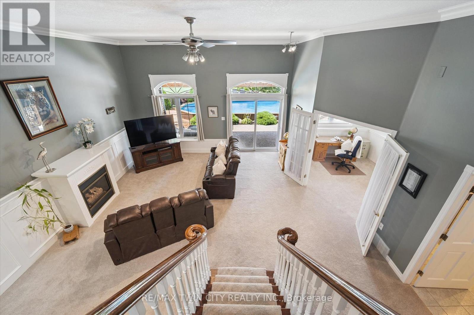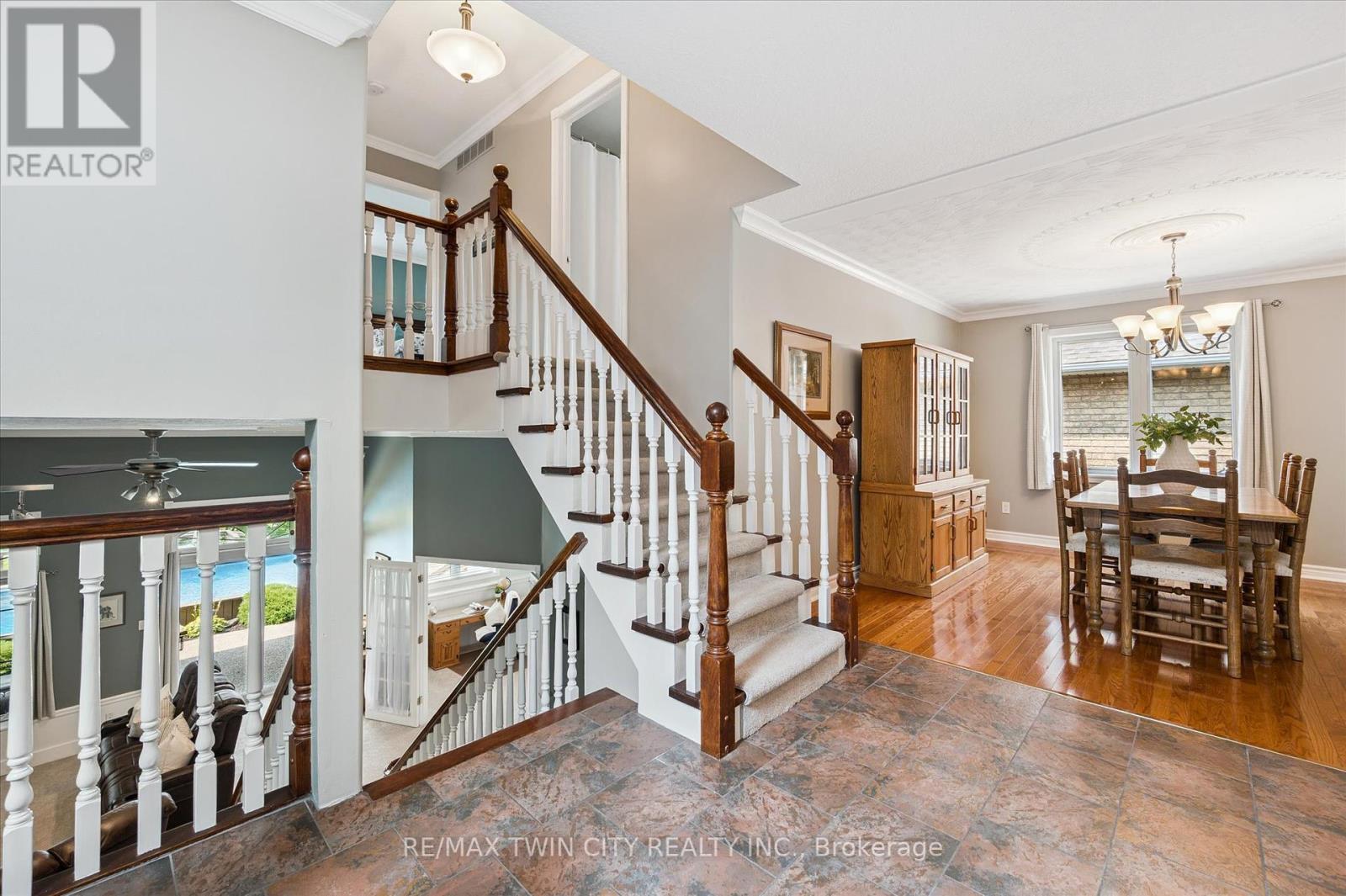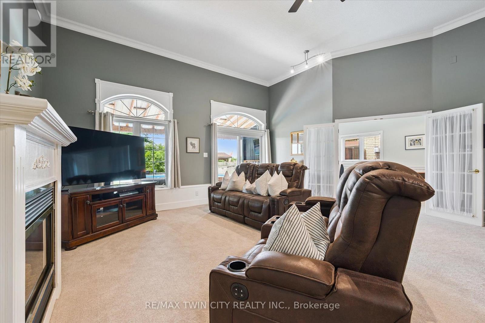 A Picturesque, stunning property with no rear neighbors and 2995 sq feet of finished living space. Welcome to 114 Delavan Dr in the West Galt portion of Cambridge. You are welcomed by an interlocking driveway, double garage and a lovely covered front porch. Inside the home presents a good sized living and dining room with hardwood flooring, a bright white kitchen with stainless steel appliances, large island and access to side deck, perfect for a BBQ. The upper portion of the home features three bedrooms and a 4 piece bathroom with updated countertop. The primary offers a walk in closet and 4 piece ensuite bath, again with new countertops. The lowest level is complete with an addition 4th bedroom, 4 piece cheater ensuite bathroom complete with new vanity, massive living room with high ceilings and a bonus room that can be used as a gym, office, games room and more. The most attractive feature in this area of the home is the walk out to the extraordinary backyard oasis. Here you have a covered porch, on ground 15 x 29 pool, aggregate concrete, and multi-level deck providing ample entertaining space. Enjoy the sunsets over the trees while hosting family and friends on a warm summers night, or cool fall evening. This beautiful family home in a highly desirable location awaits its next owner. Other updates in the home include Furnace & Heat Pump (2023), Insulated Garage Doors (2022), Bathroom Countertops (2025), Front Porch Railings (2020), Pool Pump (2017) and Pool Heater (2016). Book your showing today and don't miss out on this great opportunity. (id:4555)