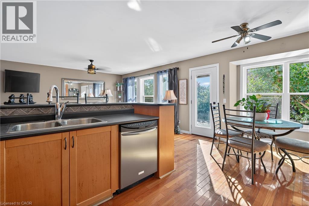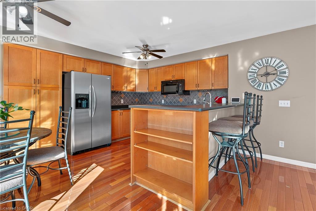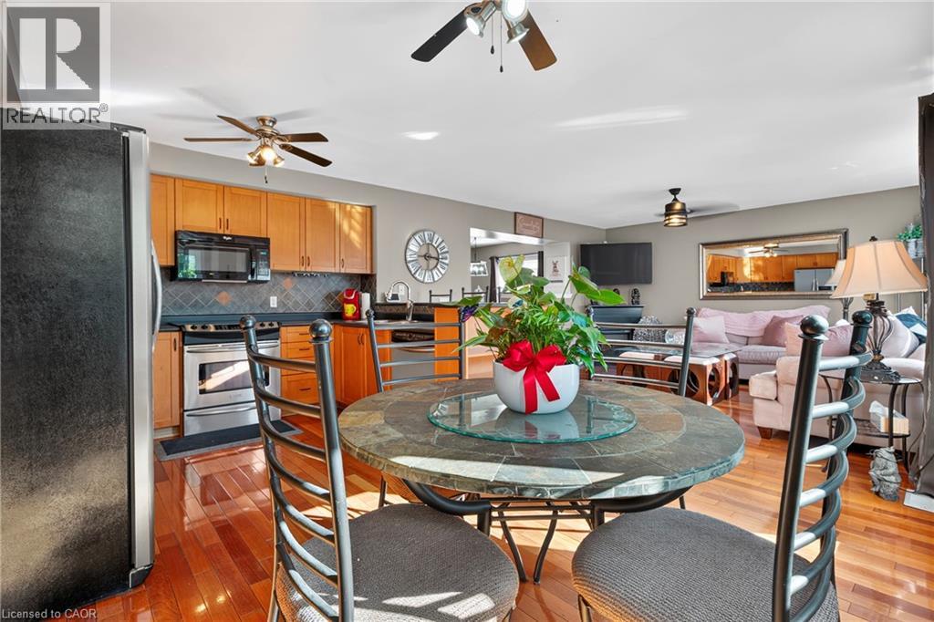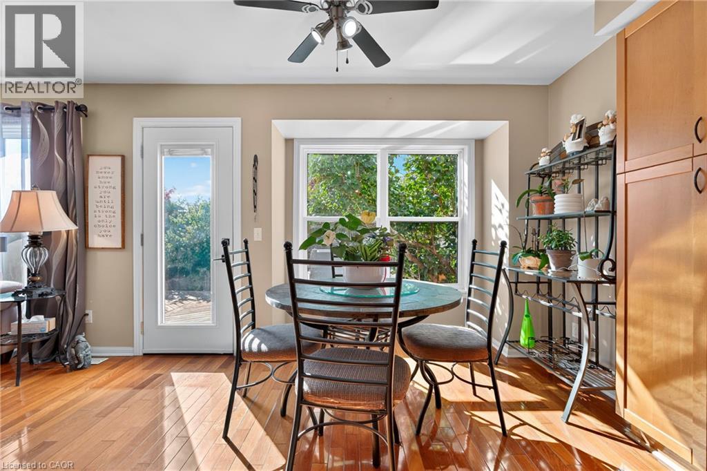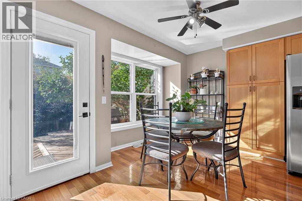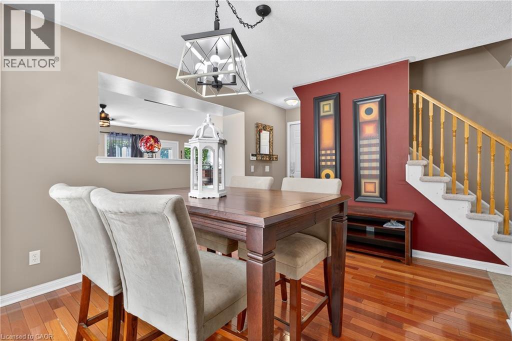 The perfect layout for family life and entertaining! This beautiful Cambridge home features a spacious eat-in kitchen that flows seamlessly into the family room. Both spaces offer direct access to a large, private deck and backyard — making indoor/outdoor living a breeze. Picture hosting BBQs, watching the kids play, and relaxing in your own private yard. Plus a separate formal dining room. From the moment you walk in, you’ll notice the thoughtful layout — a large front closet for shoes and coats, a convenient 2-piece bathroom, and inside entry from the single-car garage. Upstairs, the primary bedroom is your retreat, complete with a walk-in closet, soaker tub, and separate shower. The two additional bedrooms share a connecting bathroom, and the second-floor laundry makes life that much easier. Enjoy peace of mind with a new roof (2020), upgraded A/C (2022), patio door and rear windows (2022), plus new vinyl and aluminum board-and-batten detailing on the back northwest corner (2022). Located just minutes from Hwy 401 & Townline, this home is ideal for commuters and close to schools, shopping, golf courses, parks, arenas, grocery stores, and the mall — everything you need right at your fingertips. Don’t miss this one — it truly has it all! (id:4555)