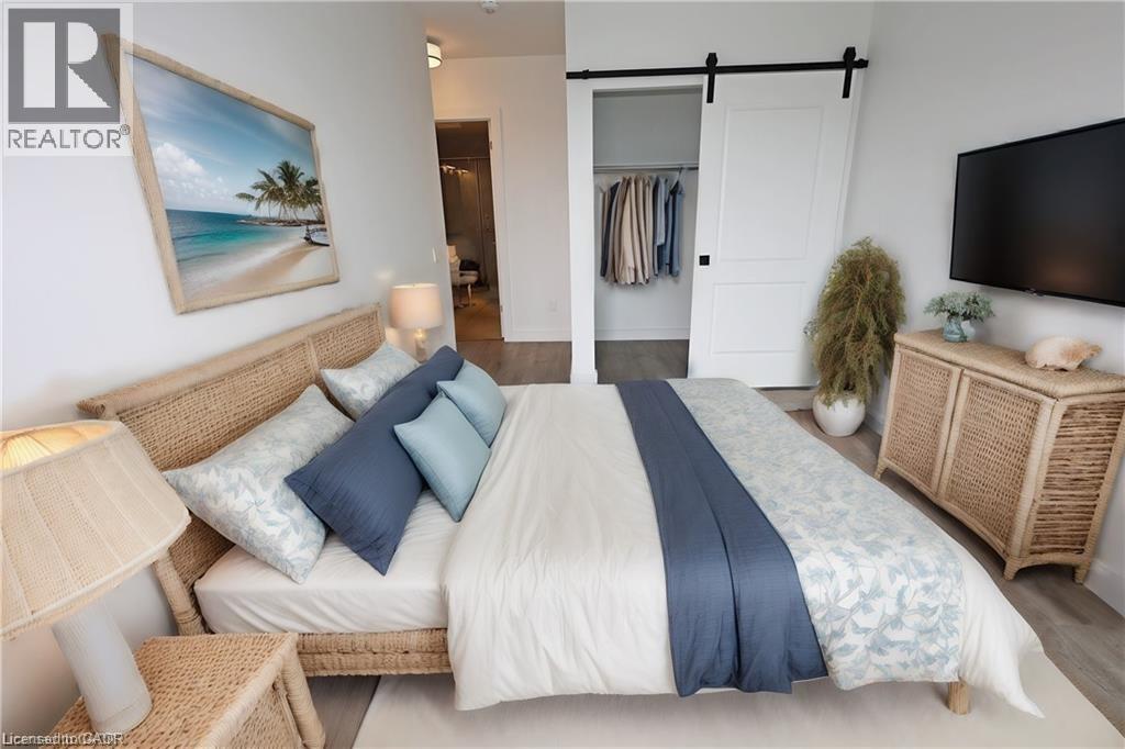 Looking for a Lock the door and go lifestyle? Then get ready to call the Gaslight District home! Unbelievable price on this nearly-new 2-bedroom, 2-bath condo. The open-concept kitchen comes with five sleek Whirlpool appliances and a handy island that’s perfect for casual meals or entertaining. The 9' ceilings and lots of windows give this unit a bright and airy feel. Step out onto the glass balcony — accessible from both the living room and the primary bedroom — and soak in those amazing views. You’ll also have underground parking and a storage locker for the golf clubs and the Christmas tree. You’ll love the peaceful views and walking trails of the nearby Grand River. The Gaslight Condos offer incredible amenities too: a fitness centre, games room, library/study, and a gorgeous outdoor terrace with pergolas, fire pits, and BBQs overlooking Gaslight Square. All this and an easy walk to the great shops in Downtown Galt! (id:4555)
