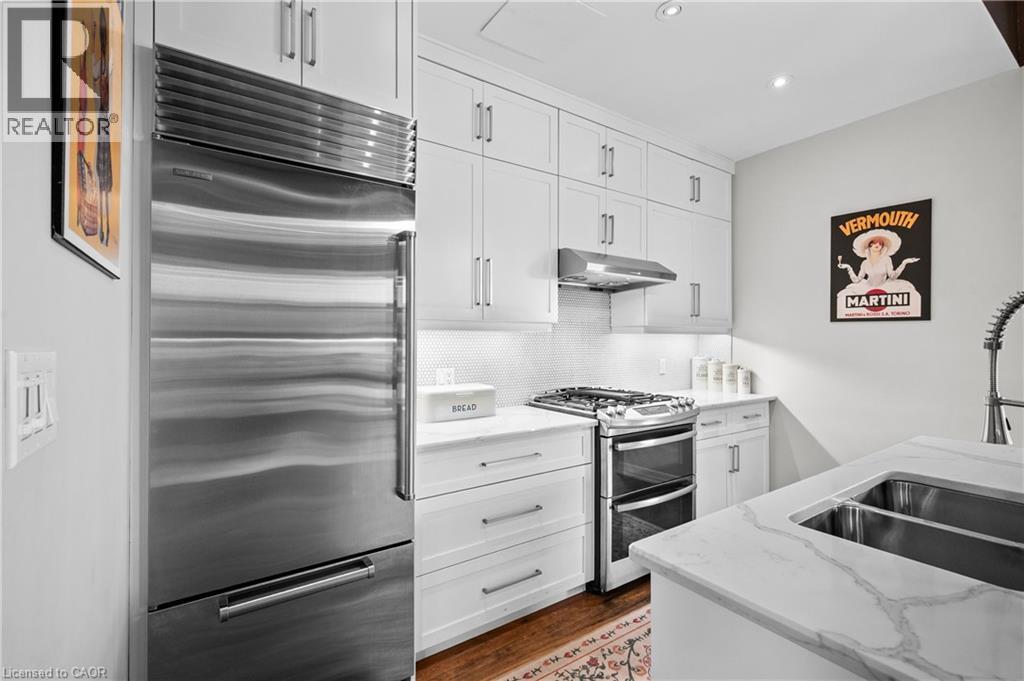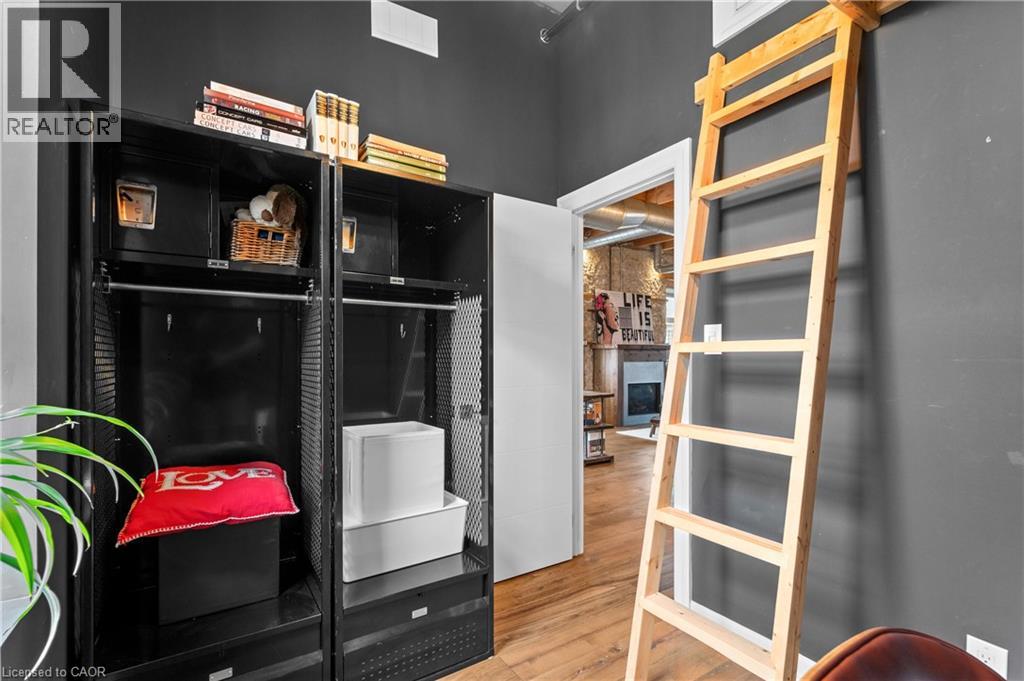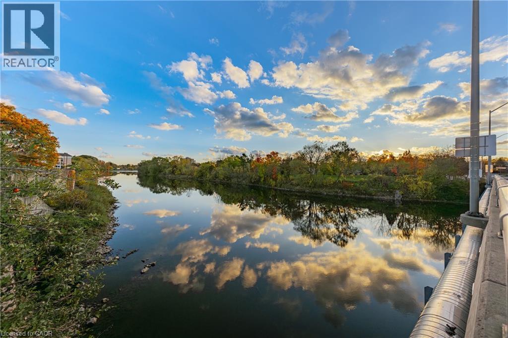 This Stunning One of a Kind Corner Penthouse Loft is one of the larger Lofts in the Waterloo area and is located at the edge of the Grand River & offers Soaring 2 Story Ceilings with Oversized Windows That Flood The Home With Natural Sunlight. Original Wood Beams ,Gorgeous Stone Walls Give A New York City Vibe To this fabulous space, wood floors on main level with in floor heating, upgraded Kitchen offers Quartz Countertops, ss appliances, tile backsplash under vallance lighting & Seating For 4 At The Breakfast Bar, dining room offers custom cabinets with pantry quartz countertop & b/I wine fridge, cozy gas fireplace in Living room, Upstairs You Find A Large 2-Room Primary Suite With A Sitting Area, vaulted ceiling & custom Closet, 3 piece ensuite bath with quartz counters & large glass shower, both upper level bathrooms have heated towel racks, Spacious 2nd Bedroom, Den Area That Works Great As A Home Office. Explore downtown's delights from artisanal coffee shops to chic boutiques, restaurants shopping & cultural experiences at Gaslight District. Live music events are just steps away. Surrounded by scenic walking trails breathtaking views of the Grand River, this home invites you to enjoy luxury living at its finest & more! (id:4555)