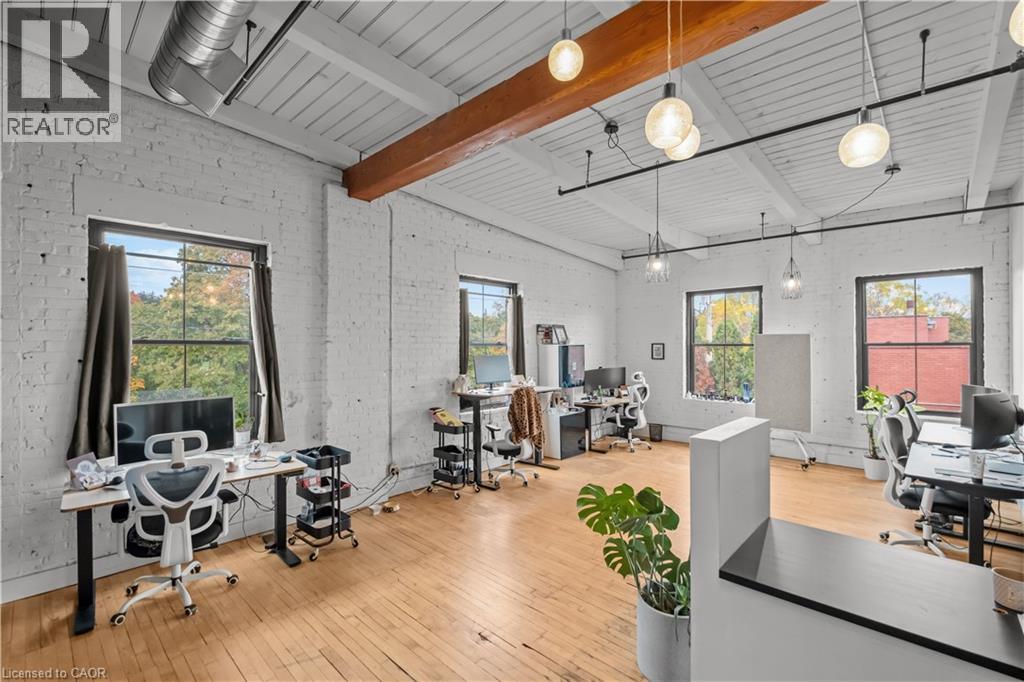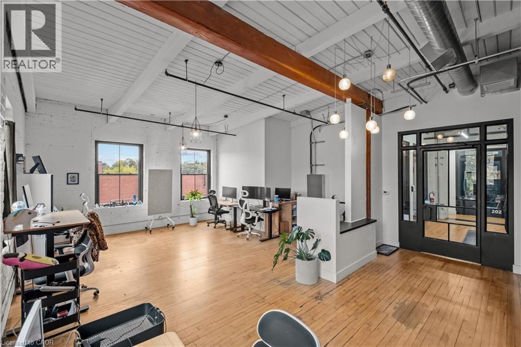 Bright, open loft office located on the Grand River, across from the Cambridge Mill. Features ample natural light, easy access to walking trails and ample parking. Just 10 minutes from Highway 401 and steps from downtown amenities. Suite comes with access to a shared kitchen. Soon to open Willibald Pizza is located on the ground floor; ideal for lunch and treating your staff or clients. Join the growing community of Downtown Galt. (id:4555)