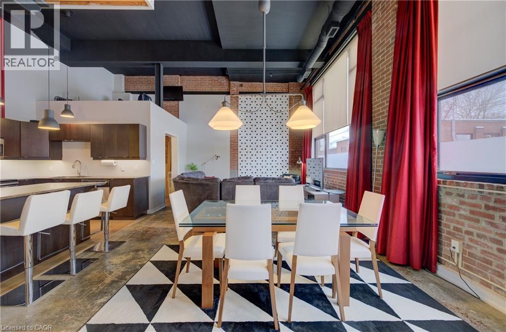 MODERN LOFT LIVING! Welcome to this stunning loft, where soaring 16ft ceilings and expansive windows create a bright, airy ambiance. Featuring polished concrete floors, exposed brick, ducts, pipes, and iron columns, this space seamlessly blends original character with modern sophistication. Set within a 1910 fabric weaving factory stylishly converted into loft-style residences, Unit #112 offers over 1,250 sqft of thoughtfully designed living space. This one-bedroom plus den unit includes two full bathrooms, with the upper primary suite featuring a private ensuite. The kitchen is a chef’s dream, boasting an eat-in island, granite countertops, under-cabinet lighting, custom cabinetry, and stainless steel appliances. Above the den, a unique loft space—currently used as a gym—offers endless possibilities, from a cozy reading nook to a creative retreat. Additional conveniences include in-suite laundry, a private front door entry, one outdoor parking space, and a storage unit. Building amenities include a gym and party room. Perfectly located just steps from downtown, enjoy locally roasted coffee, boutique shops, the library, and a leisurely walk across the Grand River Pedestrian Bridge. You’ll also find Gaslight and Spruce Park mere minutes away. Experience the perfect blend of history, charm, and modern living—this loft is truly one of a kind! (id:4555)