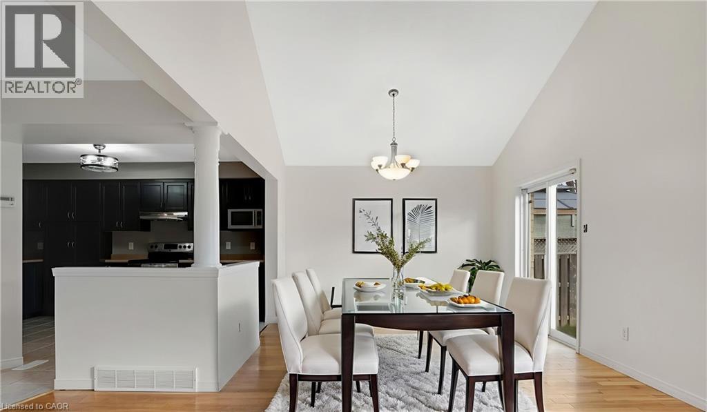A BEAUTIFULLY FINISHED 3+1 BEDROOM HOME WITH ROOM TO GROW. Tucked into a family-friendly pocket of Cambridge, this meticulously cared-for home unfolds with over 1,900 sq. ft. of finished living space. Step inside and be greeted by vaulted ceilings that stretch above the living and dining areas, creating a sense of airiness and calm. Sunlight drifts across the hardwood floors, guiding you toward the heart of the home — a spacious kitchen featuring ample cabinetry, modern lighting, and a functional layout perfect for busy mornings or lingering weekend breakfasts. The open dining area flows seamlessly to the large, fully fenced backyard through sliding glass doors. It’s an ideal setup for gatherings, playtime, or quiet evenings under the sky. Upstairs, 3 beautifully appointed bedrooms await, including a serene primary suite framed by an elegant arched window. Neutral tones and thoughtful finishes make each space feel instantly welcoming. A stylish full bathroom with double sinks adds a practical touch for families. The lower level extends the home’s versatility with a fully finished basement, complete with a spacious rec room, 4th bedroom, and a 3pc bathroom — perfect for guests, teens, or an in-law setup. With 2.5 bathrooms in total, tasteful updates throughout, and a bright, open layout, this home embodies comfort, style, and everyday functionality. A wonderful opportunity for families, first-time buyers, or anyone seeking a move-in-ready home. Located minutes to all amenities, schools, parks, & shopping. (id:4555)