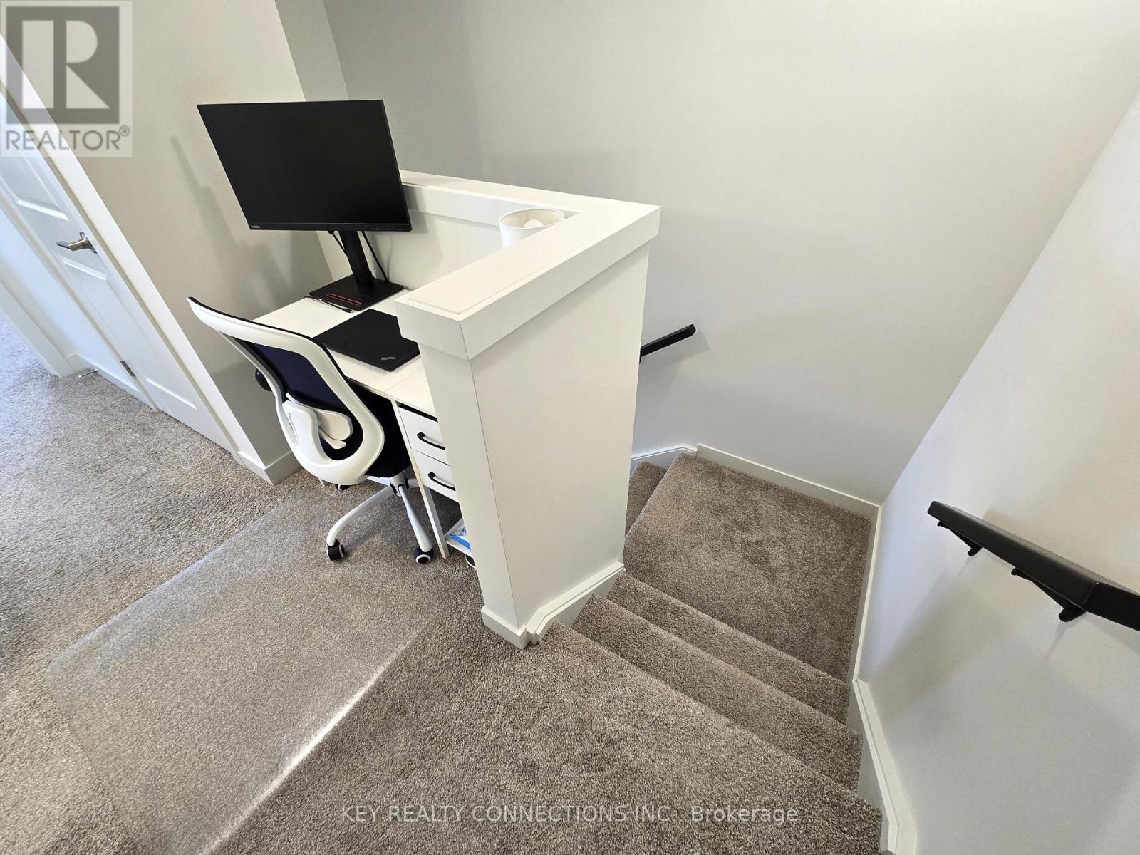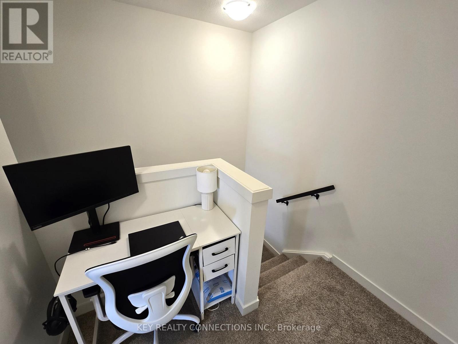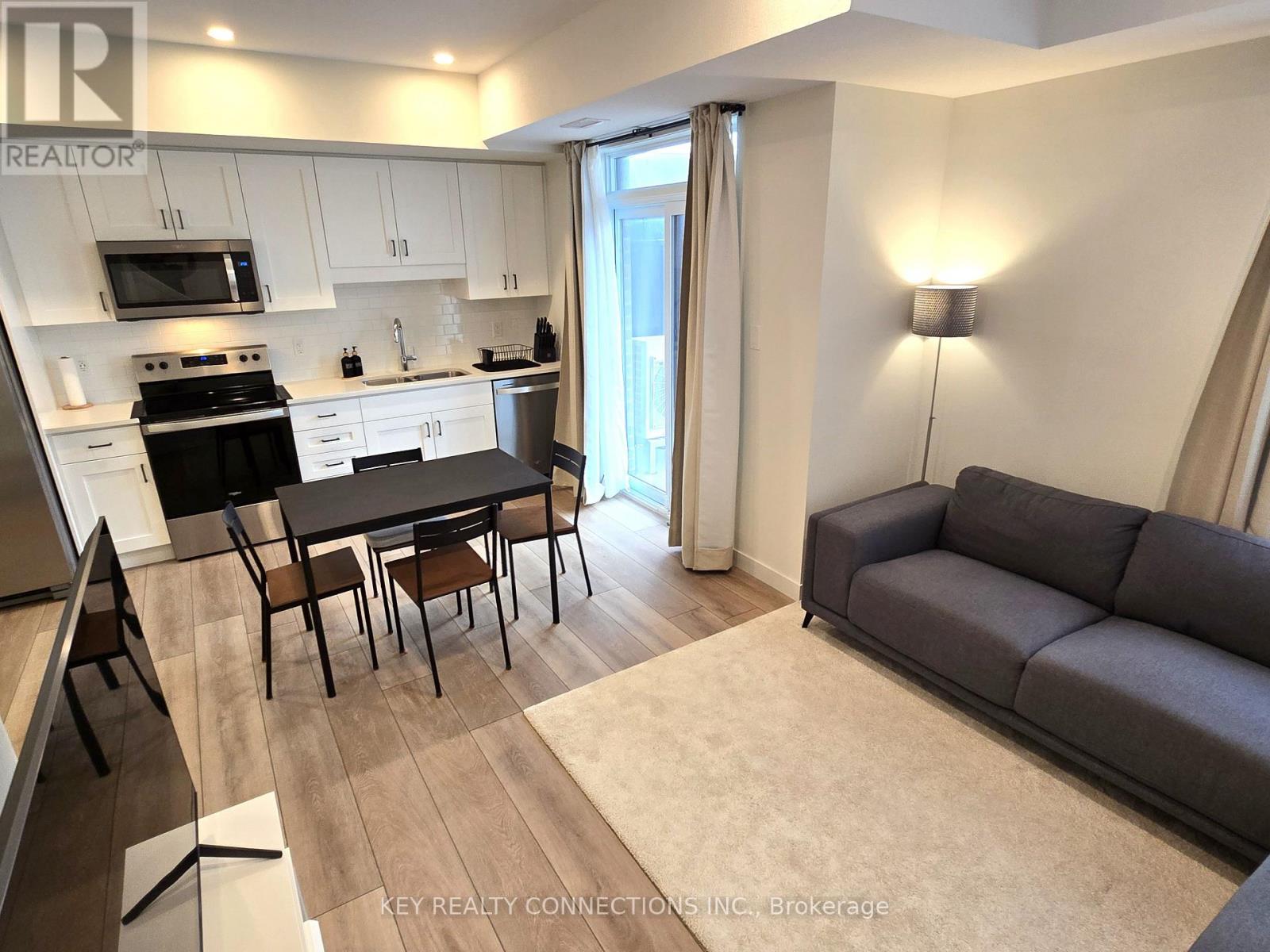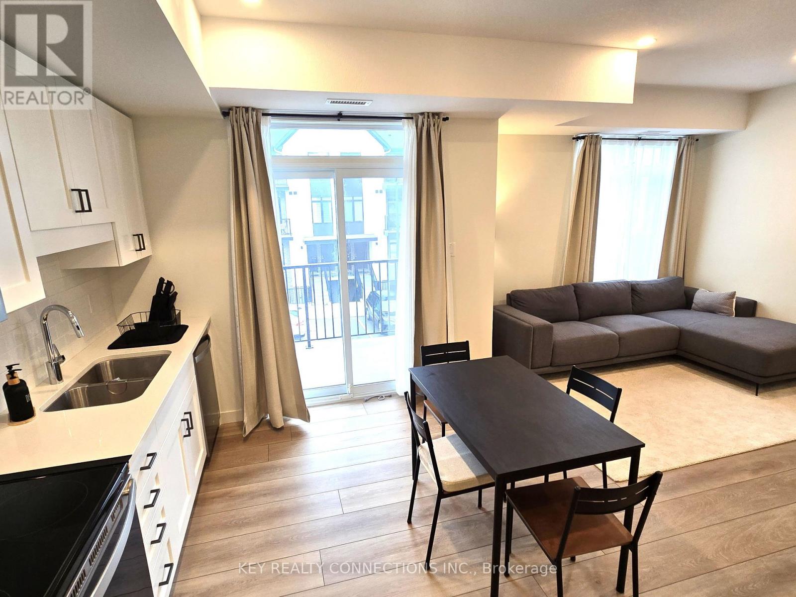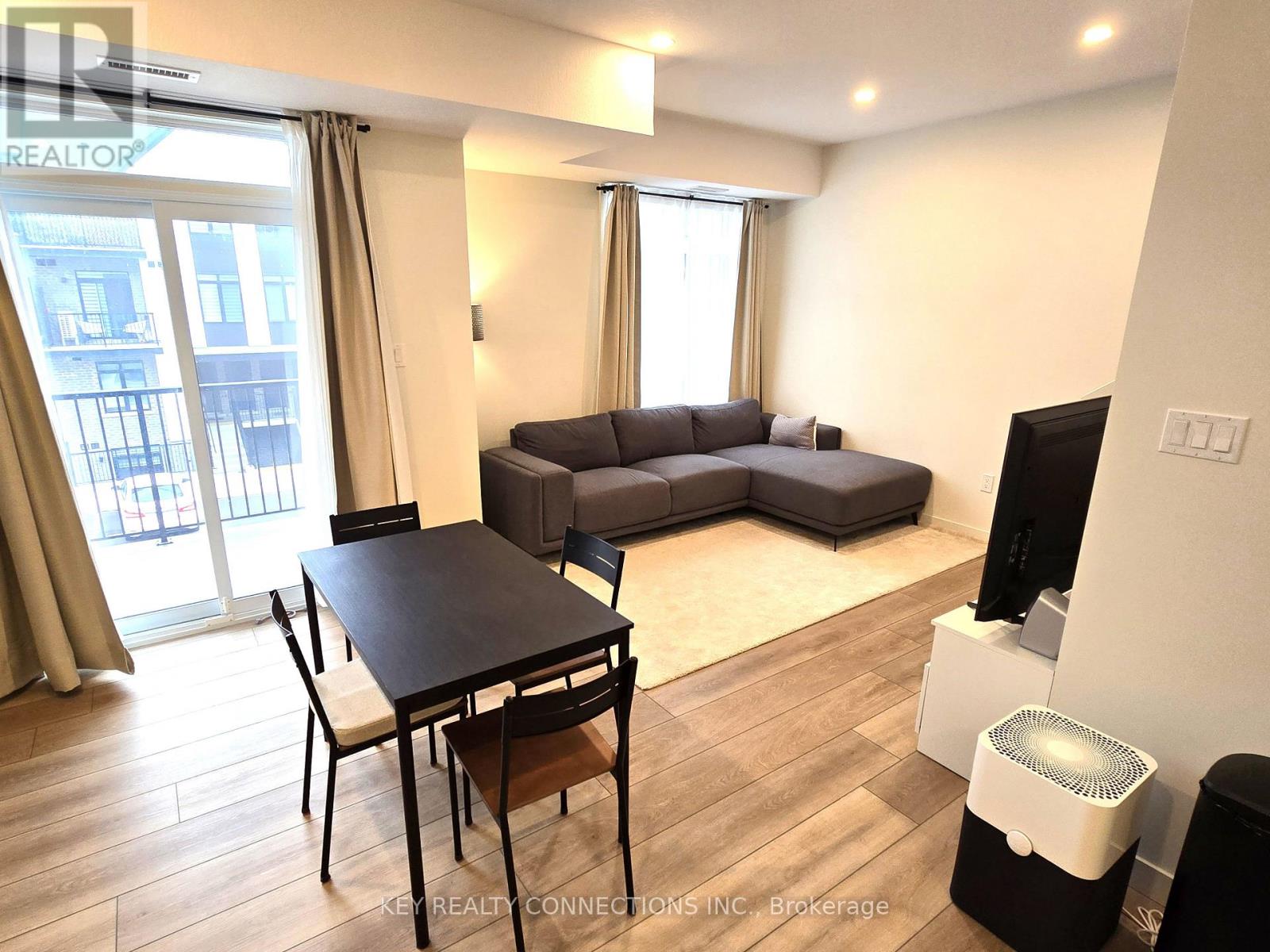 405 Myers Road, Cambridge*Unit 42*Stunning 2 bedroom stacked townhouse for lease*The Birches by Granite Homes*Upper interior unit*1025 sf*Main floor has 9ft ceilings, Luxury vinyl plank flooring in foyer, kitchen, bathrooms & living/dining room*Lots of pot lights*Double coat closet, utility room W/High efficiency 2-way electric heat pump, Energy Recovery Ventilator, High efficiency electric water heater, water softener white full sized stacked washer/dryer, & some storage room*O/C kitchen offers polished quartz counters W/Double under-mount stainless steel sink, tiled subway style back splash, white kitchen cupboards with soft close doors & drawers, extended upper cabinets W/Extra deep cabinetry build-out over the fridge, SS kitchen appliances including fridge, electric stove, B/I dishwasher & over-the-range microwave, USB receptacle, and a W/O to private balcony*The open concept living room overlooks the kitchen offering TV ready wall including Cable/Cat 5E connection, conduit, two receptacles and an Ecobee thermostat*Upper floor offer 8 foot ceilings, computer niche,4 pc bath W/Polished cultured marble counter tops, integrated sink, vanity W/Soft close doors and/or drawers, a well appointed 2nd bedroom currently used as a den, a spacious Primary bedroom has a 2nd balcony, 3 pc ensuite bathroom W/Rain shower head, vanity W/Soft close doors drawers, double closet, black out curtains, 2 USB receptacles*Extras include: All existing light fixtures, window coverings, stainless steel [Fridge, stove, B/I microwave, B/I DW], white stacked washer & dryer*1 surface parking spot*Outdoor amenities include community pergola with BBQ*Conveniently located in East Galt neighborhood of Cambridge, close to everyday amenities, schools, public transit & quick access to the 401*Hike or bike the local trails & parks for year-round outdoor activities. There is also the weekly Cambridge Farmer's Market*2 balconies*Charging station for electric vehicles*Option to lease furnished available* (id:4555)