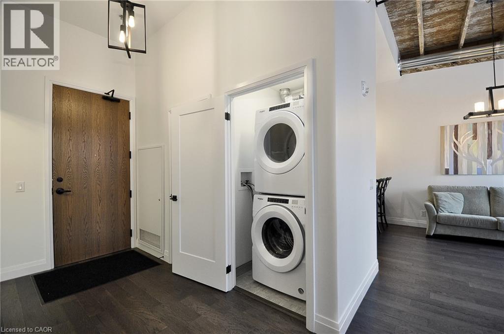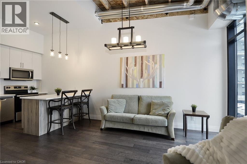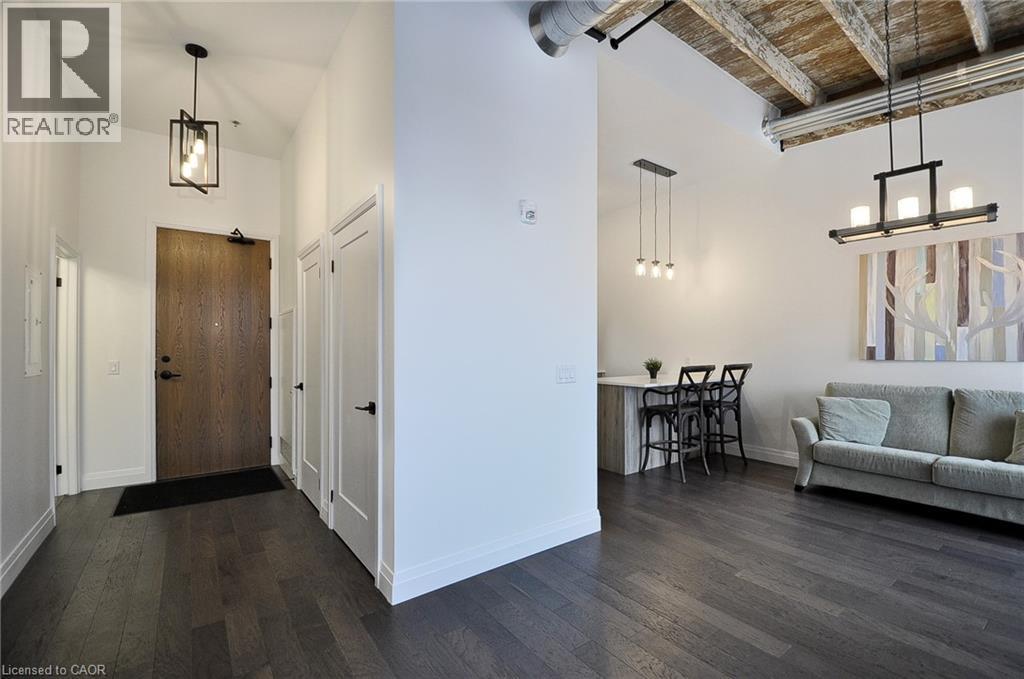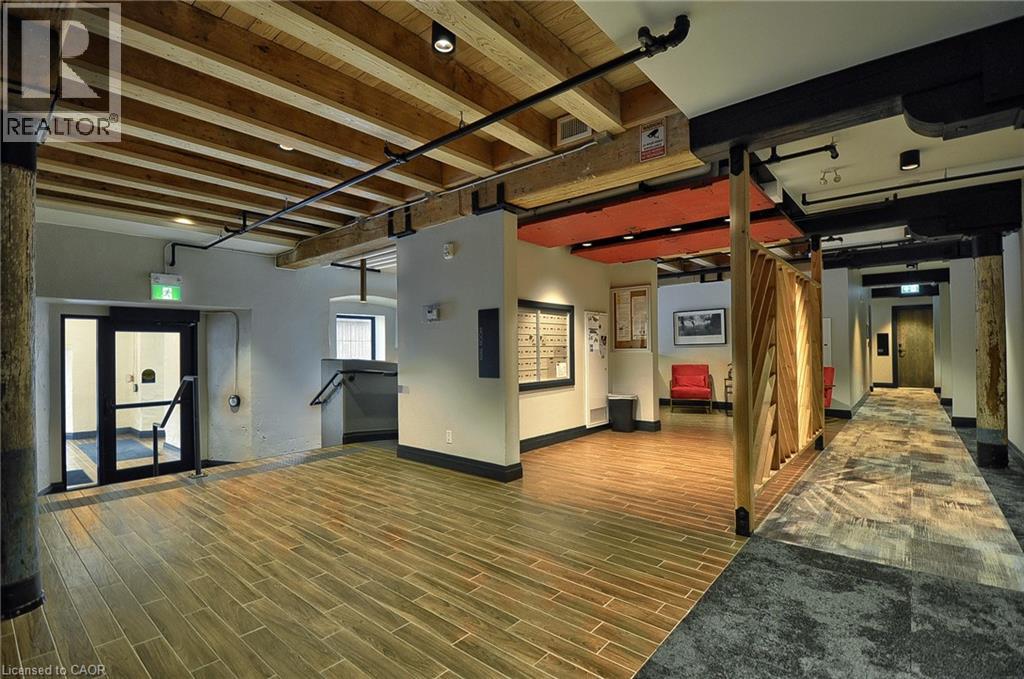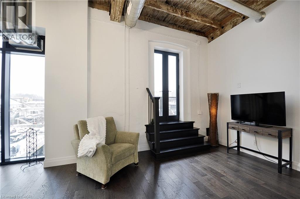Experience boutique living at Riverbank Lofts, a landmark conversion in the heart of historic downtown Hespeler. This iconic riverside building blends heritage charm with modern sophistication along the banks of the Speed River. This bright one-bedroom condo features soaring ceilings, oversized windows, and exposed wood beams that highlight the building’s character. The open-concept living space flows into a contemporary kitchen with quartz countertops and a breakfast bar, perfect for entertaining. Step out onto your private balcony to unwind. The spacious bedroom includes a large walk-in closet, in-suite laundry, and high ceilings throughout. Includes one parking space and access to premium amenities such as three resident lounges, a fitness centre, bike storage, and a dog wash station. Just steps to cafés, shops, parks, and scenic river trails, this is boutique urban living at its finest. (id:4555)