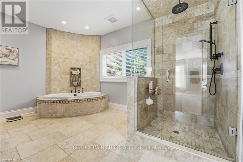 Imagine driving down one of the regions most scenic winding roads to your custom built dream home! This is where a prime location meets executive living. Built in 2016, this custom 5 bedroom and 5 bathroom home delivers 5873 square feet of finished living space, and sits prominently on nearly an acre of manicured lawn and gardens. Privacy is ensured by the fully fenced yard which is further surrounded by a tall, mature woodland. Step inside the solid wood double doors to your grand foyer and staircase. The main floor, with 10' ceilings and solid wood trim, offers a living room and family room, formal dining room, and a chef's kitchen complete with 5 appliances and granite counters. The large dinette is accented by oversized windows and patio doors that open to a quiet backyard oasis featuring a heated inground pool, poured concrete patio and a playground. The second level boasts a sunken master bedroom with oversized walk in closet and luxury ensuite bathroom. Five large bedrooms total, two 4-pce bathrooms and a laundry room completes this floor to provide spacious and private quarters for the whole family. The finished rec-room boasts a 3-piece bathroom, a rough in for a second kitchen or bar. Parking for family and guests is never an issue with the heated and insulated massive double garage and oversized triple wide driveway, with parking for 10 cars and extra room for your RV. Walking distance to the scenic trails of Shade Mills Conservation Area and a 5 minute drive to the 401. It doesn't get better then this! (id:4555)