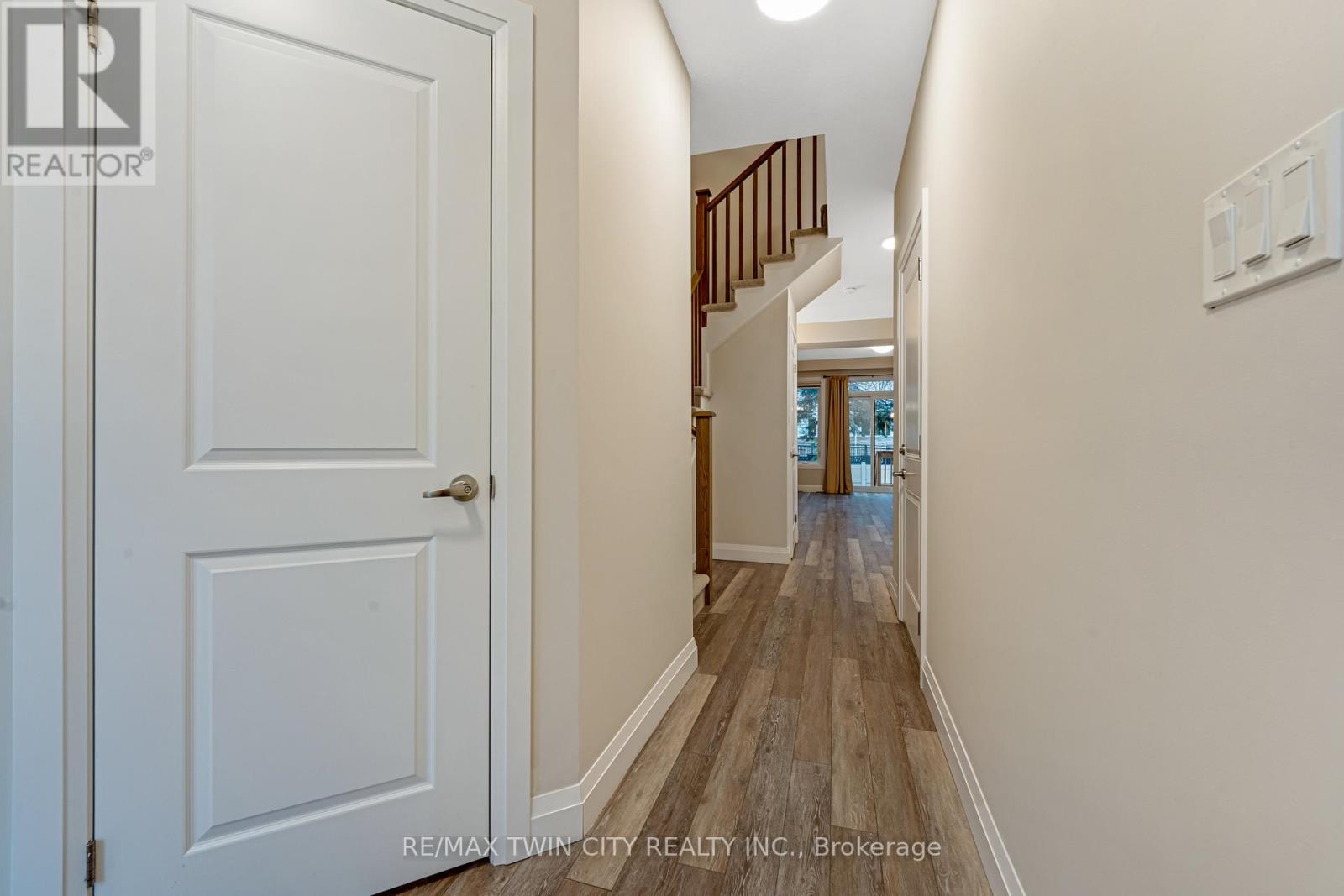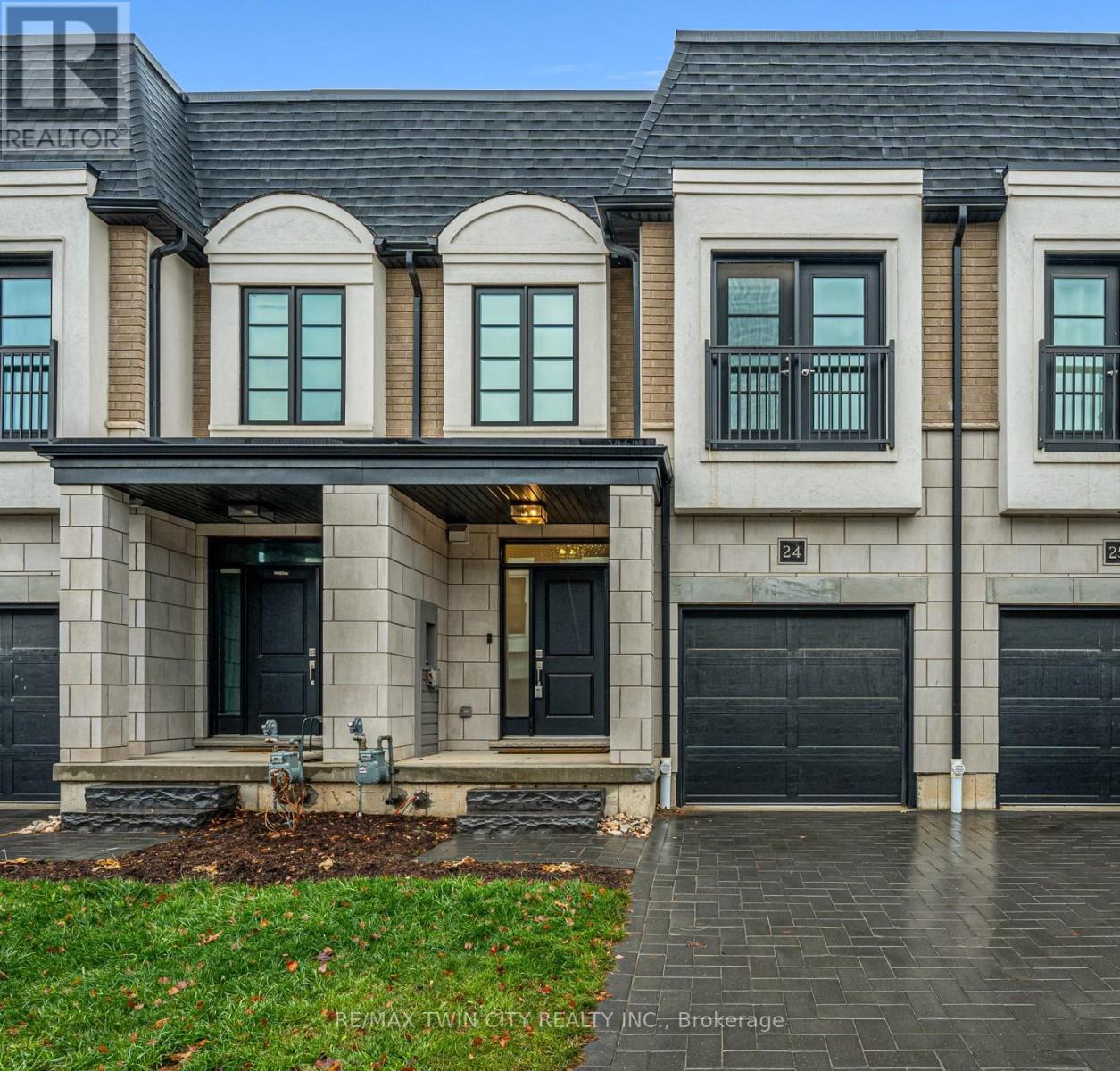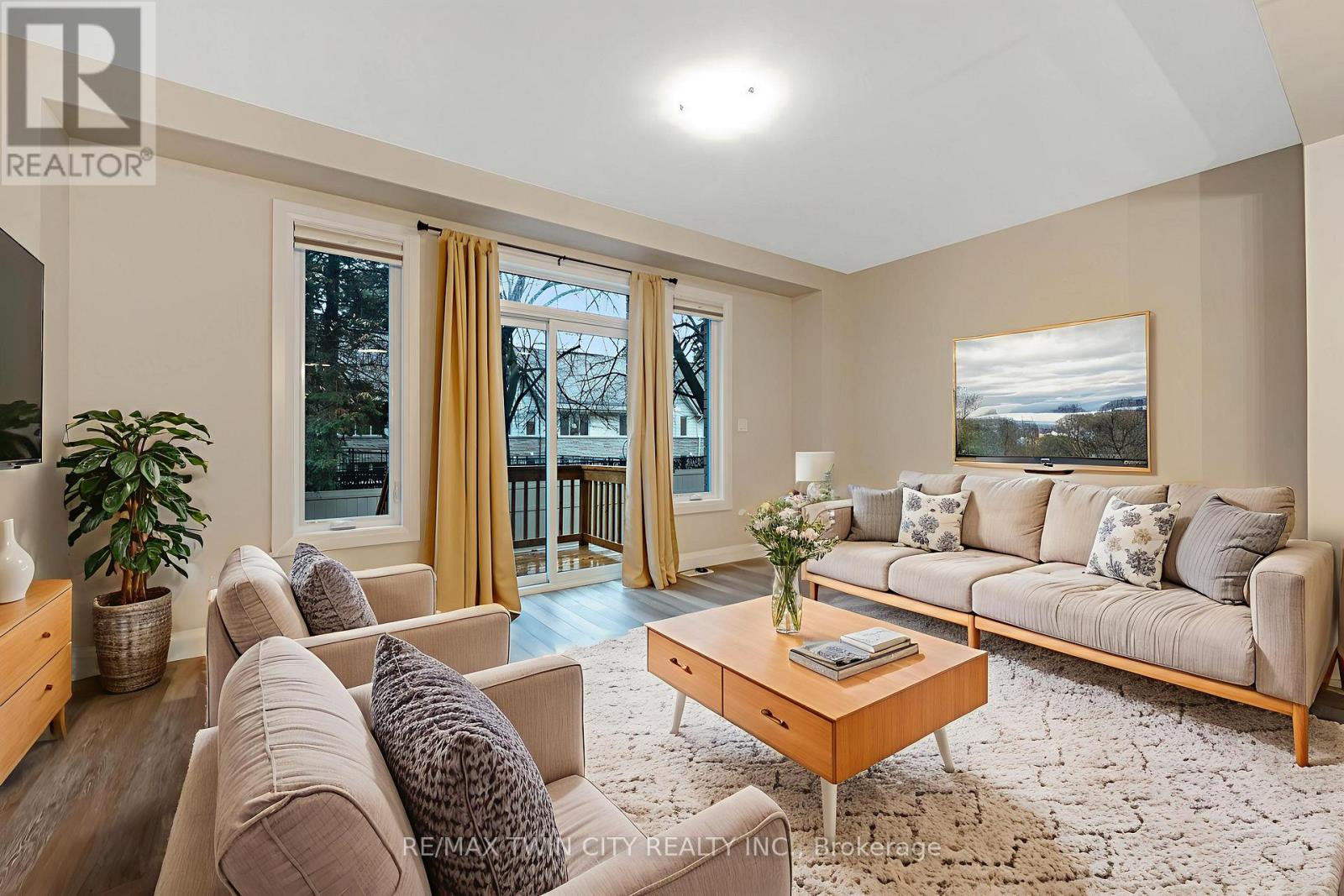 Welcome to Unit 24 at The Vineyard Townhomes, a refined French-inspired community ideally located on Elgin Street North. Designed with timeless architectural details including elegant stonework, arched rooflines, and sleek black accents, this residence offers a rare blend of style, comfort, and privacy. Positioned near mature trees, the home enjoys a peaceful backdrop seldom found in townhome living. Step inside to discover 9-foot ceilings, wide plank flooring, and abundant natural light throughout the main level. The thoughtfully designed open-concept layout creates a seamless connection between living, dining, and kitchen spaces, ideal for both everyday living and entertaining. The kitchen features stone countertops, a generous island with seating, crown moulding on cabinetry, tile backsplash, under-cabinet lighting, and an undermount stainless-steel sink, combining function with modern sophistication. Adjacent dining and living areas are bright and inviting, with large windows and a walkout overlooking the treed outdoor setting. The upper level offers a well-appointed primary suite with room for a king-size bed, a walk-in closet, and a private ensuite complete with a rain shower and pressure-balanced fixtures. Two additional bedrooms provide flexibility for family, guests, or a home office, while second-floor laundry adds everyday convenience. The unfinished basement offers excellent future potential for additional living space, a recreation area, or storage. Built with efficiency and long-term value in mind, features include triple-glazed energy-efficient windows, a 30-year asphalt shingle roof, R-60 attic insulation, ERV system, smart programmable thermostat, insulated garage door, poured concrete porch, fully sodded lot, 100-amp electrical service, gas-fired rental hot water heater, and two exterior water taps. Conveniently located minutes from parks, schools, shopping, transit, and with easy access to Highway 401 and Highway 8. *Virtually staged*. (id:4555)