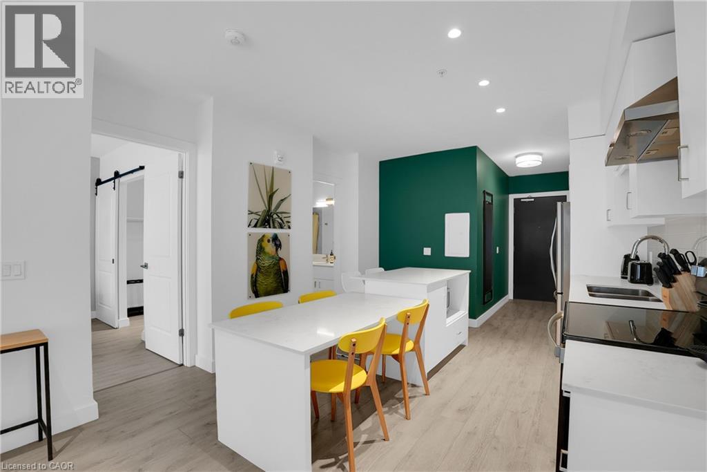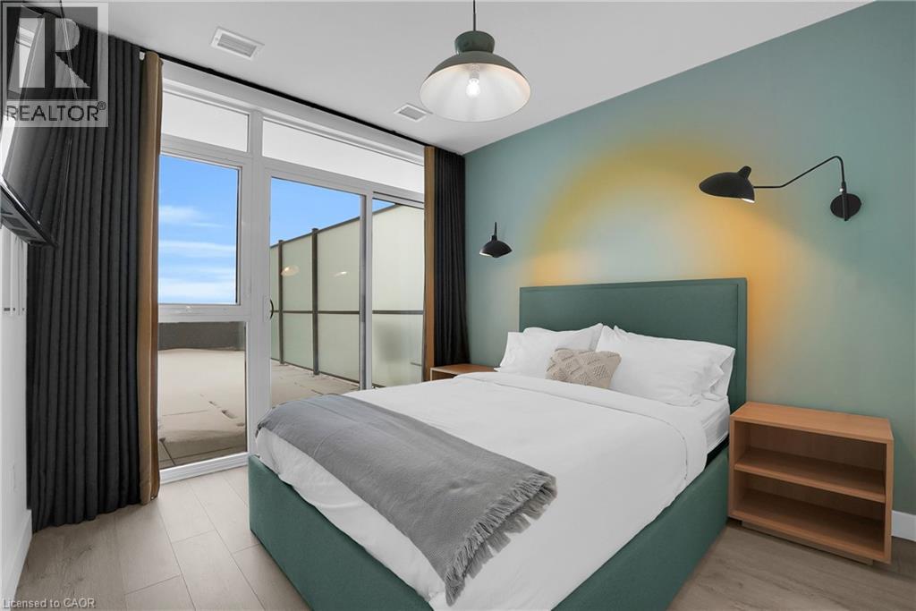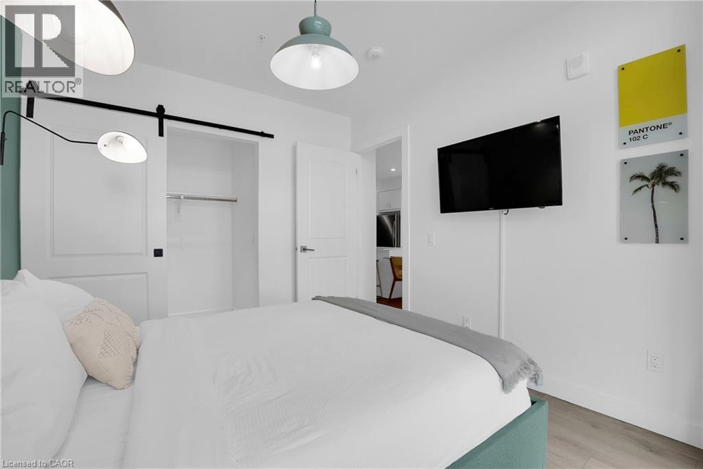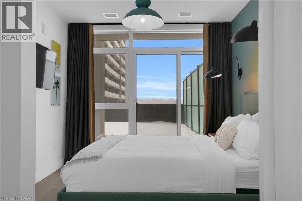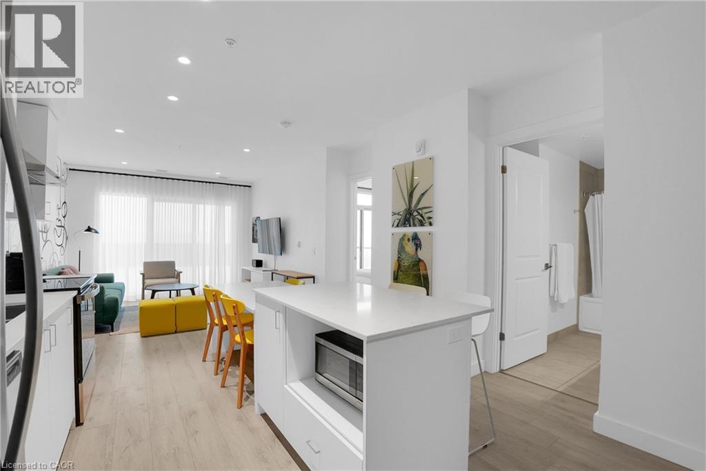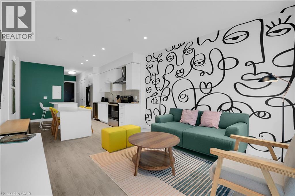 Welcome to 605–15 Glebe Street, a one-bedroom condo set in the heart of Downtown Galt’s Gaslight District. The space features 9-foot ceilings and an open layout that feels bright and easy to settle into. The kitchen offers plenty of cabinet storage, quartz countertops, a tile backsplash, designer hardware, and stainless steel appliances, flowing effortlessly into the living area for comfortable everyday living or hosting friends. Floor-to-ceiling windows bring in abundant natural light and open onto a generous balcony with views of the Grand River, Gaslight Square, and surrounding historic churches. The bedroom includes a walk-in closet and access to a private balcony, creating a quiet place to unwind. In-suite laundry is conveniently located in the bathroom. Residents can enjoy access to a fitness room, games room, and a rooftop terrace with seating areas, BBQs, and a fire pit. One parking space is included. Located in the historic core of Galt, the Gaslight District offers a walkable lifestyle surrounded by restaurants, shops, arts, and year-round community events. (id:4555)