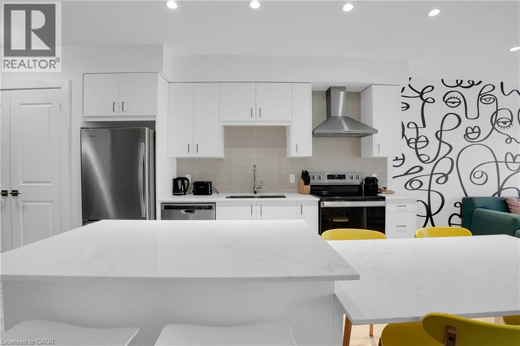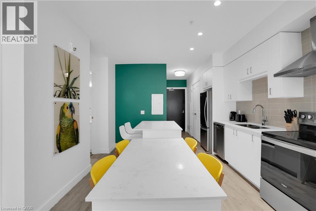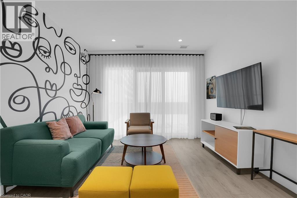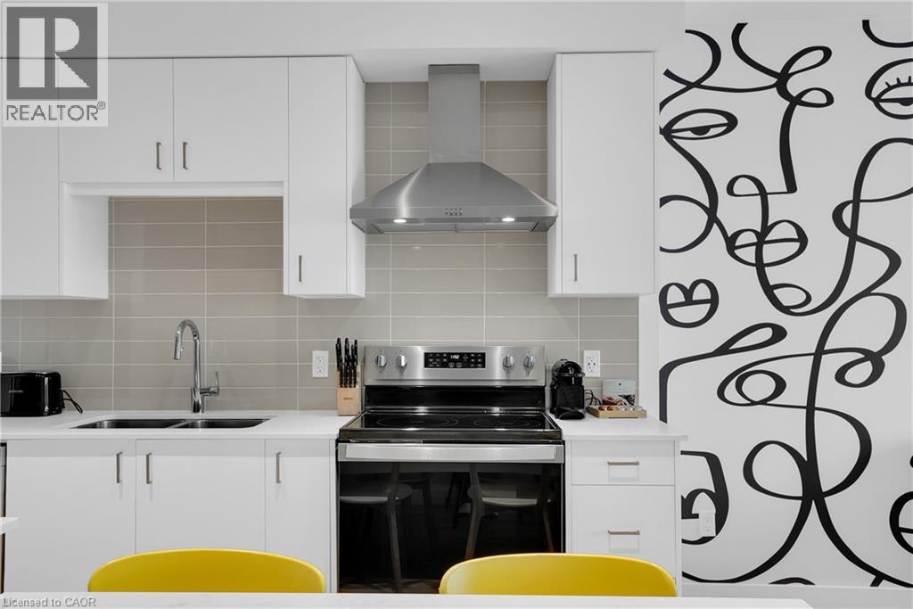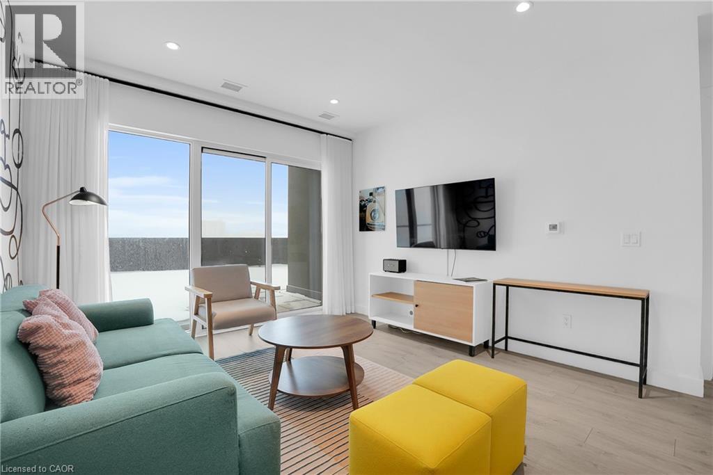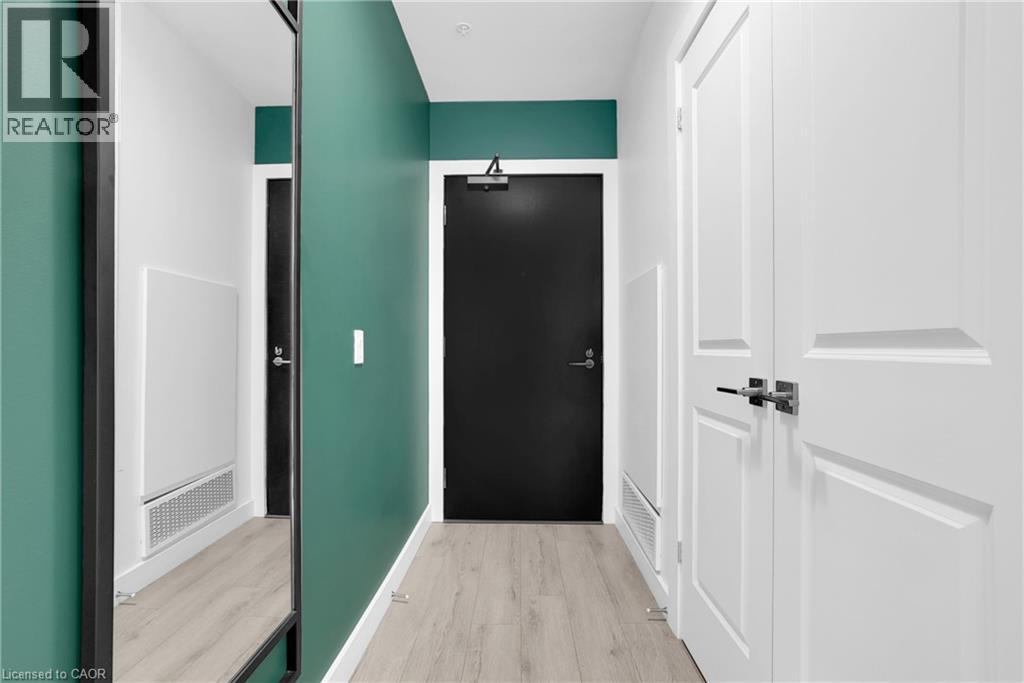Welcome to 605–15 Glebe Street, a one-bedroom condo set in the heart of Downtown Galt’s Gaslight District. The space features 9-foot ceilings and an open layout that feels bright and easy to settle into. The kitchen offers plenty of cabinet storage, quartz countertops, a tile backsplash, designer hardware, and stainless steel appliances, flowing effortlessly into the living area for comfortable everyday living or hosting friends. Floor-to-ceiling windows bring in abundant natural light and open onto a generous balcony with views of the Grand River, Gaslight Square, and surrounding historic churches. The bedroom includes a walk-in closet and access to a private balcony, creating a quiet place to unwind. In-suite laundry is conveniently located in the bathroom. Residents can enjoy access to a fitness room, games room, and a rooftop terrace with seating areas, BBQs, and a fire pit. One parking space is included. Located in the historic core of Galt, the Gaslight District offers a walkable lifestyle surrounded by restaurants, shops, arts, and year-round community events. (id:4555)