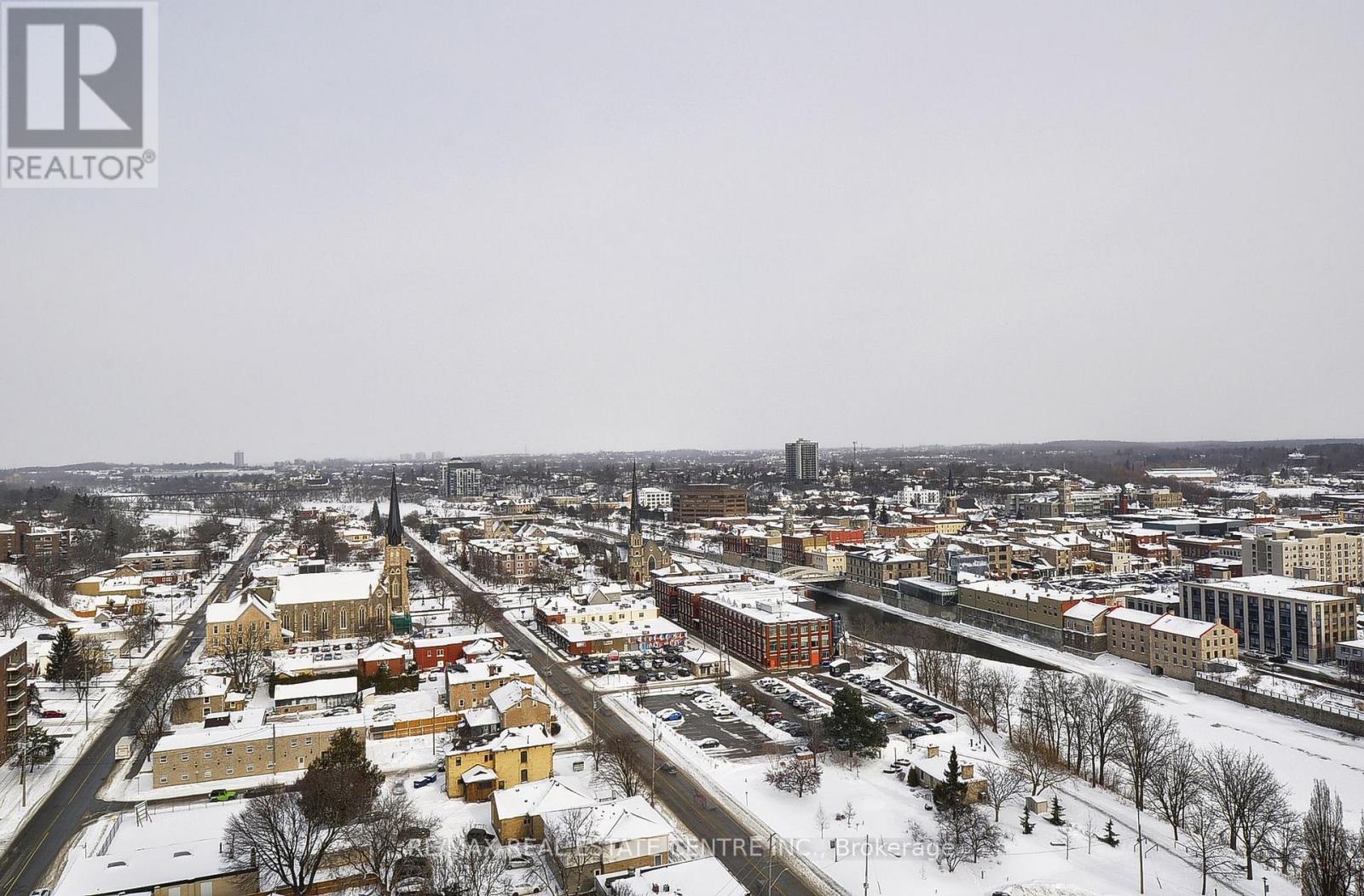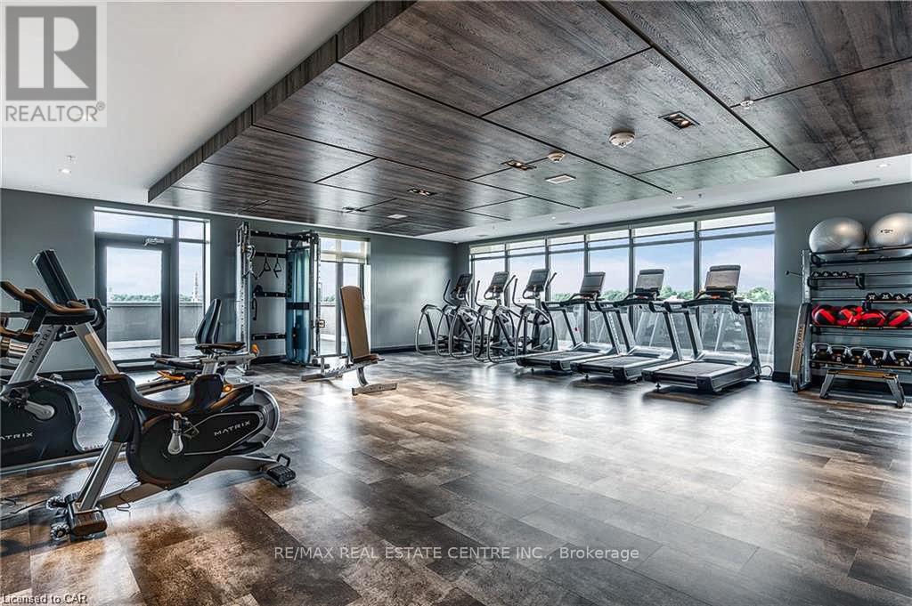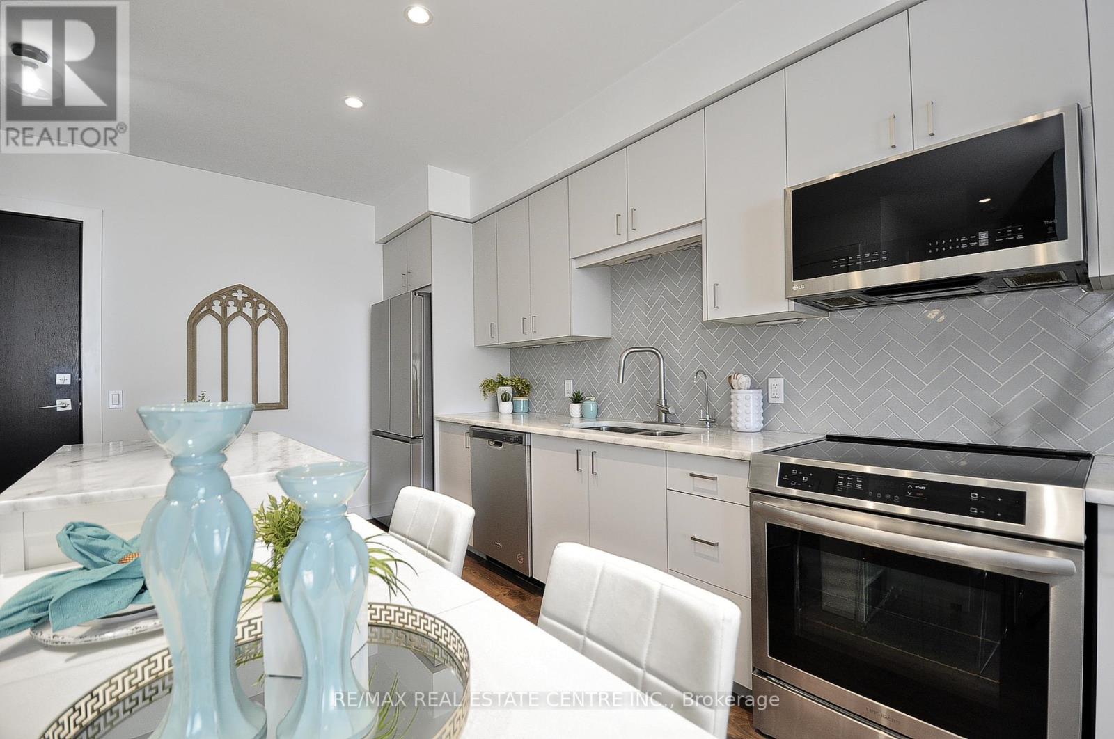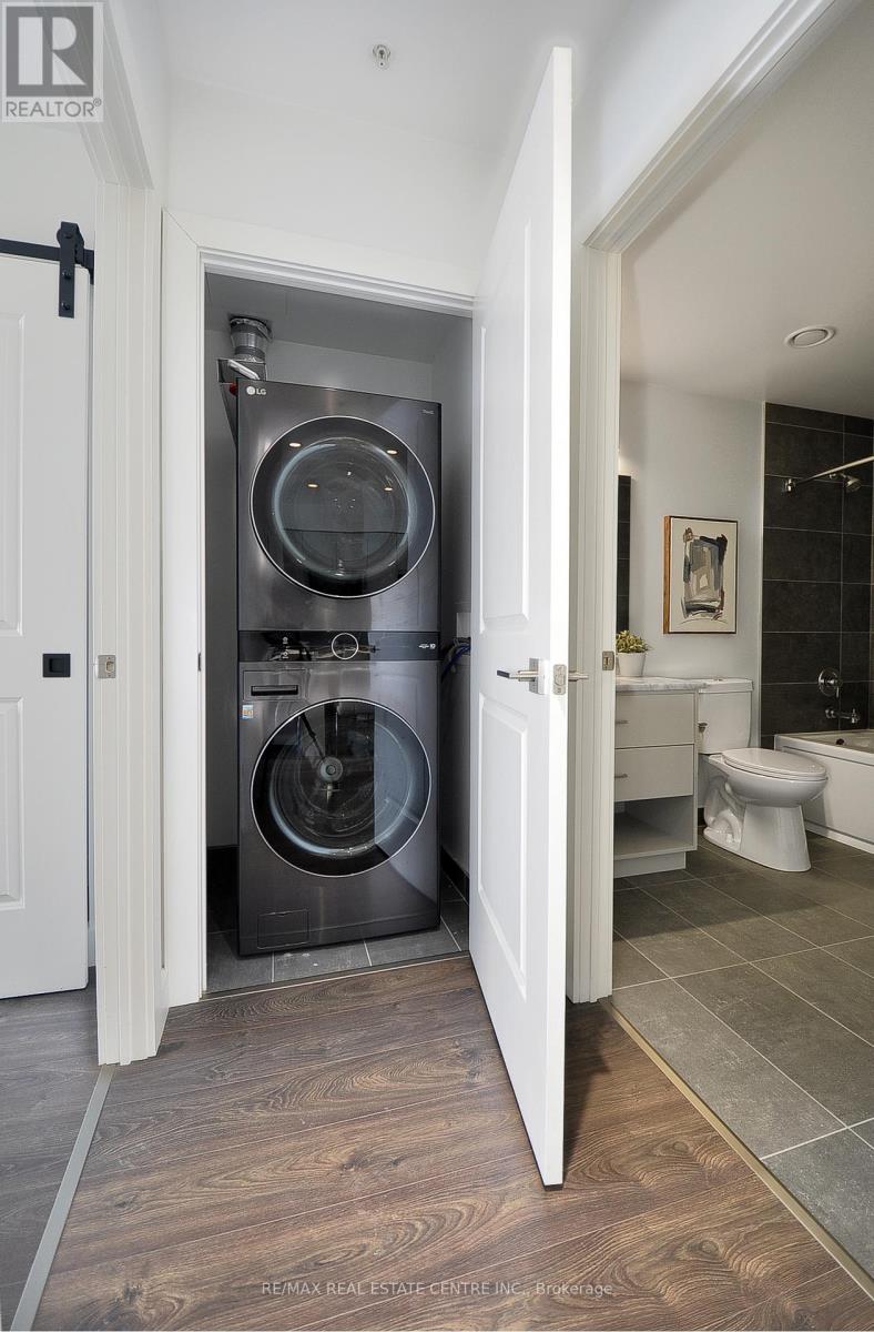 This elegant and spacious 2-bedroom, 2-bathroom apartment is completely move in ready, located in the Gaslight District. A beautifully designed suite offering a bright open-concept kitchen and living area, enhanced by custom built-ins and expansive windows that flood the space with natural light. Upgraded appliances, pull out cabinetry in the pantry, and other closet built ins. Both bedrooms and the living room feature direct walkout to the expansive balcony, creating an inviting indoor-outdoor living experience. The primary ensuite is complete with double sinks, while in-suite stacked laundry adds everyday convenience. Both bathrooms are 4 piece. Reverse osmosis system, and one out of the two parking spaces is equipped with EV plug for an electrical car. Residents enjoy access to premium amenities, including a fully equipped fitness centre, outdoor terrace, and stylish event spaces. Ideally located just moments from downtown Galt's renowned restaurants, cafés, markets, and more. (id:4555)