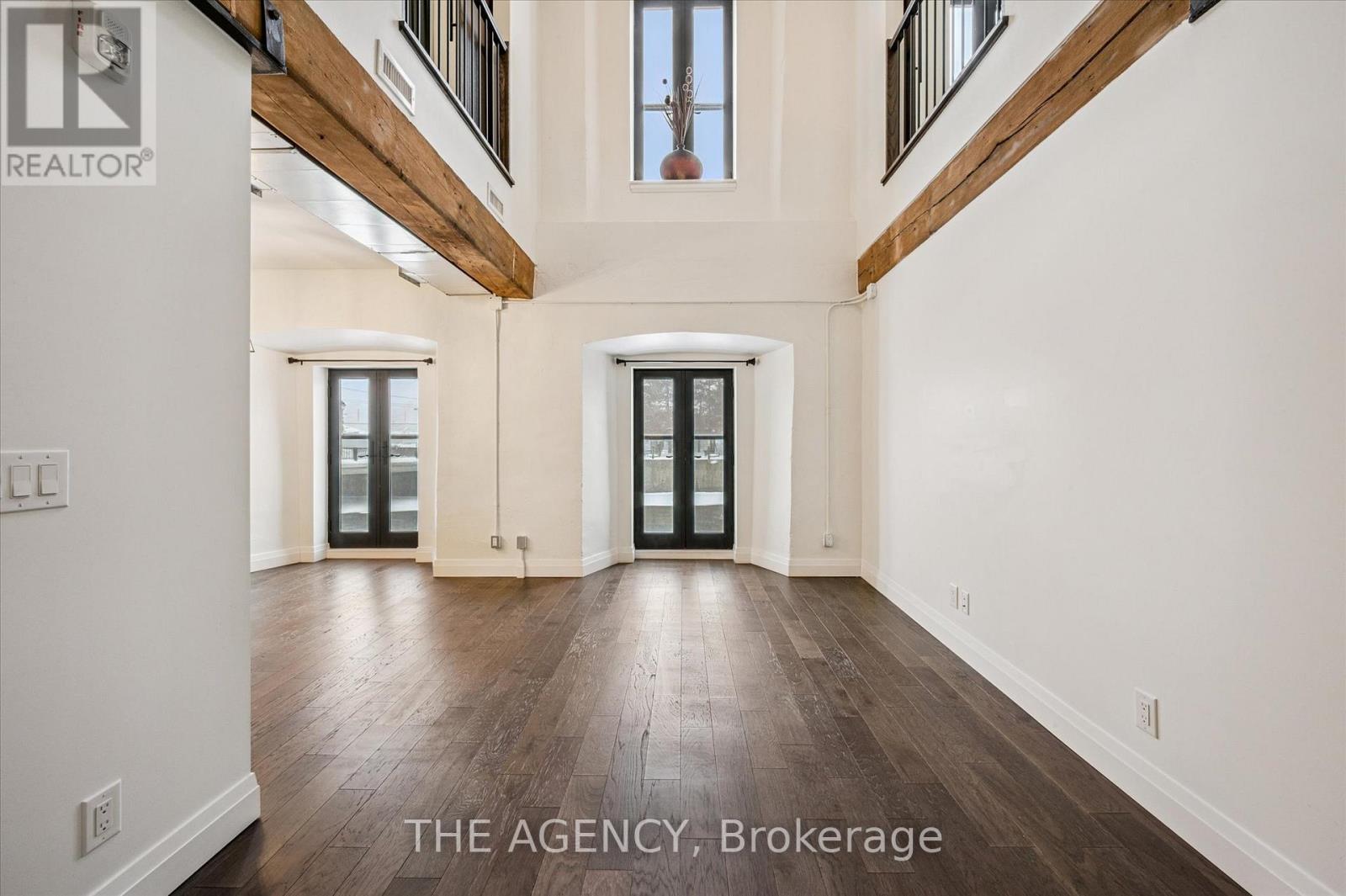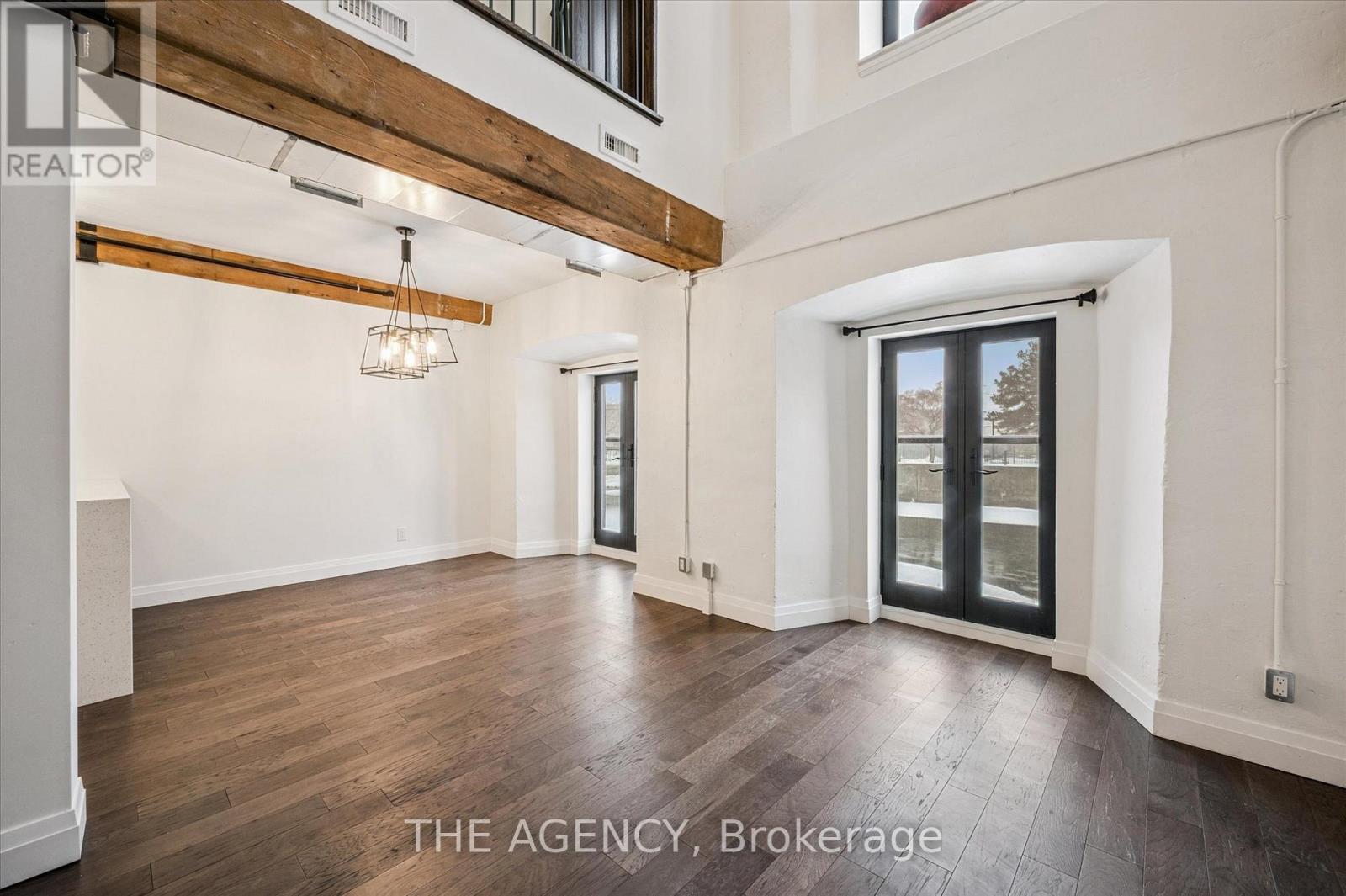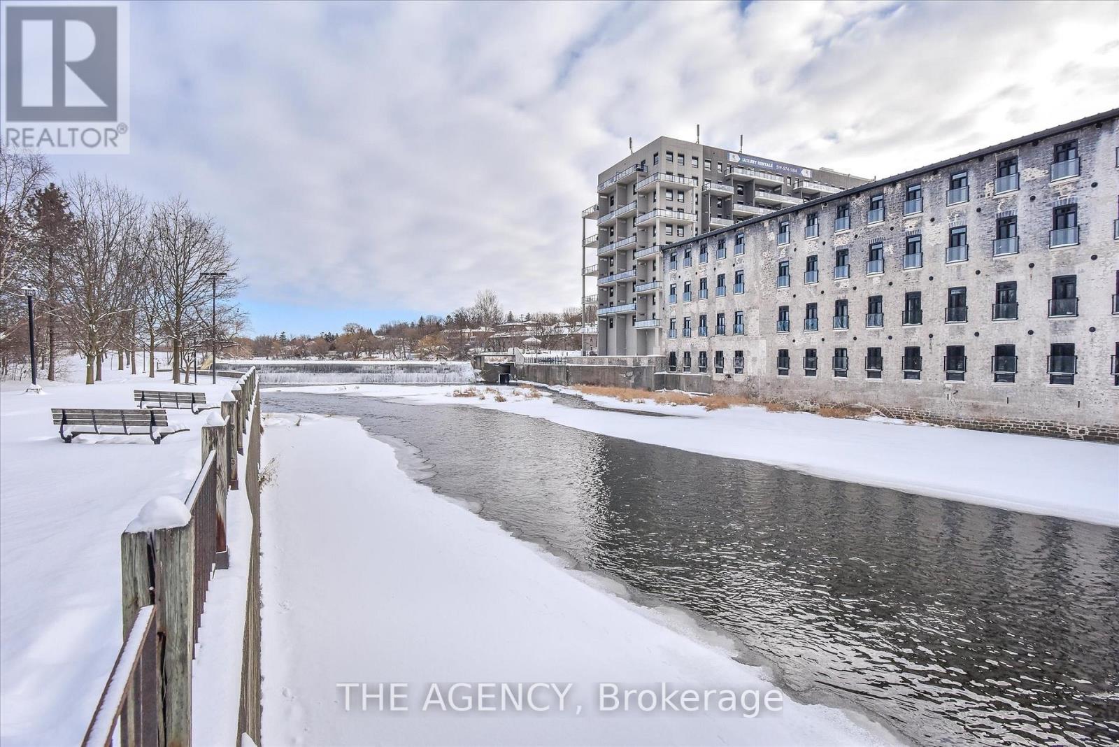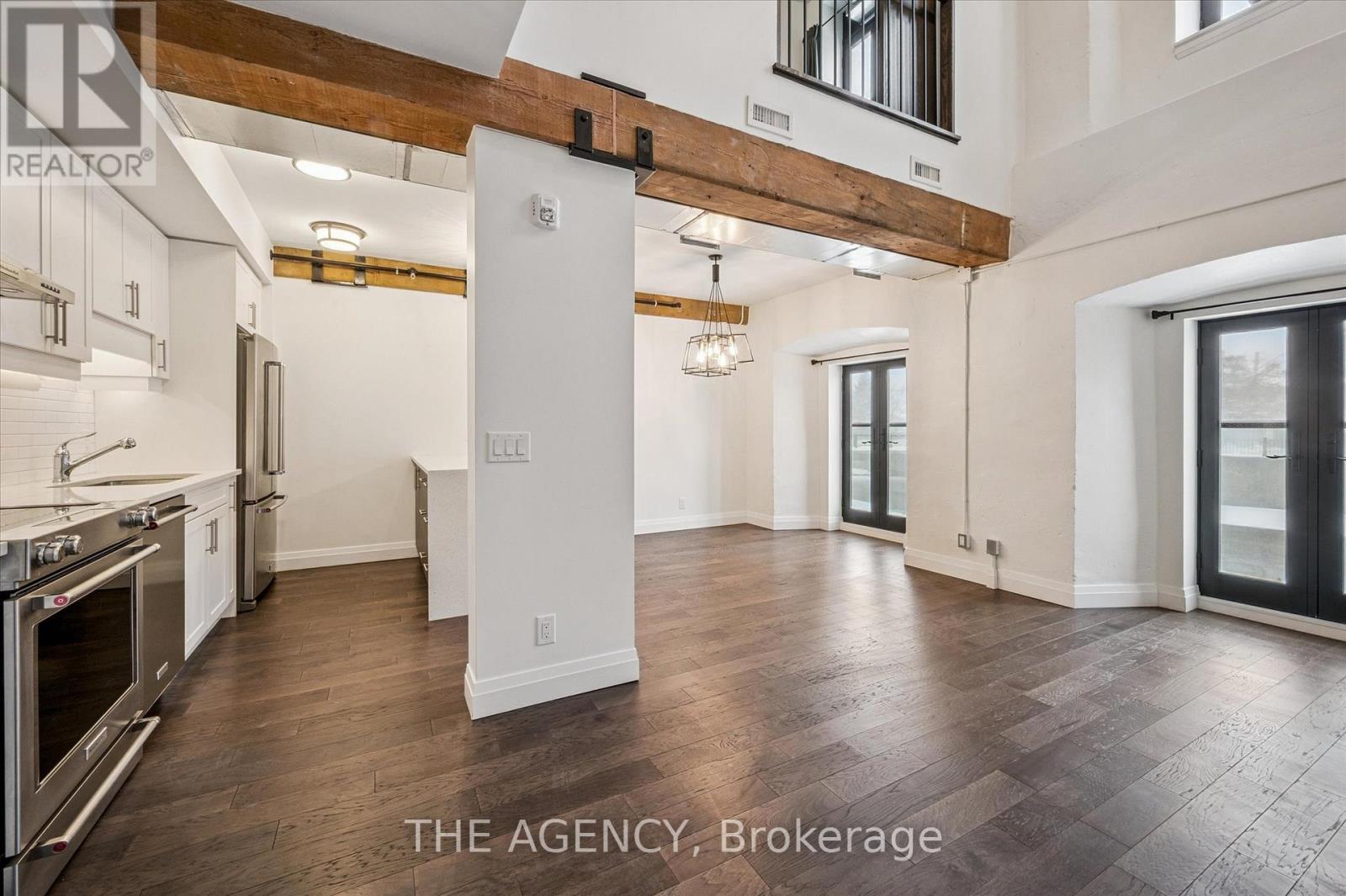 Set within the historic Riverbank Lofts, this exceptional two-bedroom, two-storey first-floor residence offers a rare blend of architectural heritage and contemporary sophistication in the heart of downtown Hespeler. Originally converted from an 1847 landmark, the loft celebrates its industrial roots with exposed wood beams, soaring ceilings, and expansive factory-style windows that flood the home with natural light and frame serene views of the Speed River. The main level features an airy open-concept layout designed for both entertaining and everyday comfort. Juliette balconies invite fresh air and add a subtle European touch, while the chef-inspired kitchen impresses with quartz countertops, premium appliances, and a cleverly concealed pantry tucked beneath the staircase. A stylish powder room completes the level. Upstairs, a dramatic catwalk creates separation between two private bedroom suites, each with its own beautifully finished ensuite bathroom, walk-in closet and sliding barn doors that pay homage to the building's historic past. This boutique loft includes two dedicated parking spaces and access to an impressive suite of amenities, including multiple resident lounges, a fully equipped fitness centre located directly across the hall, bike storage, and a pet wash station. Steps from your door, downtown Hespeler Village offers cafés, independent shops, riverside trails, and so much more. A truly distinctive loft-style condo, this home delivers refined urban living with historic soul. (id:4555)