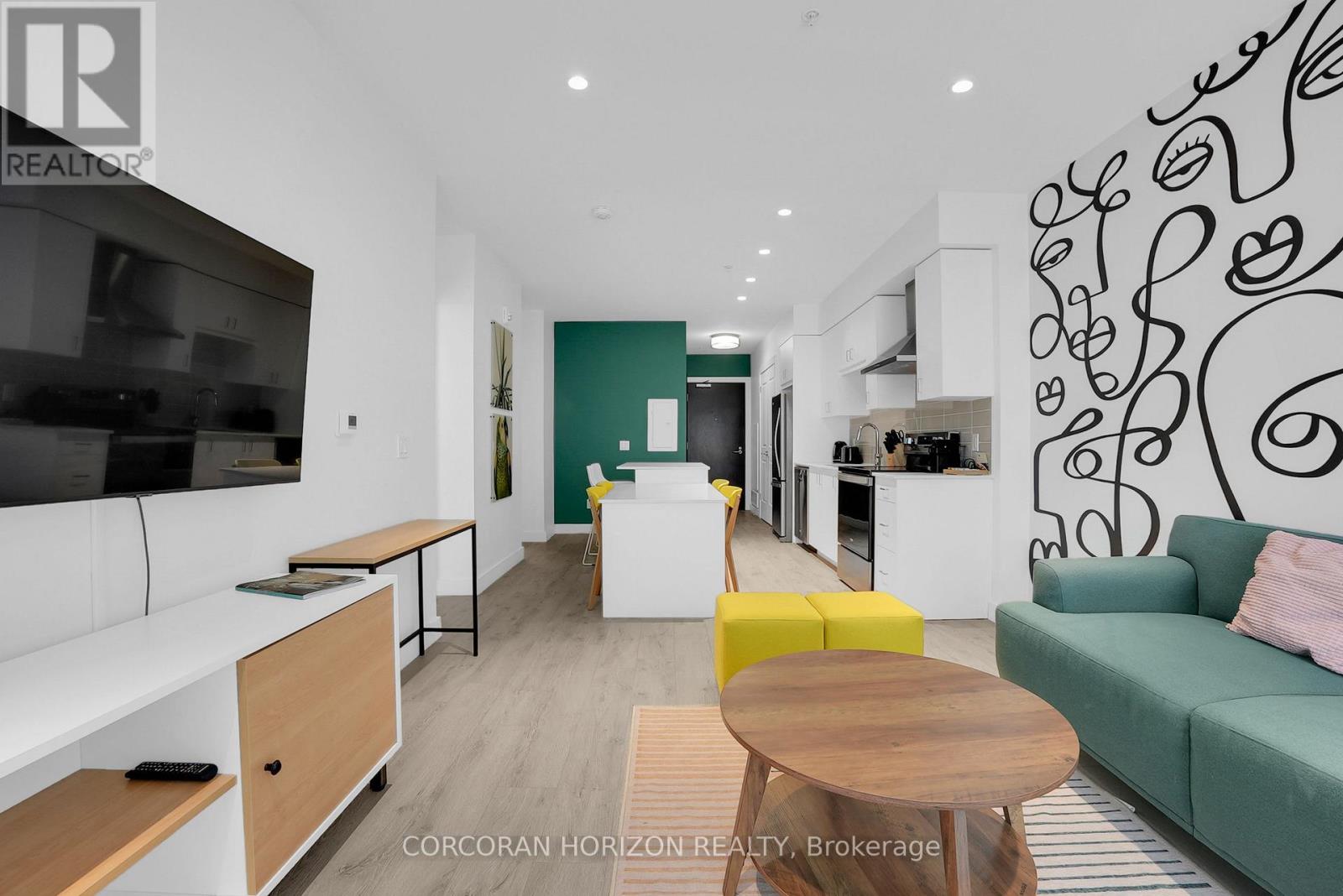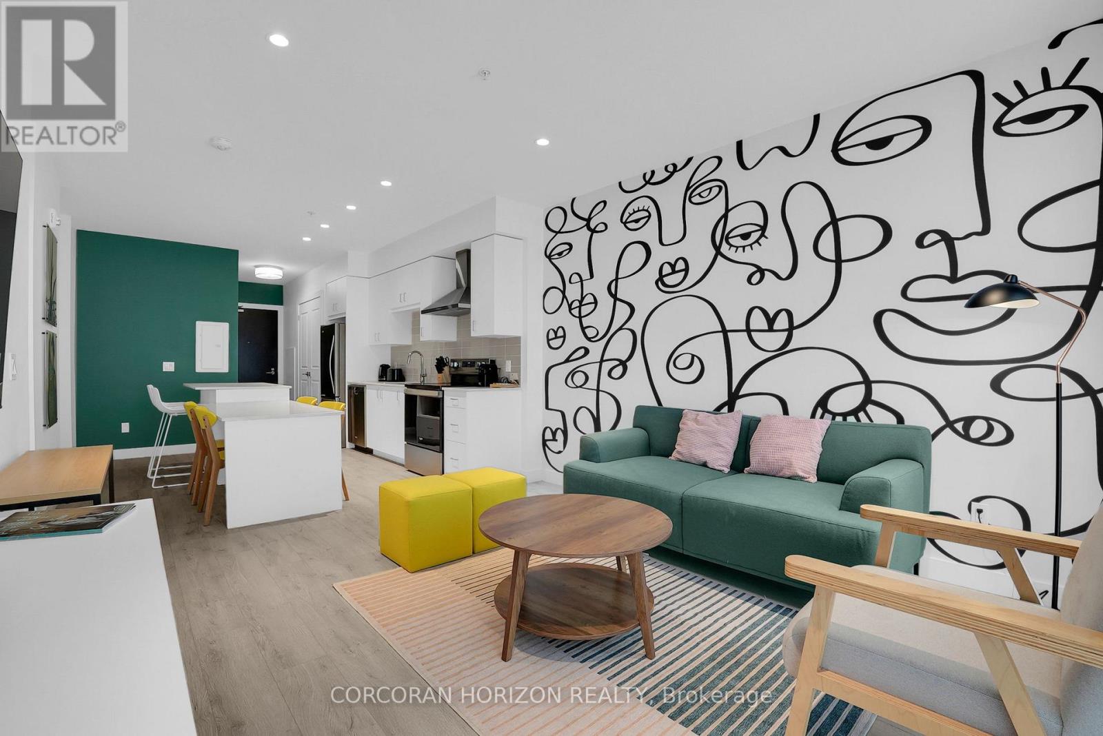 Welcome to 605-15 Glebe Street, a one-bedroom condo set in the heart of Downtown Galt's Gaslight District. The space features 9-foot ceilingsand an open layout that feels bright and easy to settle into. The kitchen offers plenty of cabinet storage, quartz countertops, a tile backsplash, designer hardware, and stainless steel appliances, flowing effortlessly into the living area for comfortable everyday living or hosting friends. Floor-to-ceiling windows bring in abundant natural light and open onto a generous balcony with views of the Grand River, Gaslight Square, and surrounding historic churches. The bedroom includes a walk-in closet and access to a private balcony, creating a quiet place to unwind. In-suite laundry is conveniently located in the bathroom. Residents can enjoy access to a fitness room, games room, and a rooftop terrace with seating areas, BBQs, and a fire pit. One parking space is included. Located in the historic core of Galt, the Gaslight District offers a walkable lifestyle surrounded by restaurants, shops, arts, and year-round community events. (id:4555)
