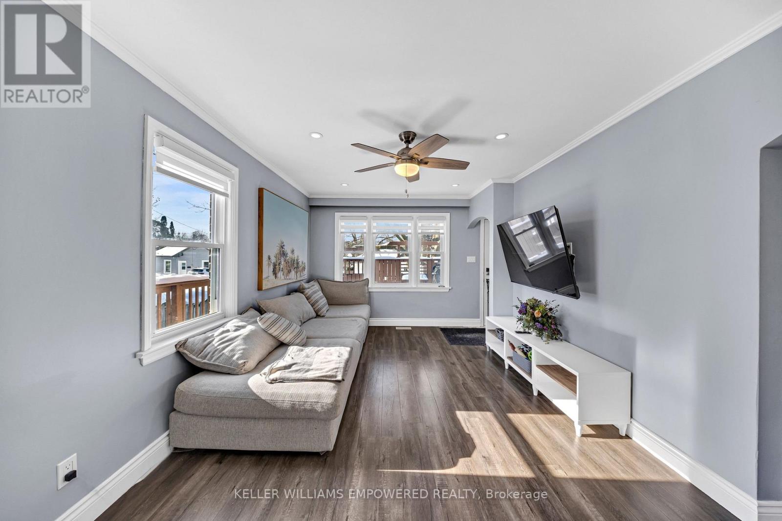 Gracefully set in one of East Galt's most established neighborhoods, this beautifully finished two-bedroom bungalow offers timeless charm paired with thoughtful modern updates. Designed for effortless living, the home features a carpet-free main floor and a warm, inviting atmosphere that immediately feels like home. The heart of the property is the fully renovated kitchen, completed in January 2025, showcasing both style and practicality for everyday living and entertaining. The living room, updated two years ago, is bright and refined with pot lighting and fresh contemporary paint, creating an ideal space to relax or gather. A tastefully updated bathroom (2023) adds to the home's turnkey appeal. The fully finished lower level expands the living space with a cozy recreation room featuring a gas fireplace, pot lighting, and a charming bar area-perfect for quiet evenings or hosting guests. Outdoors, enjoy a large private front deck, a convenient side mudroom, and a fully fenced yard for added privacy. A detached garage with hydro completes this exceptional offering. Located within walking distance to parks, schools, shopping, and the scenic Grand River trails, this East Galt gem offers comfort, character, and convenience in equal measure-a wonderful opportunity to own a beautifully updated home in a mature, family-friendly community. (id:4555)