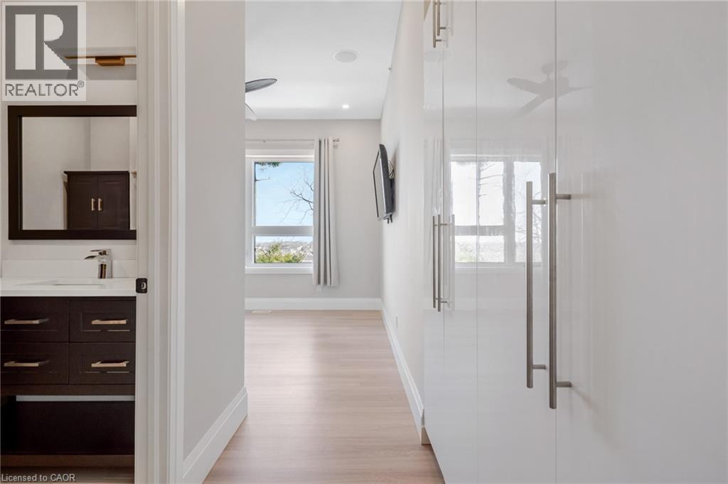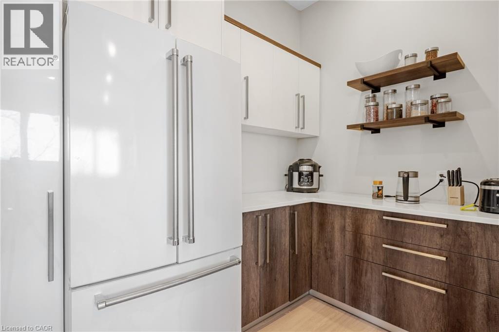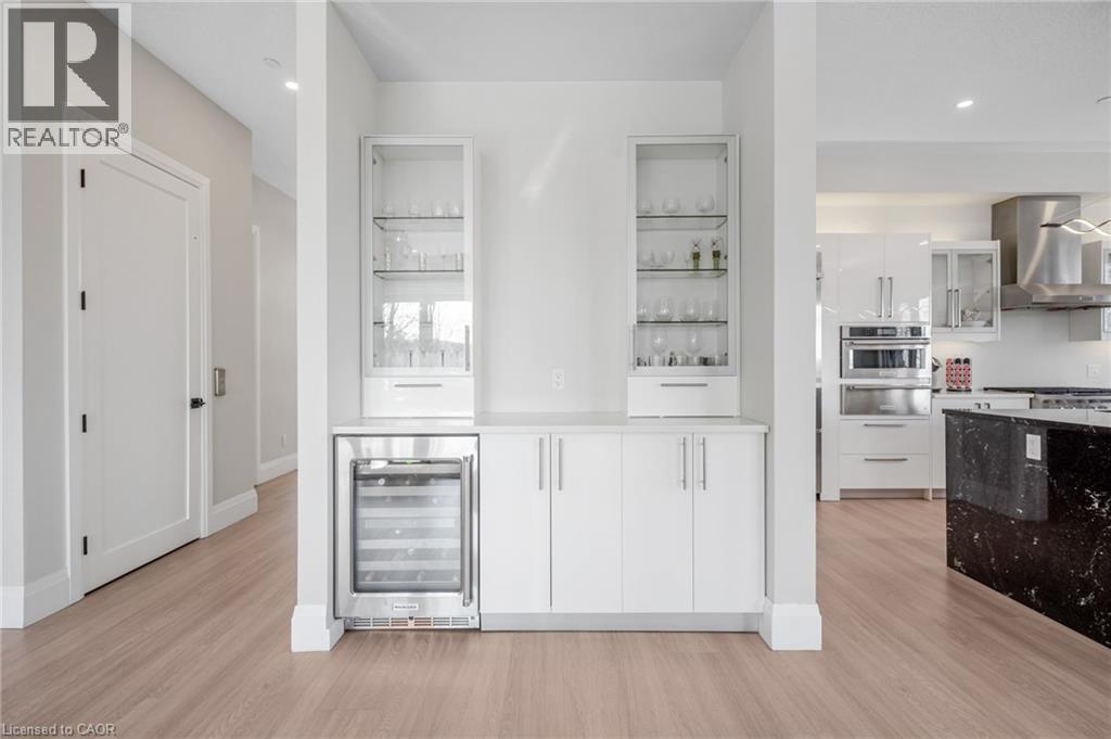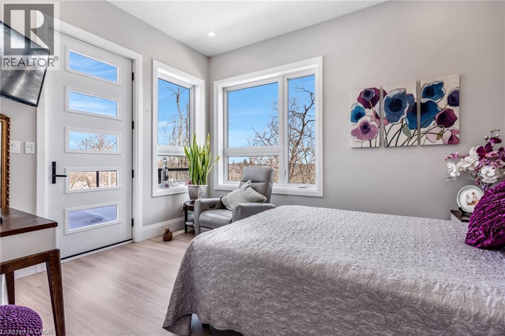 Welcome to 111 Grand Ridge Drive, an extraordinary 4,600 sq ft estate residence set on 3 acres of protected Carolinian forest, offering a rare combination of refined design and natural seclusion just minutes from the downtown core and highway access. This south-facing home is filled with natural light and elevated by 10-foot ceilings on every level, a fully carpet-free interior, and a private elevator providing effortless access throughout. The main level presents an elegant open concept layout designed for both grand entertaining and comfortable daily living. The chef-inspired kitchen is a true focal point, featuring a striking granite waterfall island sourced via Latea Brazil, quartz surfaces, premium appliances, an expansive servery, and a generous butler’s pantry. A private main floor bedroom with its own ensuite offers ideal accommodations for guests or extended family. Two large decks extend the principal living areas outdoors, creating a seamless connection to the surrounding forest. Upstairs, four spacious bedrooms include a luxurious primary retreat complete with European windows, a substantial walk-in closet, a spa-like ensuite bath, and a private deck overlooking the treed landscape. The fully finished walk-out lower level adds exceptional versatility with an additional bedroom, full bath, and recreation space anchored by an impressive 12-foot sliding door leading to the landscaped grounds. Constructed with attention to quality and performance, this home features full spray foam insulation, 400 amp service with generator rough-in, an owned hot water heater with recirculating pump, owned soft water system, interior sprinkler system, hard-wired interior and exterior speaker system, and soffit lighting on a timer. The approximately 1,000 sq ft triple car garage offers oversized 10 ft wide by 9 ft high doors, EV rough-in, and Wi-Fi enabled openers, ideal for collectors or hobby enthusiasts. (id:4555)