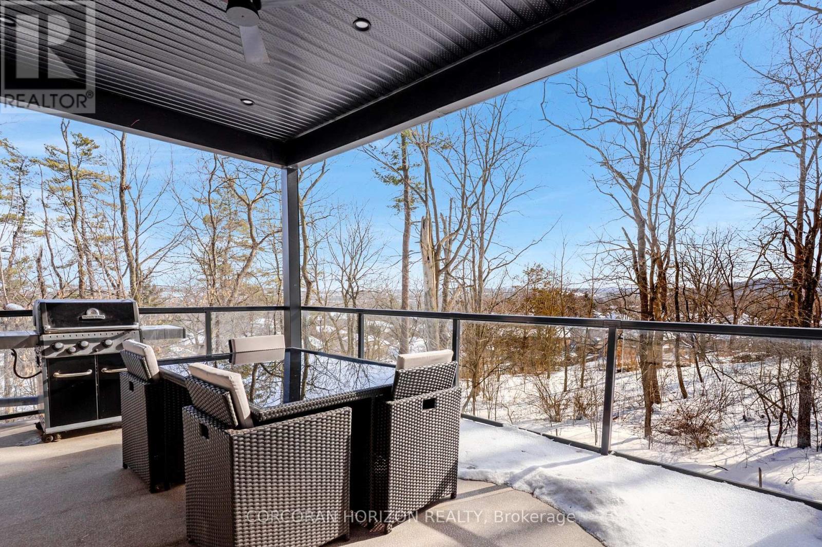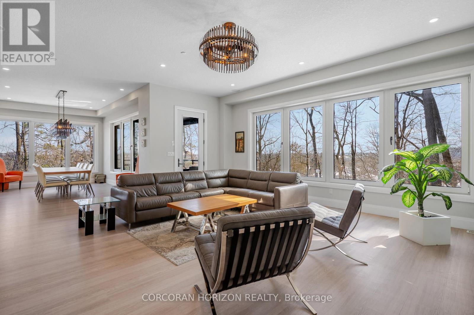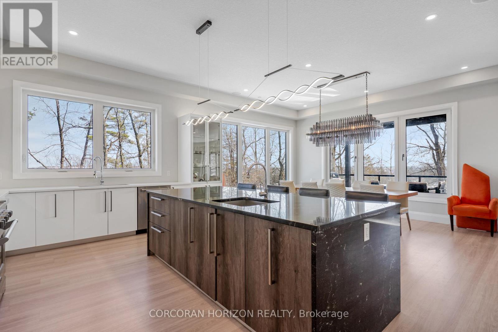 Welcome to 111 Grand Ridge Drive, an extraordinary 4,600 sq ft estate residence set on 3 acres of protected Carolinian forest, offering a rare combination of refined design and natural seclusion just minutes from the downtown core and highway access. This south-facing home is filled with natural light and elevated by 10-foot ceilings on every level, a fully carpet-free interior, and a private elevator providing effortless access throughout. The main level presents an elegant open concept layout designed for both grand entertaining and comfortable daily living. The chef inspired kitchen is a true focal point, featuring a striking granite waterfall island sourced via Latia Brazil, quartz surfaces, premium appliances, an expansive servery, and a generous butler's pantry. A private main floor bedroom with its own ensuite offers ideal accommodations for guests or extended family. Two large decks extend the principal living areas outdoors, creating a seamless connection to the surrounding forest. Upstairs, four spacious bedrooms include a luxurious primary retreat complete with European windows, a substantial walk-in closet, a spa-like ensuite bath, and a private deck overlooking the treed landscape. The fully finished walk-out lower level adds exceptional versatility with an additional bedroom, full bath, and recreation space anchored by an impressive 12-foot sliding door leading to the landscaped grounds. Constructed with attention to quality and performance, this home features full spray foam insulation, 400 amp service with generator rough-in, an owned hot water heater with recirculating pump, owned soft water system, interior sprinkler system, hard-wired interior and exterior speaker system, and soffit lighting on a timer. The approximately 1,000 sq ft triple car garage offers oversized 10 ft wide by 9 ft high doors, EV rough-in, and Wi-Fi enabled openers, ideal for collectors or hobby enthusiasts. (id:4555)