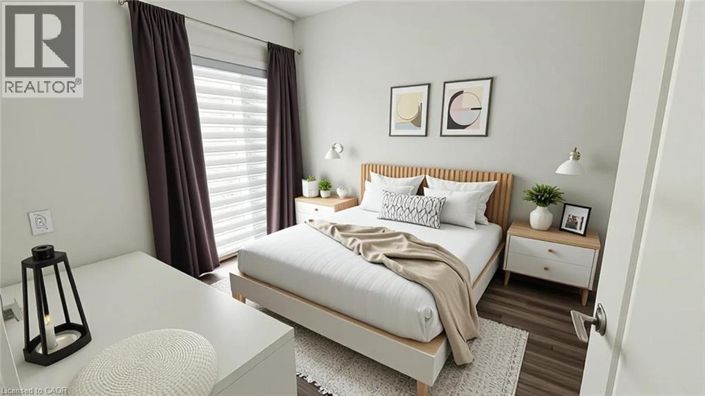 Welcome to contemporary living in the heart of East Galt. This well-appointed condo offers a great mix of comfort and convenience in a lively, connected neighbourhood. The open-concept layout feels bright and spacious, thanks to high ceilings and floor-to-ceiling windows that bring in plenty of natural light. The kitchen features quartz countertops, sleek cabinetry, and stainless steel appliances, and opens right into the living and dining area. From there, step out onto a large private balcony perfect for your morning coffee, catching the sunset, or having friends over. At 743 square feet, this unit includes two good-sized bedrooms. The primary bedroom has its own three-piece ensuite, and there's a full four-piece main bathroom as well. You'll also have in-suite laundry, one owned parking space, and visitor parking for guests. The location is hard to beat. You're walking distance to shopping, restaurants, coffee shops, banks, schools, and transit. Green Gate Park is just steps away, Highway 8 is minutes down the road, and you've got easy access to Highway 401 and downtown Cambridge. With plenty of commercial and industrial activity nearby, it's a great spot for working professionals. And if you like getting outdoors, Valens Lake Conservation Area is only a short drive. Some pictures are virtually staged. (id:4555)