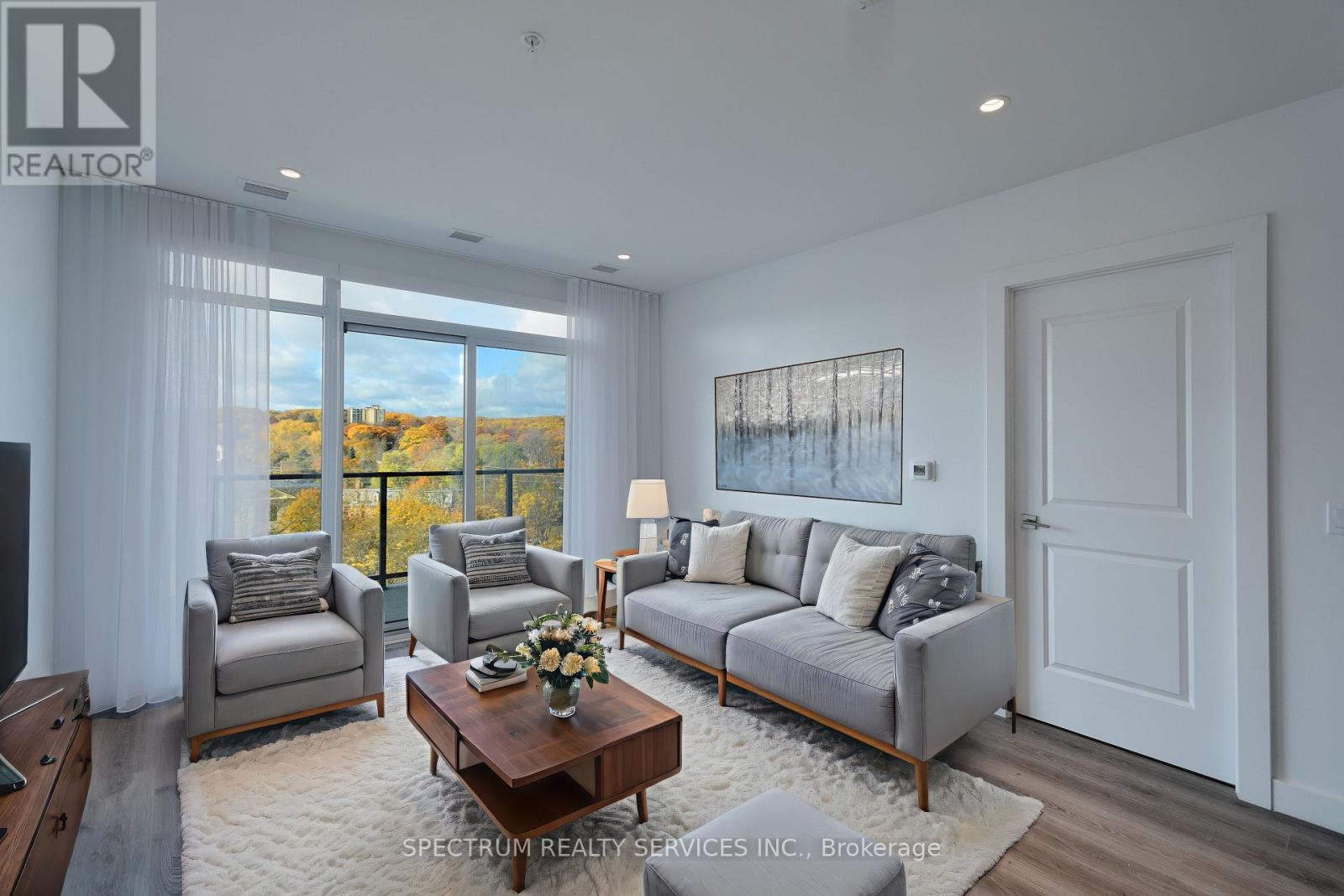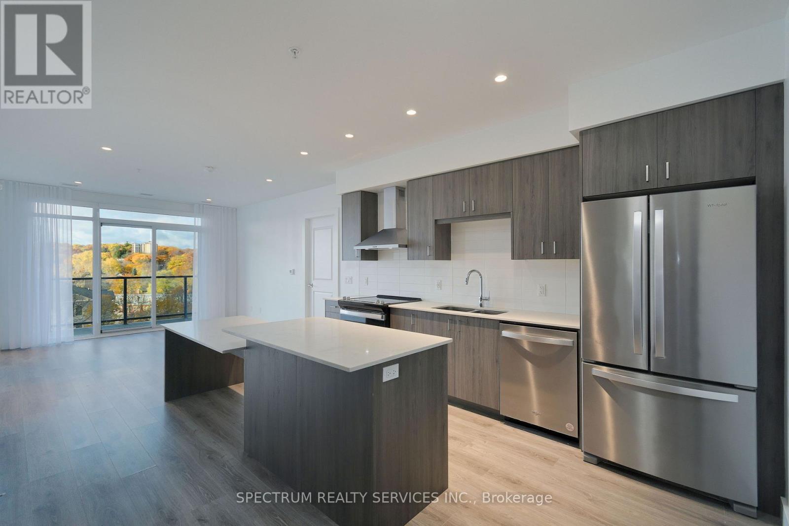 WHERE MODERN COMFORT MEETS HISTORIC CHARM ~ Discover style, comfort, and urban convenience in this beautifully appointed 2-bedroom, 2-bath condo, ideally located in the vibrant second tower beside the Grand River. Designed for the young and the young at heart, you're just steps from Cambridge's premier dining, entertainment, and cultural destinations. Floor-to-ceiling windows flood the suite with natural light while showcasing breathtaking sunset views. Step out onto your private 200 sq. ft. balcony - accessible from both the living room and primary bedroom - creating the perfect outdoor retreat for morning coffee or evening unwinding. The spacious primary suite offers generous closet space and a spa-inspired ensuite complete with dual sinks and a walk-in glass shower. The modern kitchen features upgraded stainless steel appliances, in-suite washer and dryer, and a large quartz island ideal for cooking, gathering, and casual dining. The second bedroom is bright and versatile with ample storage, while the main bath provides a relaxing escape with a deep soaker tub. Residents enjoy exceptional amenities including a fully equipped fitness centre, yoga studio, games room, library, BBQ area, and a stunning rooftop terrace - perfect for entertaining and summer evenings under the stars. Some suite photos have been virtually staged for illustrative purposes only. (id:4555)
