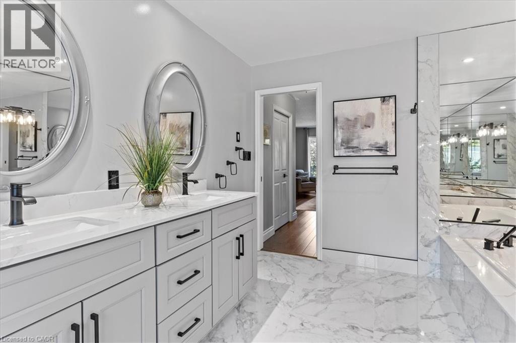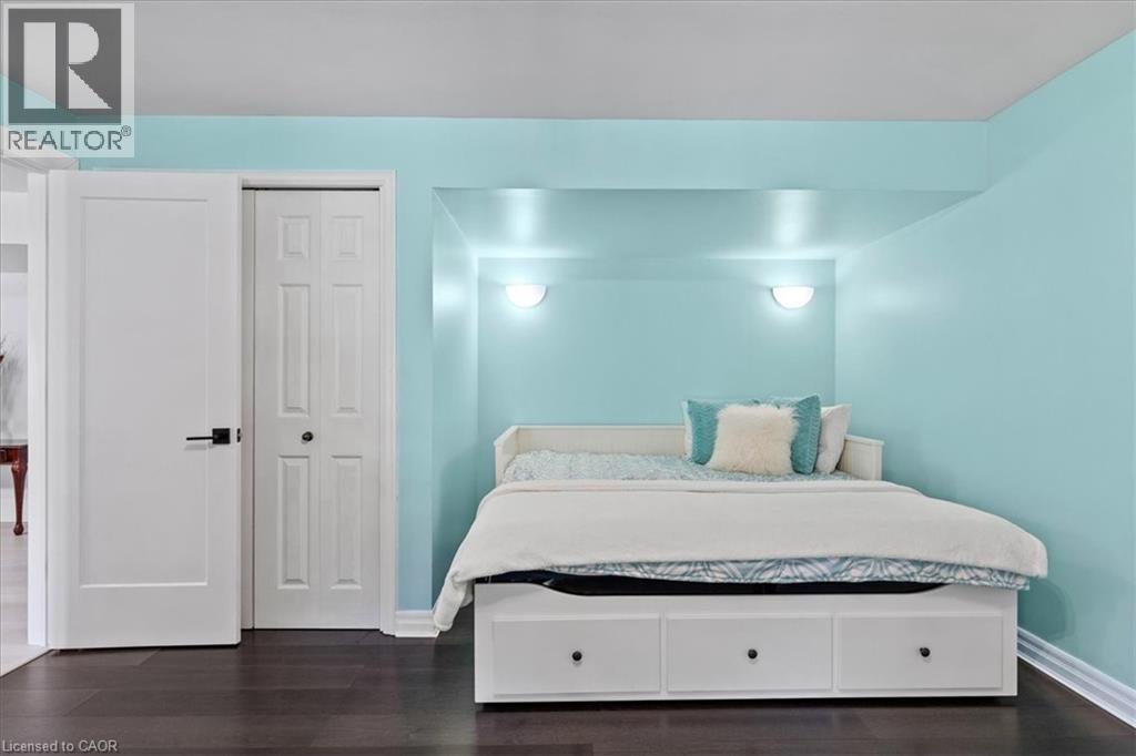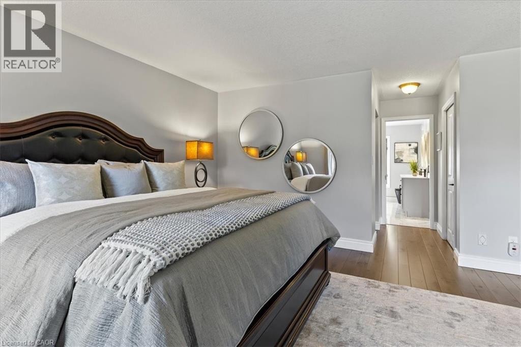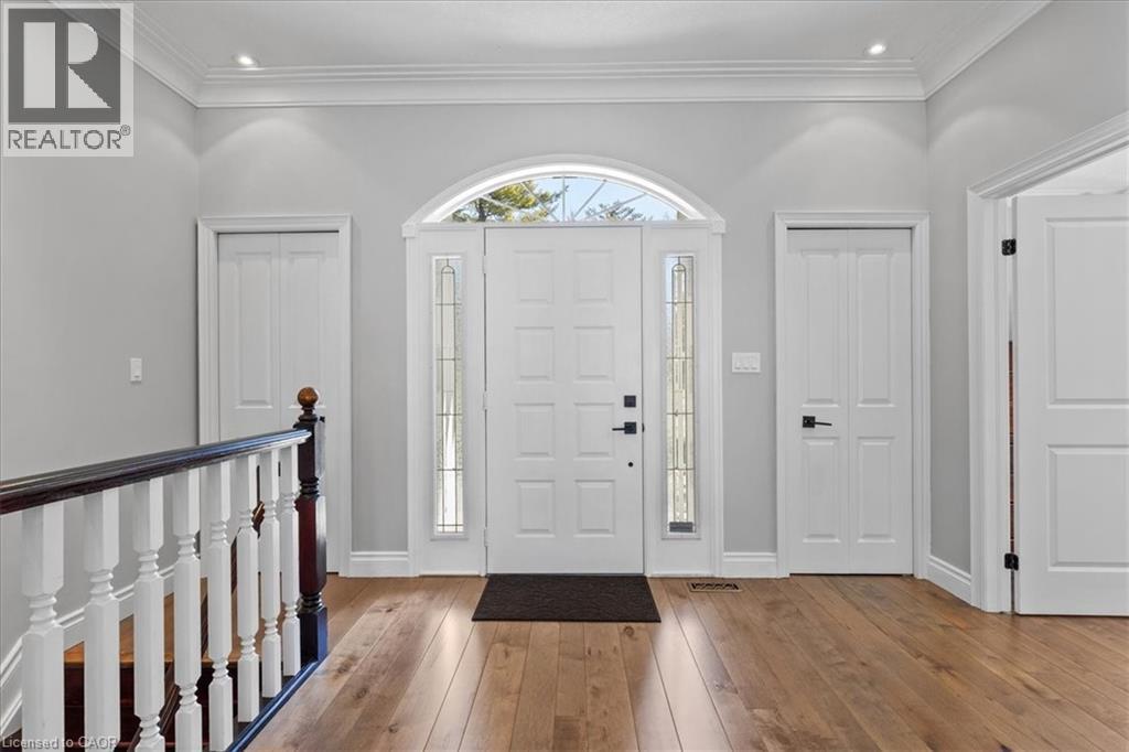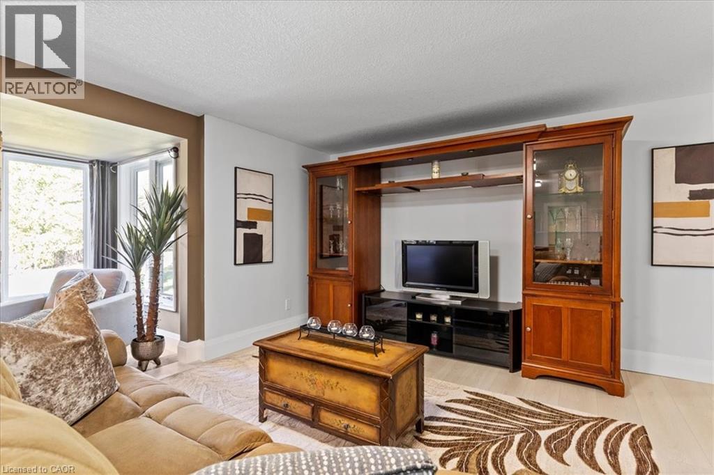 RARE OPPORTUNITY! Custom built raised bungalow on a 1.04-acre lot, offering court location surrounded by protected greenspace. This exclusive, 10 estate court rarely has homes come up for sale and 20 Grandy lane is one that takes full advantage of the natural features, completely backing onto mature forest with direct access to Millcreek conservation land. The home features a stunning all stone exterior with a beautiful retaining wall and carefully set natural stone steps, leading to the front door. The main level layout is wide open with large windows, designed to overlook the backyard from anywhere within the open space and providing access to the elevated multi-level deck completed with composite decking and glass rails. A rich, maple raised panel kitchen sits central with an oversized quartz countertop and raised bar sitting area; elegant crown molding finishes the cabinets to the ceiling with built-in stainless-steel appliances, gas cooktop. Equal in elegance is the built-in family room wall unit featuring gas fireplace insert. A three-sided fireplace separates the dining room from a sunken sitting area providing for an elevated view of the backyard; coffered ceiling accents and hardwood flooring span the space. Completing the space is a large bedroom, laundry, 2-piece bathroom, and the primary suite, complete with walk in closet and recently renovated(2023) 5-piece spa like ensuite. A hardwood staircase leads to the lower level which is still completely above grade; the home was strategically placed to take full advantage of the walkout. Lower level gives access to the oversized, staggered double car garage. Perfectly suited as a multi-generational home, offering three bedrooms, a recently renovated (2023) 4-piece bathroom, recreation room with gas fireplace, and kitchenette along with wet bar. Roof(2024), Additional oversized garden shed for equipment storage. Minutes from the 401, amenities, and schools. Don’t miss this truly beautiful property! (id:4555)