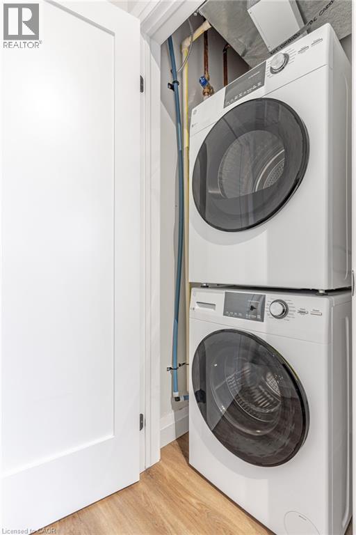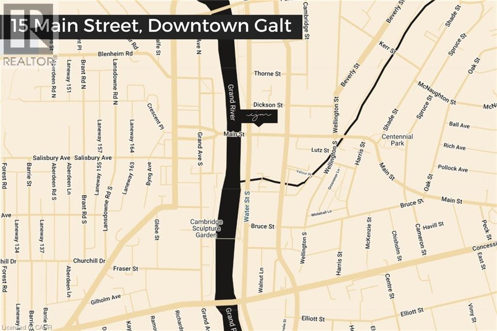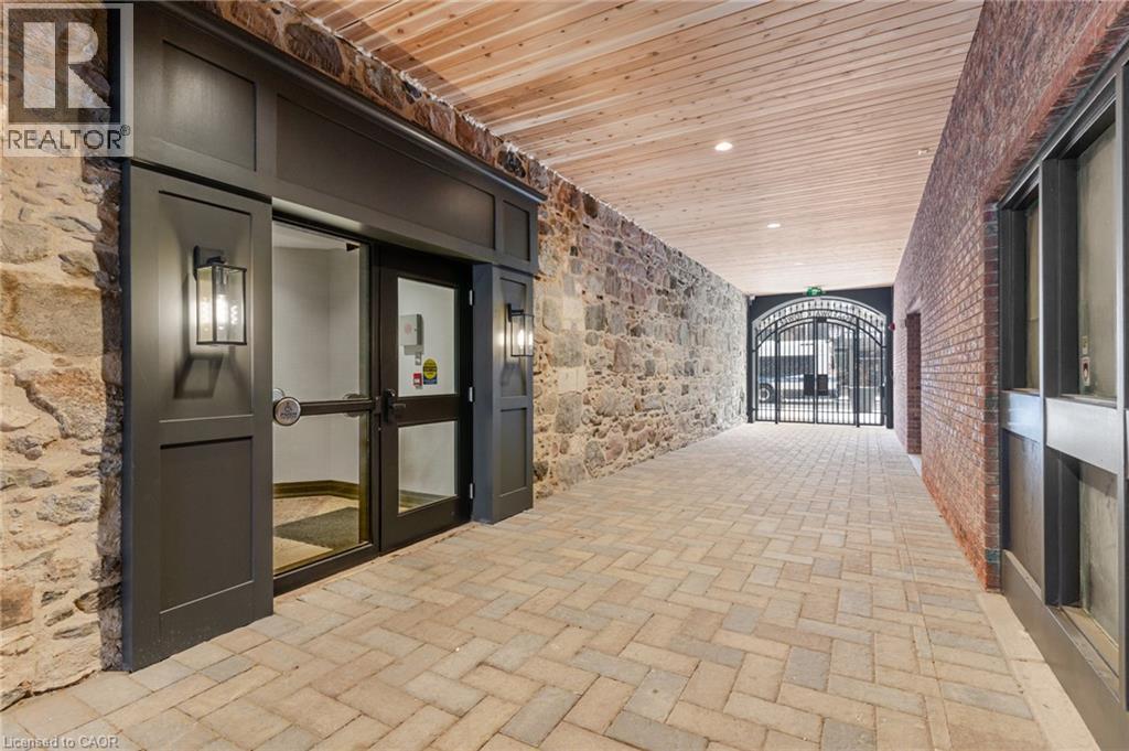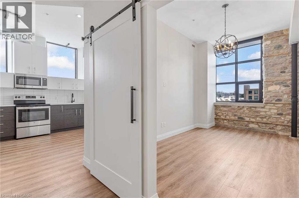 Modern living in a historic downtown building. This one bedroom, one bath residence at The Boardwalk Tower offers an effortless sophistication and urban ease right in the heart of downtown. The apartment features high ceilings throughout which are accentuated by large windows along the upper east side of the kitchen and south side of the living room filling the open space with lots of natural light. Depending on whether you work from home, like to entertain and cook, the main living space is wide open allowing for multiple ways to situate your furniture to suit you. The kitchen exemplifies extraordinary detail, featuring full size stainless steel appliances, and granite countertops. The primary bedroom is a private oasis which is large enough for a king bed and additional bedroom furniture. There is a large closet down the hall which serves as additional storage. There is also the luxury and convenience of in-suite laundry next to the large 4 piece washroom. This is a apartment is perfect for someone looking for a private, quiet and safe space close to all the wonderful amenities and vibrant lifestyle downtown Cambridge has to offer. (id:4555)