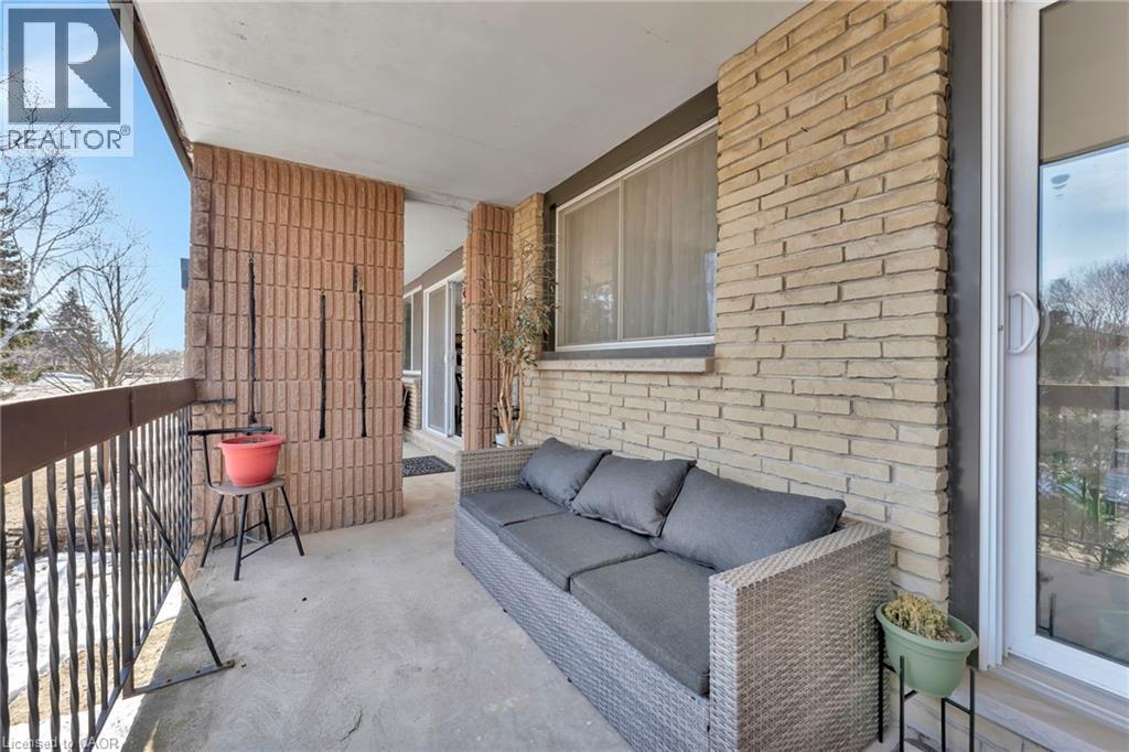 Beautifully Renovated 2-Bedroom Condo in a Prime Location! Nestled on a quiet crescent near Riverside Park, this stunning unit is just minutes from Hwy 401 and offers a dead-end street setting for added privacy. Recent upgrades make this home truly move-in ready! Featuring a modern and stylish white kitchen with brand new contemporary countertops, a granite sink, modern faucet, new built-in dishwasher and subway tile backsplash. The open-concept, carpet free layout boasts luxury vinyl plank flooring throughout. A spacious living room with room for an office opens to an end-to-end balcony overlooking the treetops—perfect for morning coffee. The separate dining room is enhanced by a stylish sputnik light fixture. The updated 5- piece bath includes a double-sink vanity. Both bedrooms are generously sized, with the primary bedroom offering direct balcony access. Additional upgrades include new light fixtures throughout and A/C for summer comfort. The Caledonian offers convenient laundry on every floor, plus amenities such as a party room, gym, bike storage, and workshop. Includes parking and storage locker. Secure entry on both sides of the building. This location is close to the Grand River, trails, shopping, and dining. Rarely available—book your showing today (id:4555)