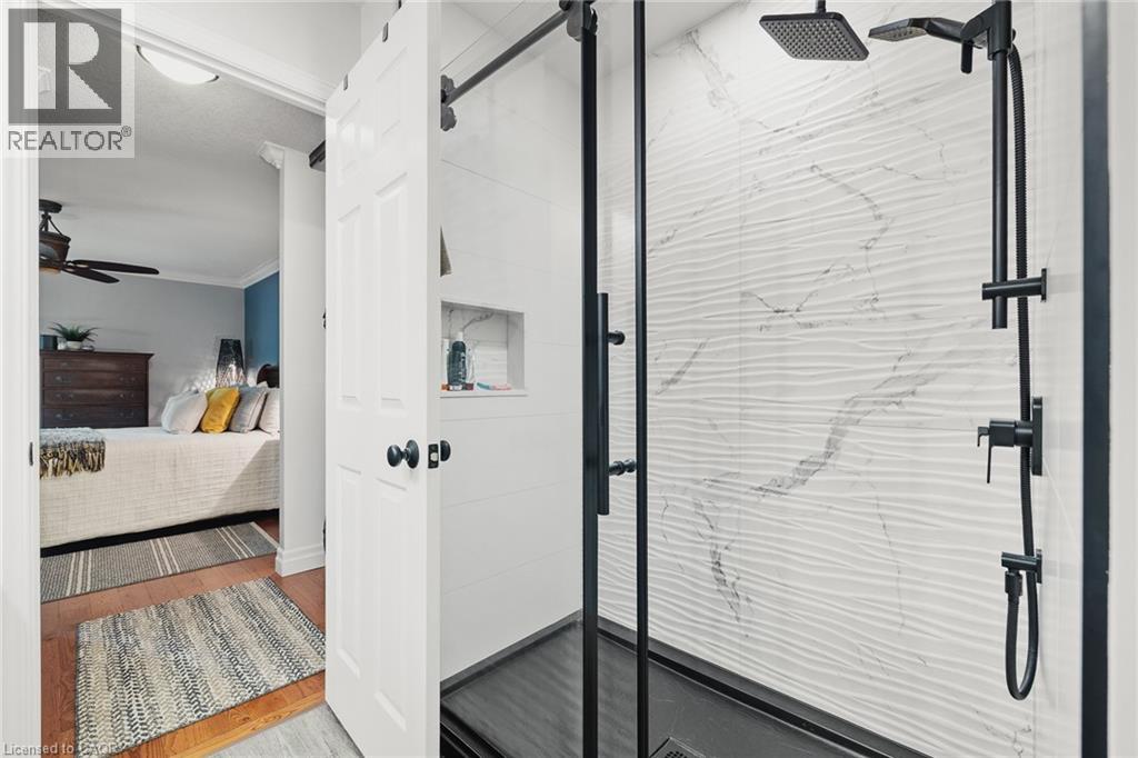 Welcome to Riverwalk, one of Cambridge's most sought after communities tucked along the banks of the Grand River. This beautifully renovated end unit offers a rare combination of privacy, natural light, and effortless living in a setting that feels worlds away from the everyday. Inside, the main floor has been thoughtfully opened up to create a bright, flowing layout where the kitchen, living, and dining areas connect seamlessly. Large windows draw in natural light and frame peaceful views of the surrounding greenery and river beyond. The main floor primary bedroom offers the ease of single level living, complete with a luxurious 5 piece ensuite featuring a freestanding jetted tub, glass shower, and double vanity. Step directly from the bedroom onto the private deck and start your mornings overlooking the Grand River, a view that never gets old. A separate dining room at the front of the home offers flexibility for formal entertaining, a quiet home office, or a cozy reading space. Downstairs, the fully finished walkout basement adds valuable living space with a second bedroom, spacious family room, and gas fireplace that makes the entire level feel warm and inviting. Perfect for guests, extended family, or a private retreat. Riverwalk is known for its beautifully maintained grounds and welcoming community atmosphere. Residents enjoy access to a clubhouse, party room, visitor parking, and shared outdoor spaces including a community garden and arboretum. Just steps away, the Walter Bean Grand River Trail offers kilometres of scenic walking and cycling paths along the river. With major updates including a new heat pump and roof in 2025, and a location that blends peaceful nature with easy access to city amenities, this home offers a lifestyle that is both relaxed and refined. A rare opportunity for those looking to downsize without compromise or simply enjoy riverside living at its best. (id:4555)