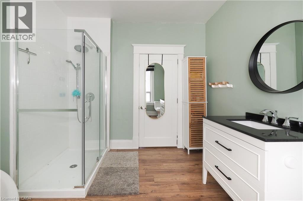 Welcome to 19 Paisley Heights in Cambridge, a charming 2-bedroom, 1-bathroom detached bungalow located on a quiet cul-de-sac. This home features an open-concept kitchen and living area with stainless steel appliances, updated flooring, a primary bedroom with walk-in closet, and a spacious bathroom with glass shower and soaker tub. The unfinished basement offers room to grow, while the large yard with a new gazebo provides great outdoor space. Situated on a 50 ft lot with parking for 3+ vehicles, the home also includes many updates such as kitchen (2019), bathroom (2020), electrical panel (2019), reverse osmosis and water softener (2021), newer appliances, shingles, and smart Wi-Fi light switches. Conveniently located about 30 minutes from Kitchener, Hamilton, Brantford, and Guelph, making it ideal for first-time buyers or downsizers. (id:4555)