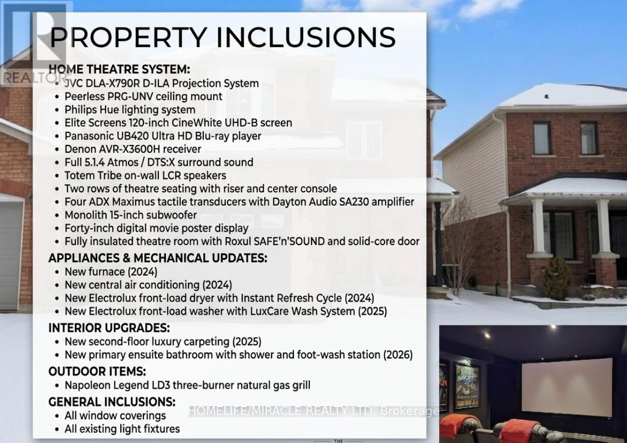 Step into this beautifully updated 3-bed, 2-full-bath, 2-half-bath detached home, offering arare blend of comfort, style, and standout features you won't find anywhere else. Located in afamily-friendly neighbourhood, this home has been thoughtfully upgraded from top to bottom overthe past few years, giving buyers true peace of mind and exceptional value.The main floor features new flooring (2023) and an upgraded kitchen complete with refinishedcabinetry, quartz countertops, and a breakfast bar perfect for casual meals or entertaining.Upstairs, you'll find new luxury carpeting (2025), a fully renovated main bathroom (2022) withdouble sinks, and a brand-new primary ensuite (2026) featuring a custom shower and convenientfoot-wash station.Major mechanicals have all been updated, including a new furnace (2024) and new central airconditioning (2024). Laundry is a breeze with the 2024 Electrolux dryer and 2025 Electroluxwasher.One of the home's most impressive highlights is the professionally designed, fully insulatedhome theater-a true cinematic experience with a JVC 4K projection system, 120" screen, Denonreceiver, Totem speakers, Atmos 5.1.4 surround, theater seating with riser, tactiletransducers, Monolith 15" subwoofer, Philips Hue lighting, and even a 40" digital movie poster.The room is sound-controlled with Roxul SAFE'n'SOUND insulation and a solid-core door, allowinglate-night movies without disturbing the rest of the home.Outside, enjoy the backyard space complete with a Napoleon Legend LD3 natural gas grill,perfect for summer gatherings.With extensive updates, premium finishes, and a one-of-a-kind theater experience, this home istruly move-in ready and stands out in today's market. (id:4555)