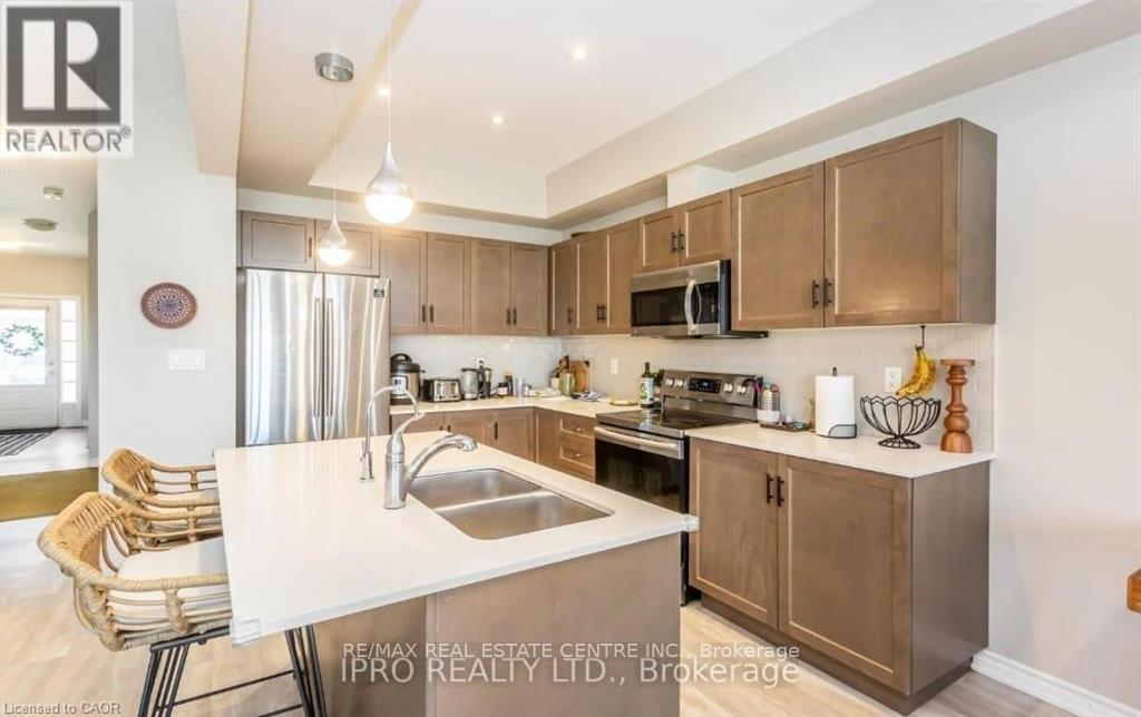 Welcome to Free hold town houses, where sophistication meets comfort in the heart of Cambridge! This exquisite 3-bedroom, 2.5-bathroom townhouse offers 1800 sq. ft. of open-concept living space, designed to impress and provide the perfect balance of style and functionality. From the moment you step inside, you're embraced by luxury vinyl plank floors, seamlessly flowing into gorgeous hardwood stairs design that exudes modern elegance. The great room steals the show, setting the stage for unforgettable gatherings. Your chef-inspired kitchen is nothing short of perfection, boasting all-white quartz countertops, a farmhouse stainless steel sink that harmonizes beautifully with custom lighting fixtures. Whether you're hosting guests or preparing meals for loved ones, this space is designed to make every moment special. Upstairs, your private sanctuary awaits. The primary bedroom is a true retreat, featuring a spacious walk-in closet and an oversized spa-like bathroom complete with a glass-enclosed shower and a freestanding soaking tub perfect for unwinding after a long day. Natural light pours into every corner of the home, offering breathtaking sunrise and sunset views that elevate your everyday living experience. Nestled in a highly desirable neighborhood, you're steps away from scenic walking trails and a large park right across the street. Plus, quick access to the highway means shopping, dining, and top-rated schools. This is truly an ideal location for anyone looking to call Cambridge home. (id:4555)