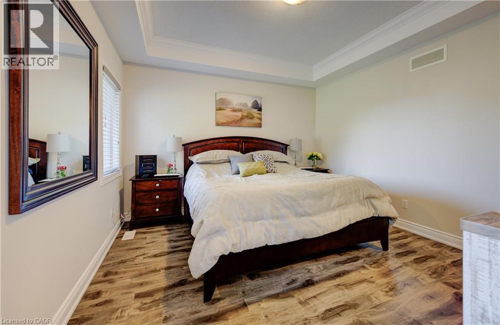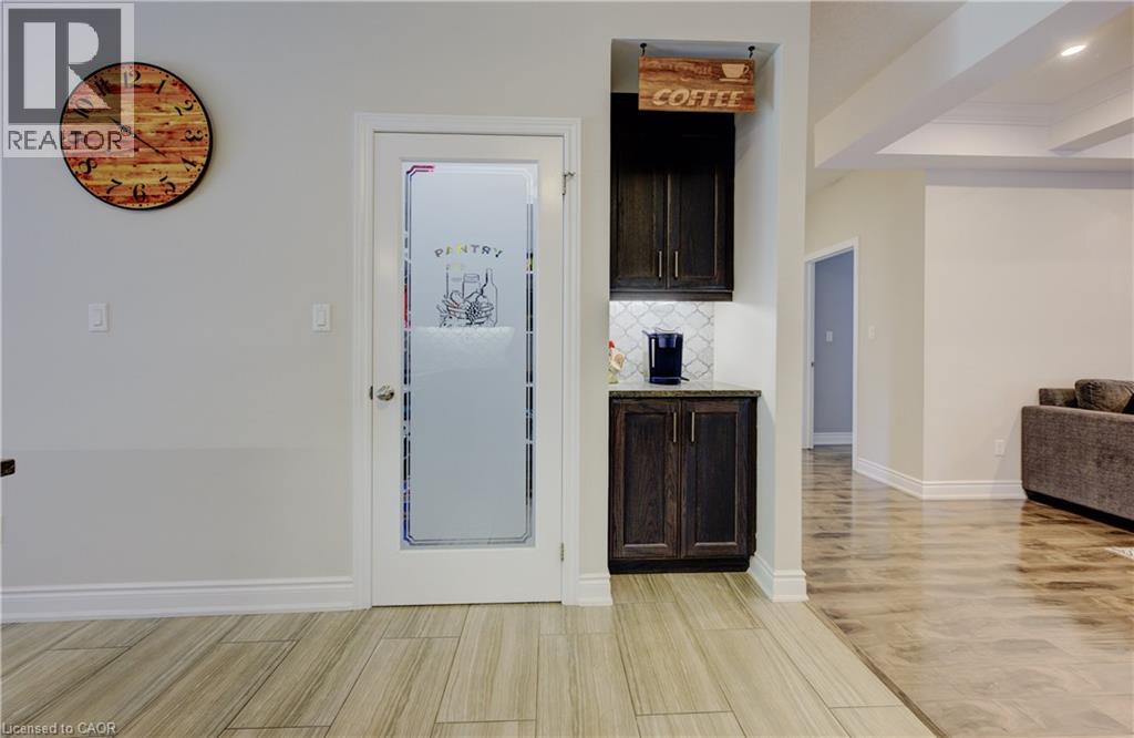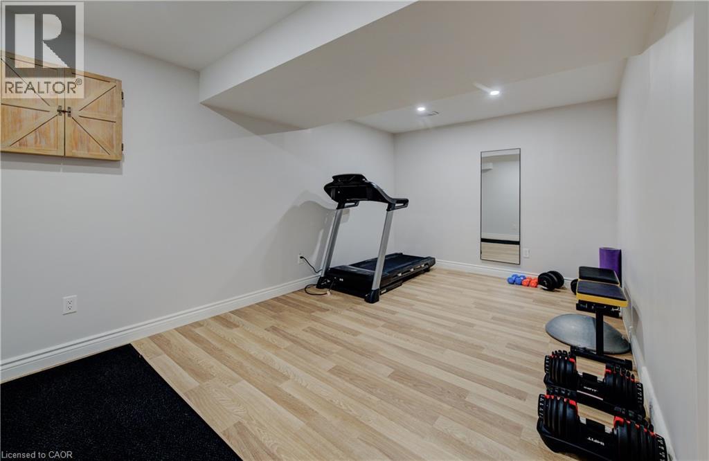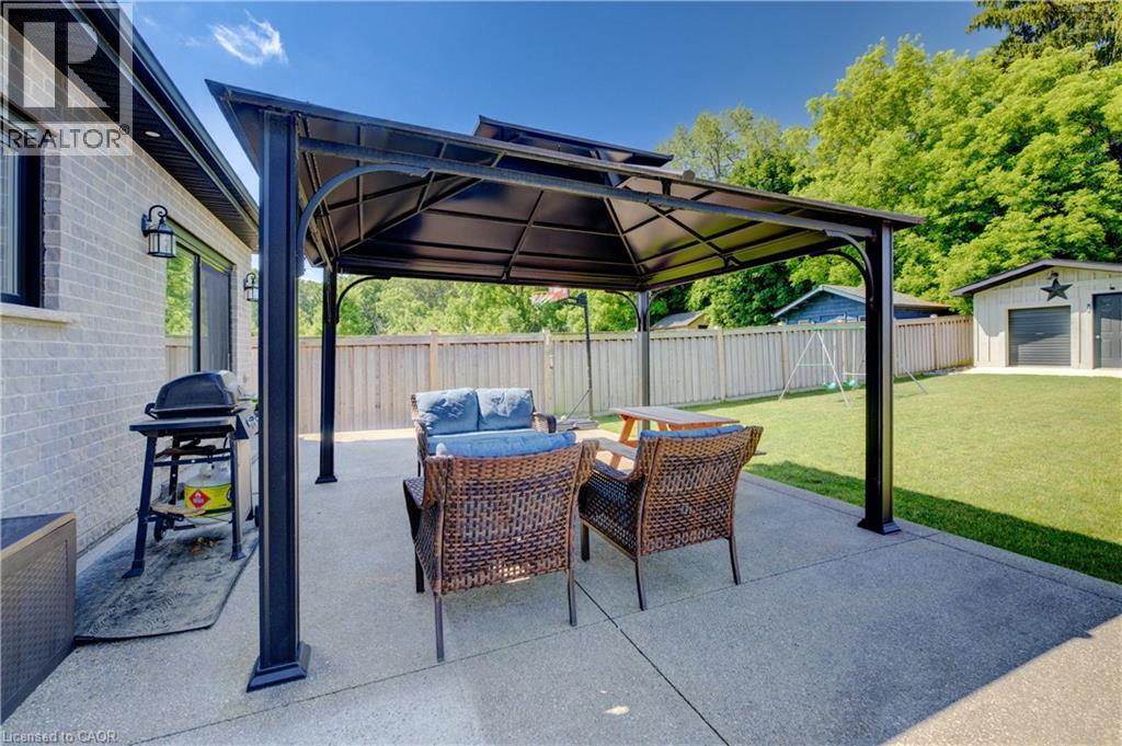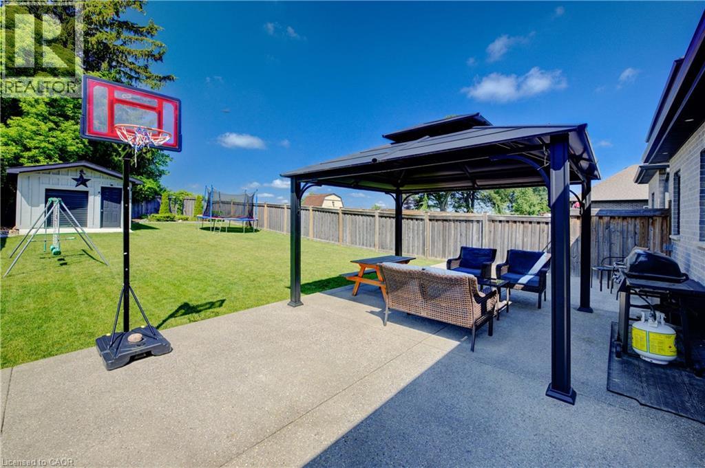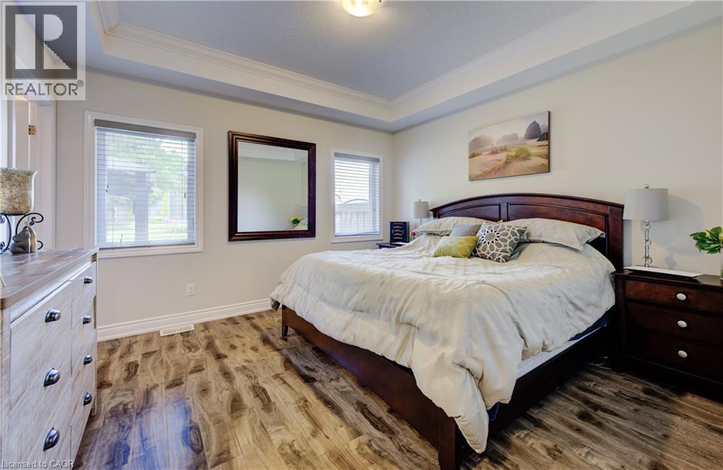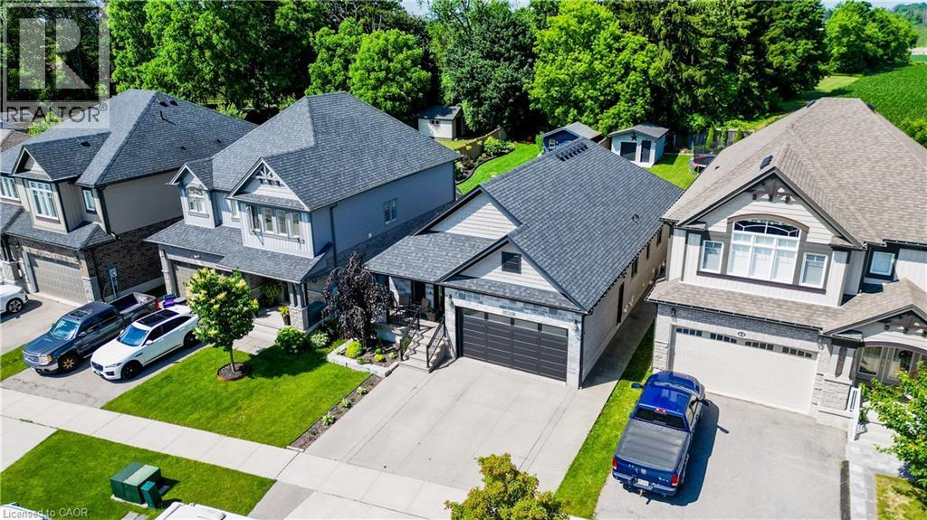 EXQUISITE property! This beautifully UPGRADED STONE BUNGALOW sits on an incredible 182 ft deep lot with no neighbours behind and OVER $100,000 in builder upgrades, custom finishes, and an unbeatable layout ... inside and out. From the moment you arrive, the elegant curb appeal shines with an aggregate stone driveway, walkways, and stairs, leading to a covered front porch. Step inside to find engineered HARDWOOD flooring, CROWN moulding, and COFFERED ceilings that add timeless style to the bright, open-concept living space. The chef-inspired kitchen features fine cabinetry, quartz countertops, a custom tile backsplash, built-in range hood, walk-in pantry, and a tucked-away coffee bar. The spacious dining area is surrounded by natural light from the large windows and glass doors overlooking the backyard. The primary suite includes a tray ceiling, walk-in closet, and a 3-pc ensuite with a gorgeous tiled shower and bench. Two additional main floor bedrooms, a 5-pc bath with double vanity, and direct access to the double car garage complete the main level. The NEWLY FINISHED basement offers stunning luxury flooring, two oversized bedrooms, a home gym, private office, and a spacious rec room perfect for entertaining, relaxing, or multigenerational living. High ceilings, large egress windows, and a bathroom rough-in add flexibility for future needs. Step outside to the show-stopping backyard retreat with no rear neighbours, aggregate patio, professional landscaping, and a 12x14 ft workshop with 240-amp service. The fully insulated garage is roughed-in for heat and ideal for storage or workspace. Bonus: wheelchair accessible AND generator back up! Located on a quiet street near schools, shopping, and nature, this is your chance to own a home that truly has it all.*measurements as per iguide. (id:4555)
