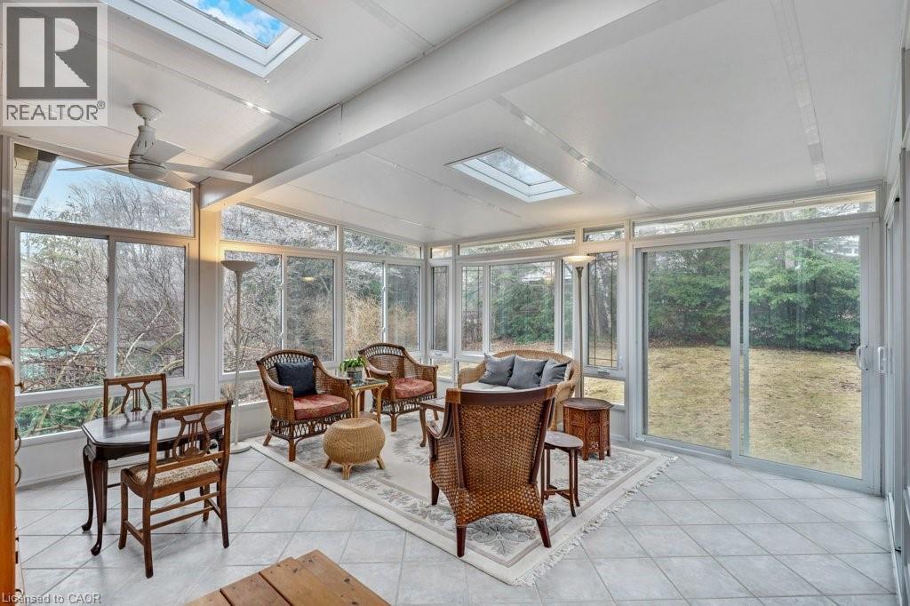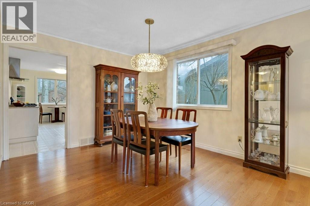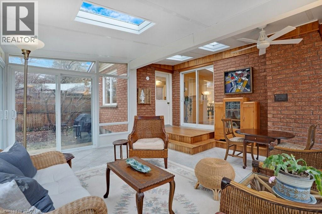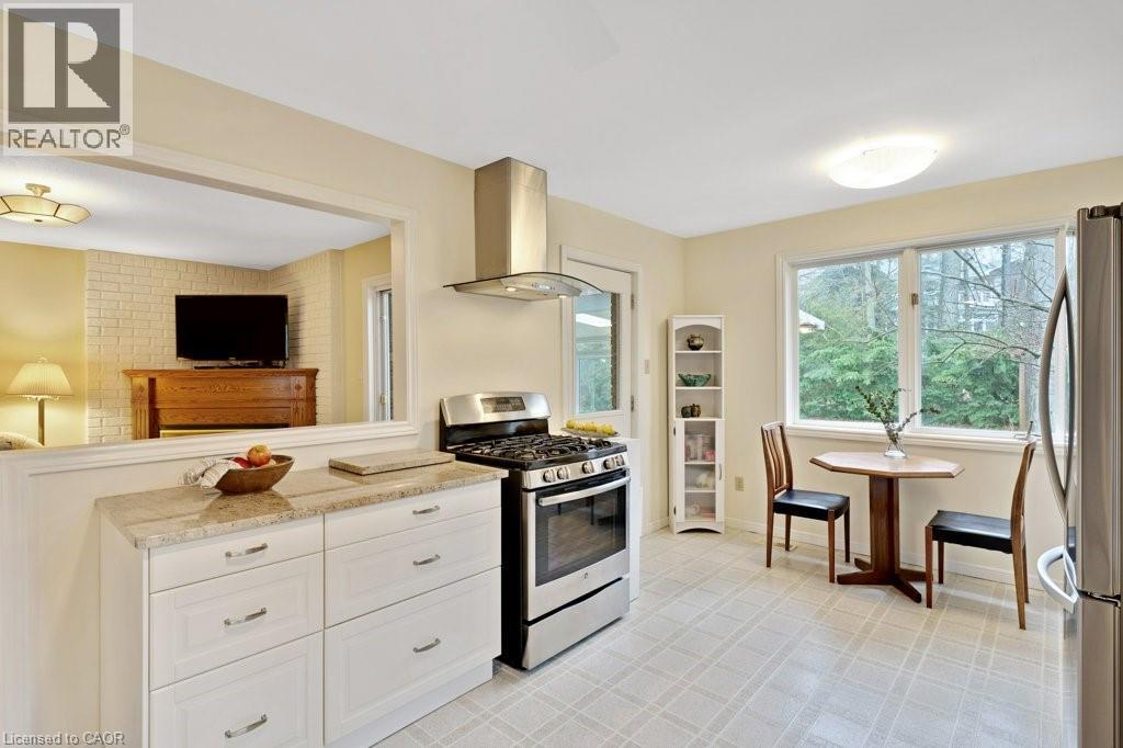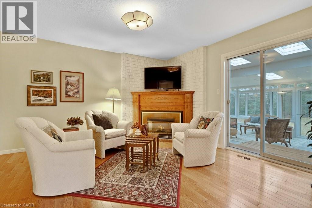 This beautiful raised bungalow is located in a highly regarded West Galt neighbourhood, in close proximity of Southwood Secondary School, shopping, and easy 401 access. The spacious living room and dining room both enjoy views to the front of the house, filtered by mature trees. The eat-in kitchen includes plenty of cabinetry with granite countertops and a tile backsplash, and the adjacent family room boasts hardwood flooring and a corner gas f/p. An all-season, heated sunroom with three skylights overhead and a ceramic floor will be a favourite space overlooking a cottage-like view of mature trees a lovely decorative garden shed and outdoor decking. Three bedrooms, a 4pc family bath, and a 3pc ensuite bath with tile and glass shower stall complete this floor. The lower level continues with plenty more living space, offering a sprawling recreation room with large sunny windows across the front. Another 3 pc bath on this level is perfect for any overnight guests. Mechanical updates include furnace and c/air (2 yr), chimney liner (11 yr), dryer and fridge (2yr), gas tove (10 yr), shingles (13 yr). Water softener owned. Water heater is a Reliance rental. (id:4555)