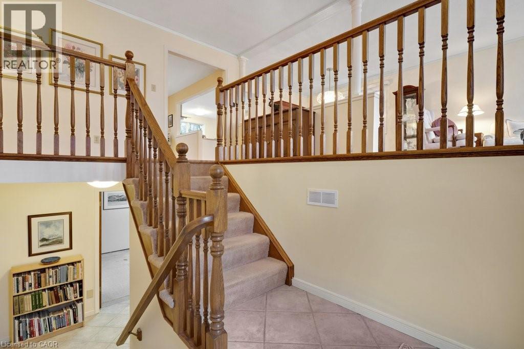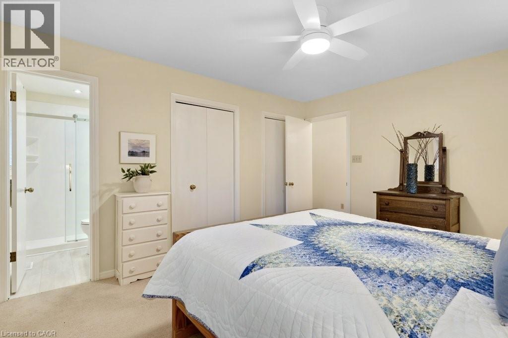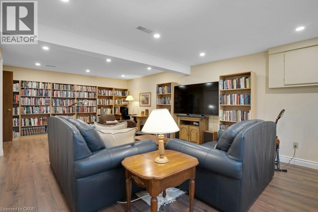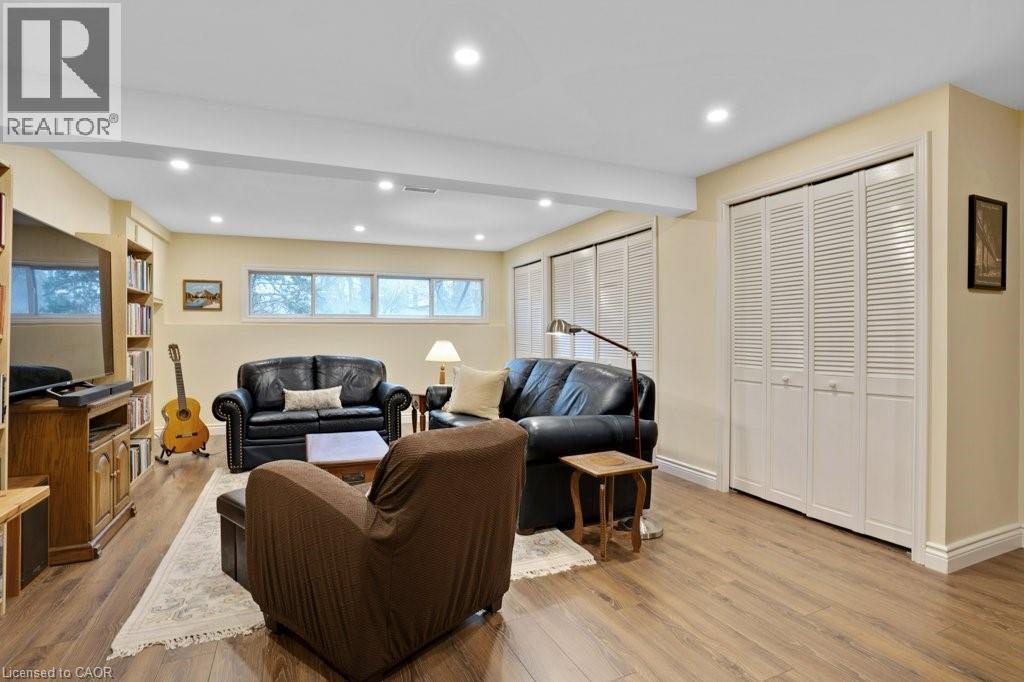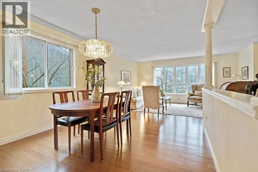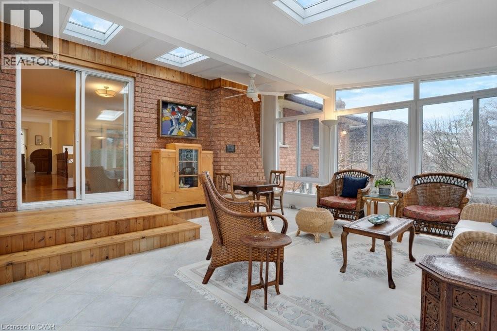 This beautiful raised bungalow is located in a highly regarded West Galt neighbourhood, in close proximity of Southwood Secondary School, shopping, and easy 401 access. The spacious living room and dining room both enjoy views to the front of the house, filtered by mature trees. The eat-in kitchen includes plenty of cabinetry with granite countertops and a tile backsplash, and the adjacent family room boasts hardwood flooring and a corner gas f/p. An all-season, heated sunroom with three skylights overhead and a ceramic floor will be a favourite space overlooking a cottage-like view of mature trees a lovely decorative garden shed and outdoor decking. Three bedrooms, a 4pc family bath, and a 3pc ensuite bath with tile and glass shower stall complete this floor. The lower level continues with plenty more living space, offering a sprawling recreation room with large sunny windows across the front. Another 3 pc bath on this level is perfect for any overnight guests. Mechanical updates include furnace and c/air (2 yr), chimney liner (11 yr), dryer and fridge (2yr), gas tove (10 yr), shingles (13 yr). Water softener owned. Water heater is a Reliance rental. (id:4555)