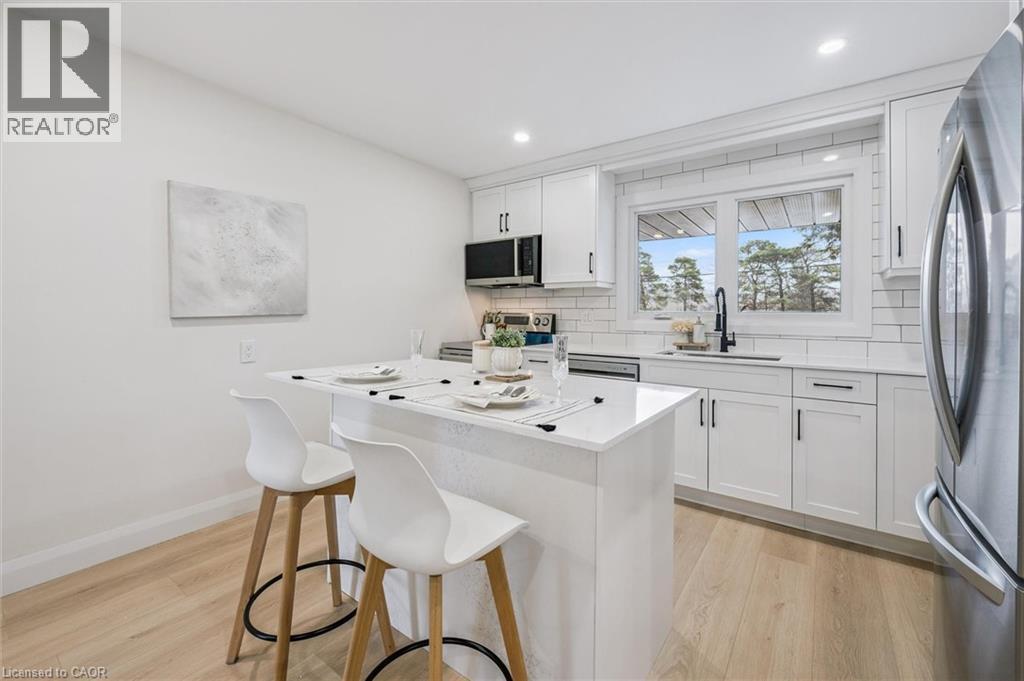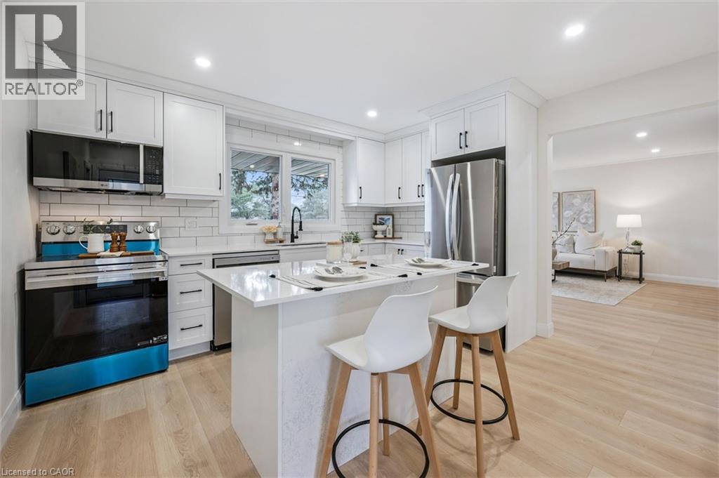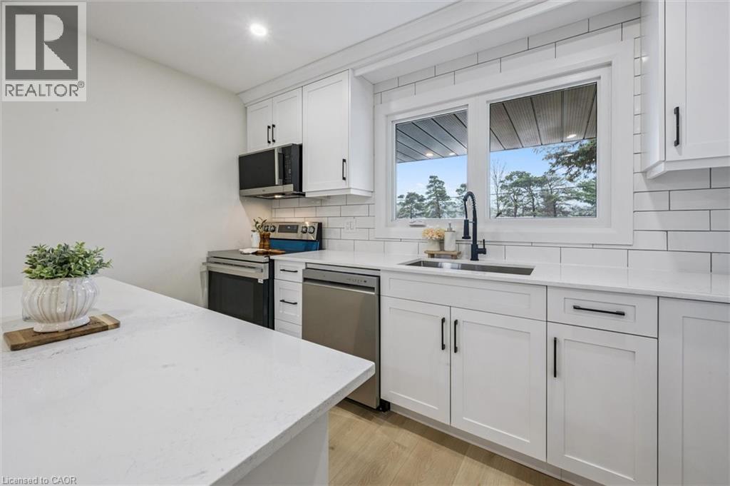 **STYLISH. RENOVATED. READY TO IMPRESS.** Welcome to 881 Dunbar Road, Cambridge — a beautifully updated bungalow offering thoughtfully designed living space with modern finishes and exceptional functionality. The main floor features three spacious bedrooms, a bright and inviting family room, and a contemporary kitchen enhanced by **brand-new appliances throughout the home**, delivering both style and everyday convenience. Quality craftsmanship is evident in every detail, from luxury vinyl plank flooring and upgraded stone features to custom millwork that elevate the overall aesthetic. The fully finished basement provides outstanding versatility with a one-bedroom layout, full bathroom, expansive recreation room, and wet bar — ideal for extended family, guests, or additional living and entertaining space. Large basement windows allow for abundant natural light, creating a warm and welcoming lower level. Step outside to discover a **large, untouched backyard offering endless possibilities for outdoor living, future landscaping, entertaining, or expansion.** Perfectly positioned **directly across from a conservation area**, this home combines privacy and natural surroundings with the convenience of city living. Situated in a desirable, established neighbourhood close to schools, parks, shopping, and major commuter routes, this move-in-ready property delivers exceptional comfort, modern design, and long-term value — a rare opportunity for families, investors, or anyone seeking a turnkey home in a prime Cambridge location. (id:4555)
