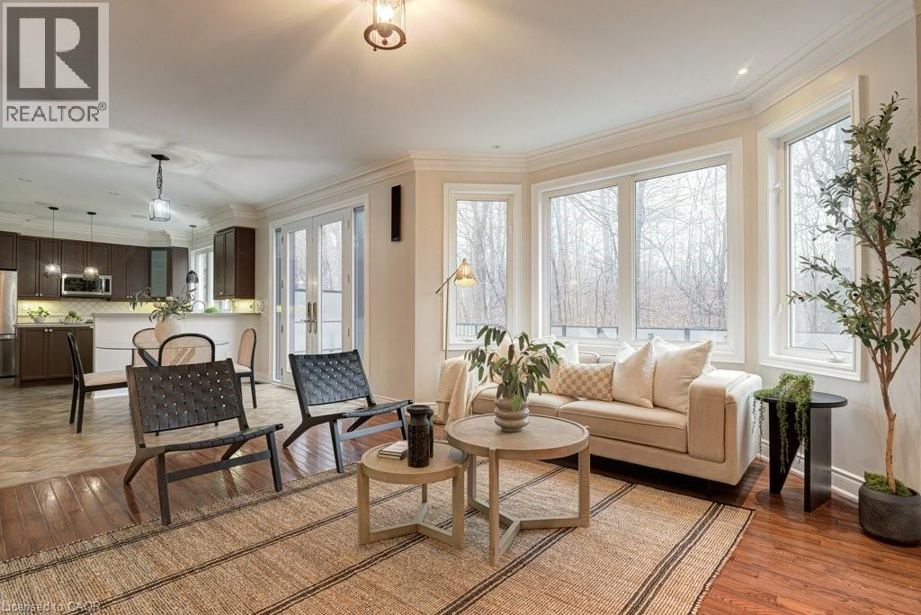 Welcome to 111 Glazebrook Crescent in Cambridge. Backing onto peaceful greenspace, this spacious detached two-storey home offers over 4,400 sq ft of finished living space with high ceilings and beautiful architectural details throughout. Featuring a double car garage, four generous bedrooms, three full bathrooms, and a main floor powder room, the layout is both functional and inviting. A bright front sitting room welcomes you in and flows into a formal dining area, while the main floor family room provides a warm, relaxed space to gather. The kitchen connects seamlessly to the living areas with views of the backyard and surrounding greenery, creating a natural extension of the home. Upstairs, the primary suite is a true retreat with oversized windows, two walk-in closets, and a spacious ensuite complete with a soaker tub and walk-in shower. The fully finished basement adds even more versatility, featuring a dedicated theatre room and additional space for recreation, fitness, or guests. Set on a premium lot backing onto greenspace, this home offers privacy, space, and a setting that’s hard to find while still being close to everything Cambridge has to offer. (id:4555)