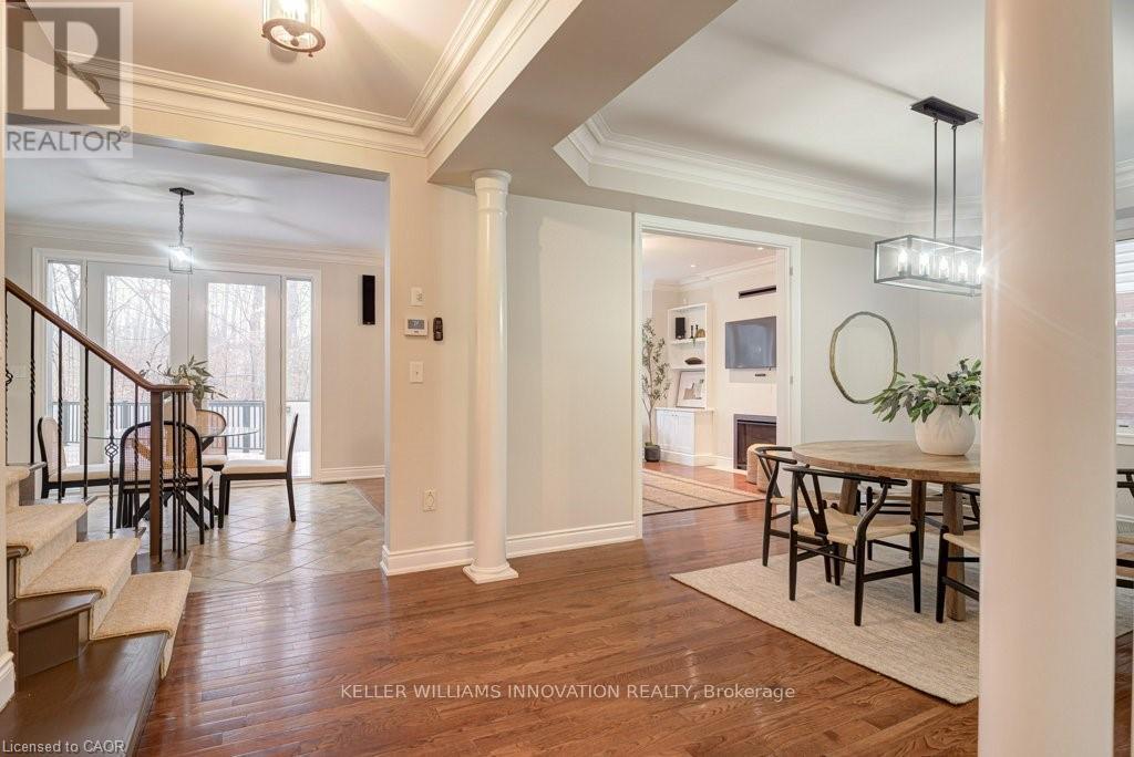 Welcome to 111 Glazebrook Crescent in Cambridge. Backing onto peaceful greenspace, this spacious detached two-storey home offers over 4,400 sq ft of finished living space with high ceilings and beautiful architectural details throughout. Featuring a double car garage, four generous bedrooms, three full bathrooms, and a main floor powder room, the layout is both functional and inviting. A bright front sitting room welcomes you in and flows into a formal dining area, while the main floor family room provides a warm, relaxed space to gather. The kitchen connects seamlessly to the living areas with views of the backyard and surrounding greenery, creating a natural extension of the home. Upstairs, the primary suite is a true retreat with oversized windows, two walk-in closets, and a spacious ensuite complete with a soaker tub and walk-in shower. The fully finished basement adds even more versatility, featuring a dedicated theatre room and additional space for recreation, fitness, or guests. Set on a premium lot backing onto greenspace, this home offers privacy, space, and a setting that's hard to find while still being close to everything Cambridge has to offer. (id:4555)